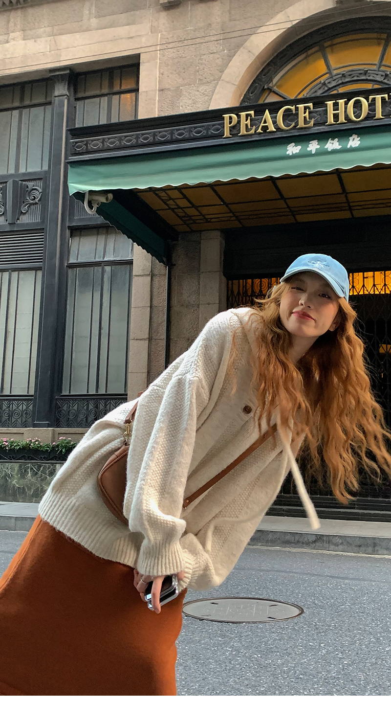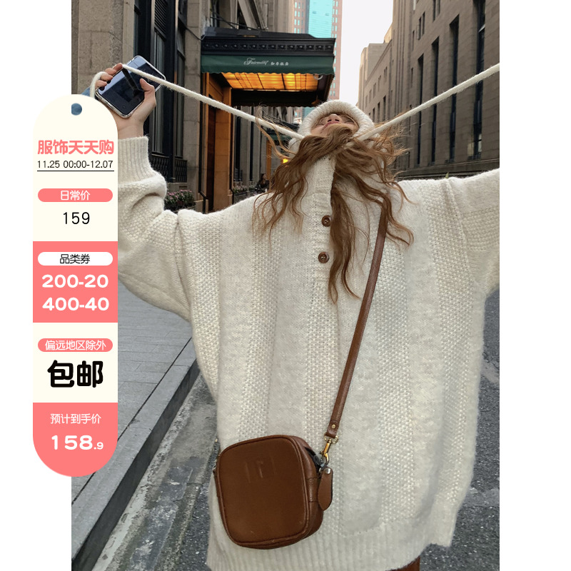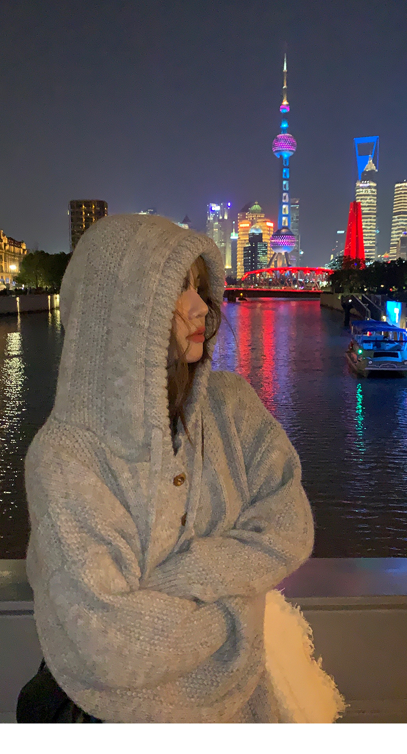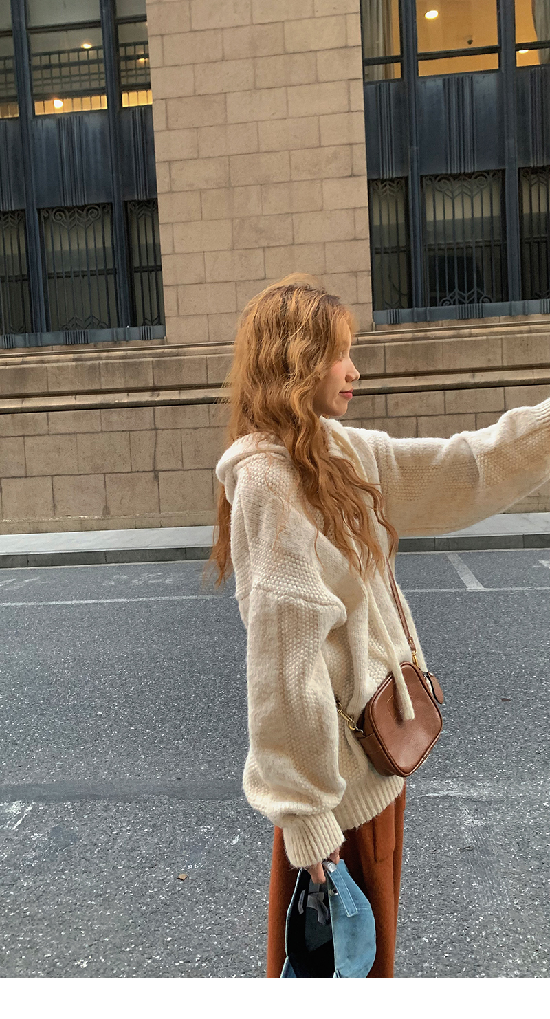 滷滷lulu 820克重長毛款連帽毛衣女冬寬鬆百搭慵懶風套頭毛針織衫