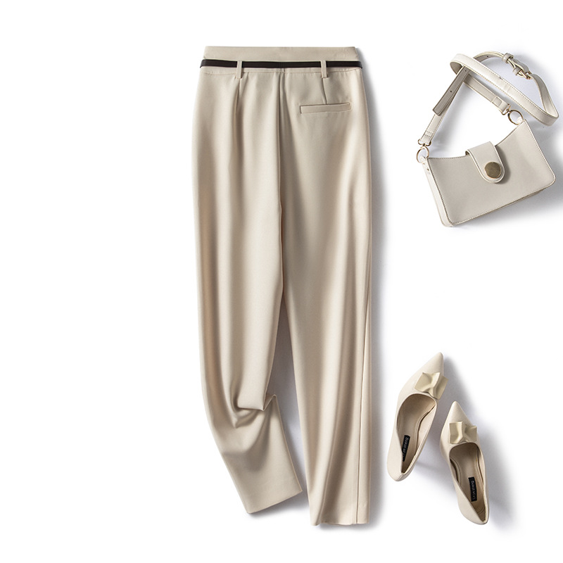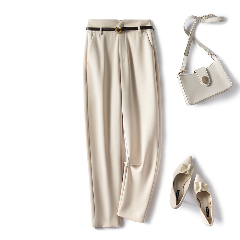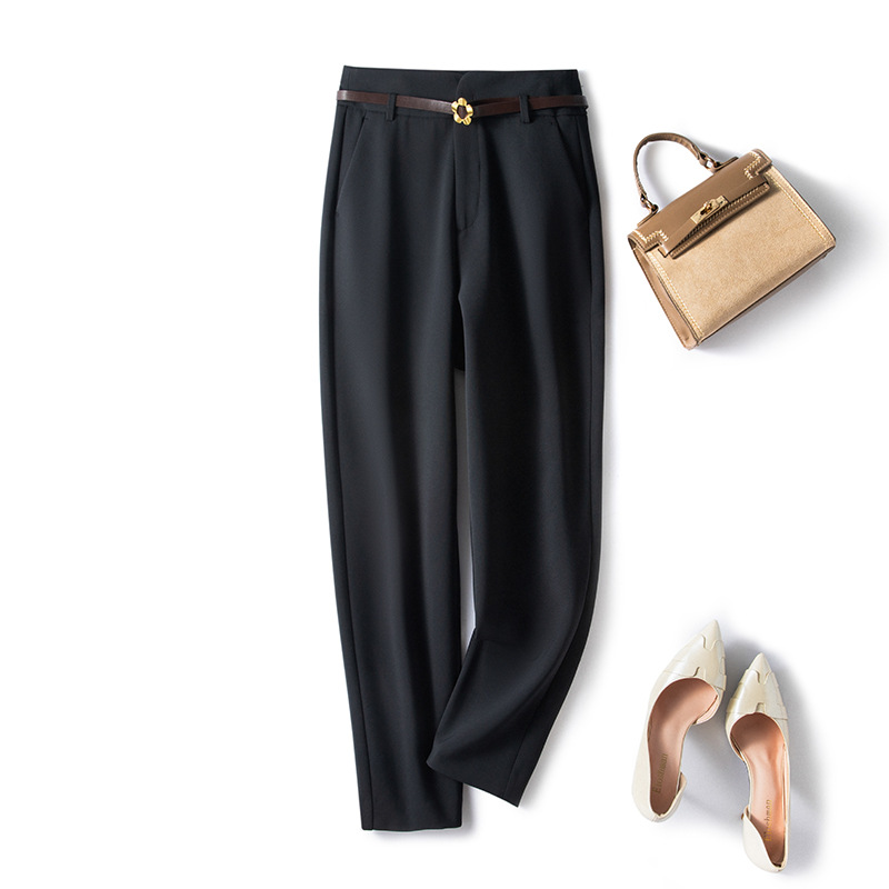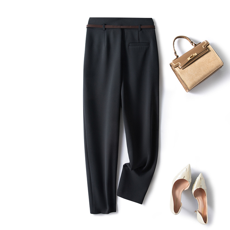 裤子女2023春夏新款高腰垂感小脚休闲黑色显瘦九分烟管裤西装裤子