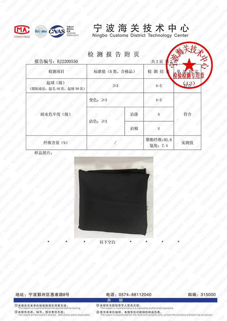 面料名称 涤纶