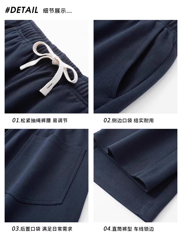 回頭率滿滿~300g藏青色斜紋直筒休閒厚棉褲男美式復古百搭運動褲女