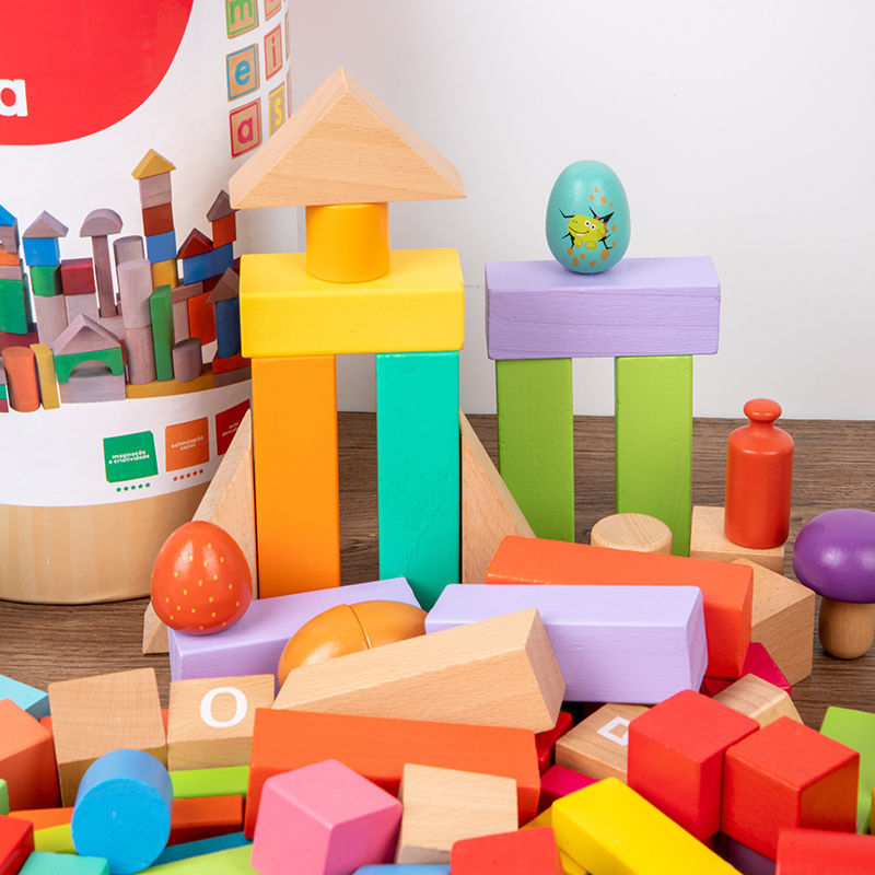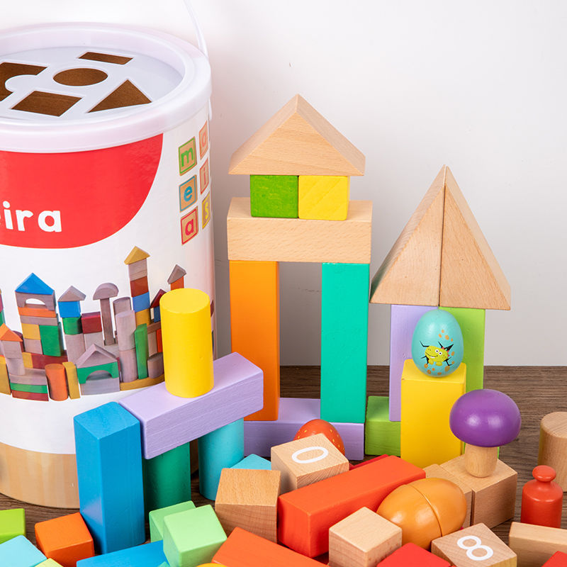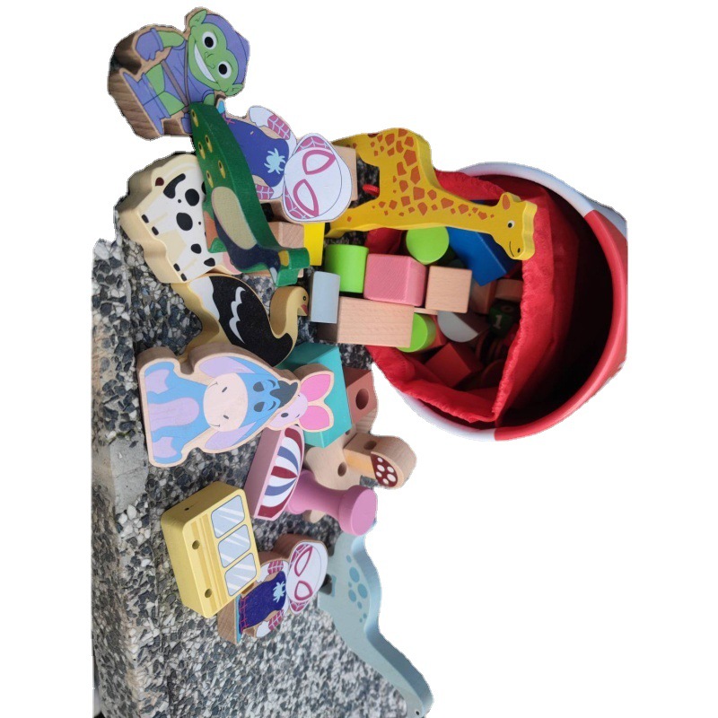 木头积木一百颗木质儿童拼装益智头大大号宝宝礼物城堡玩具独立站