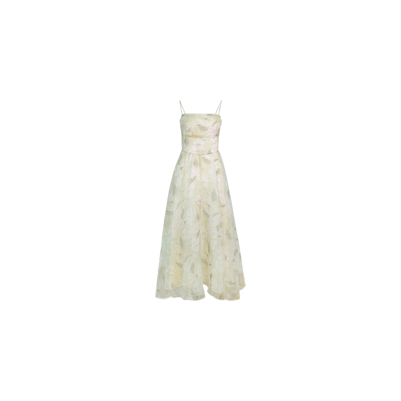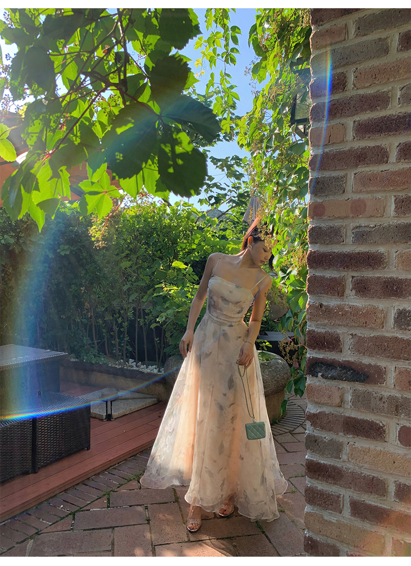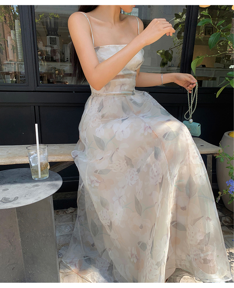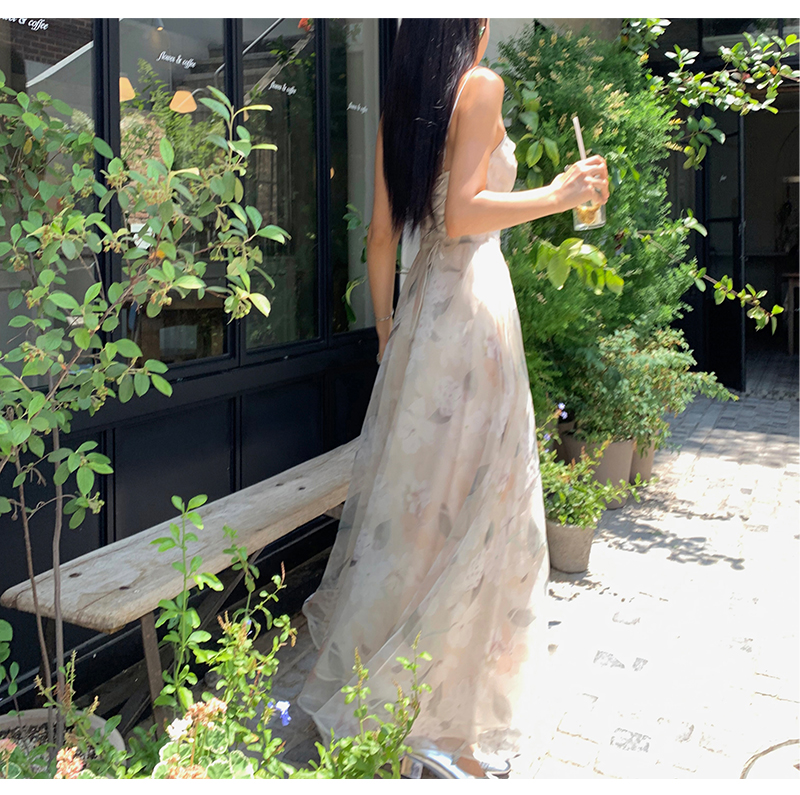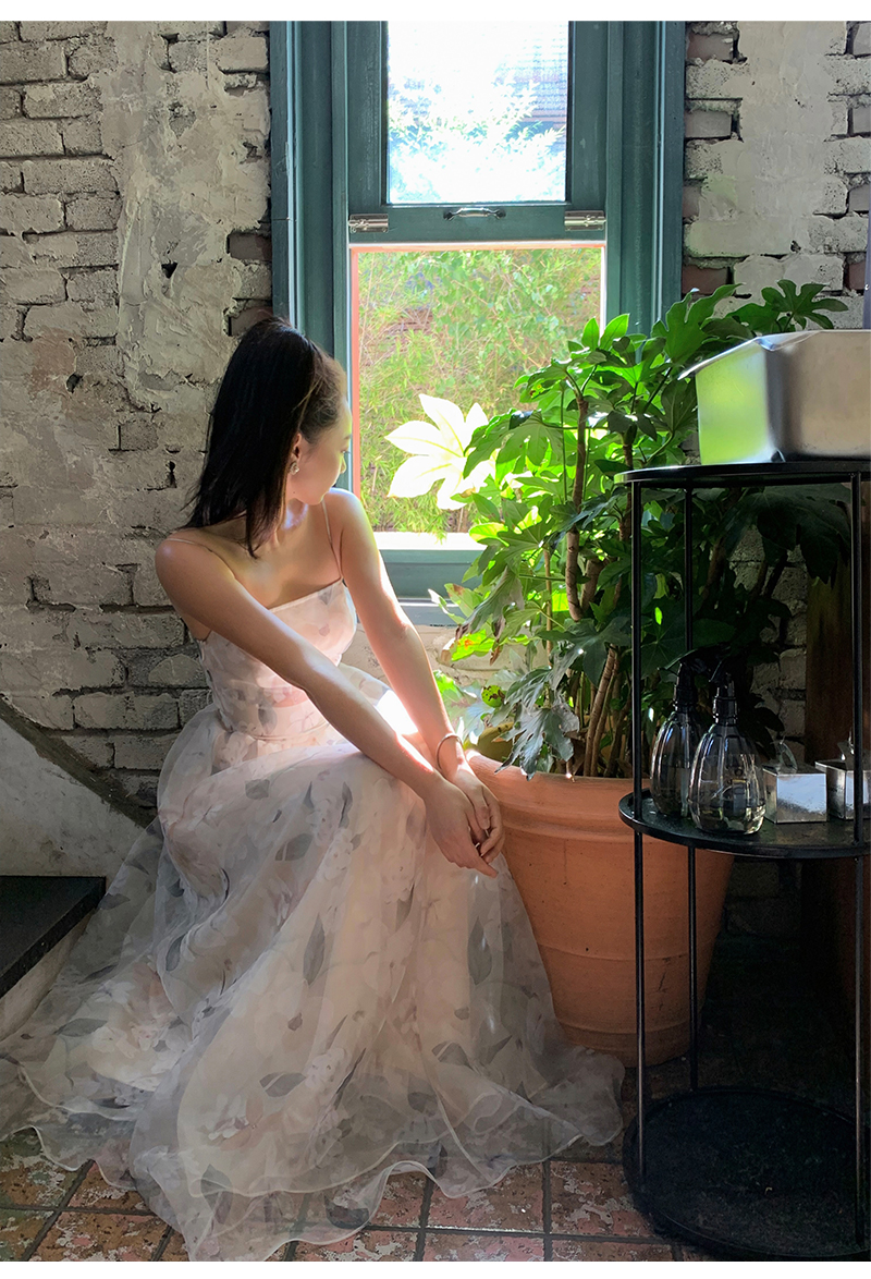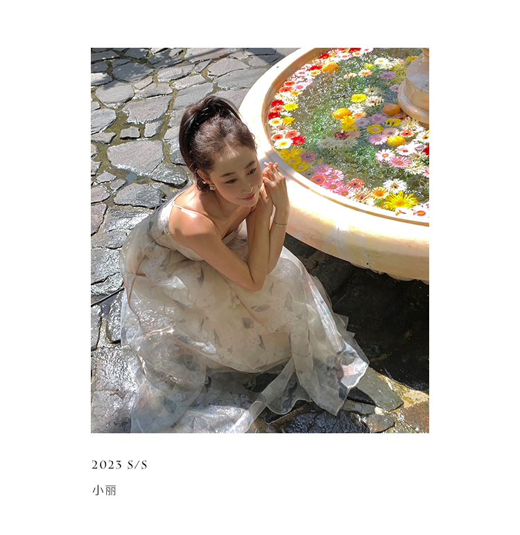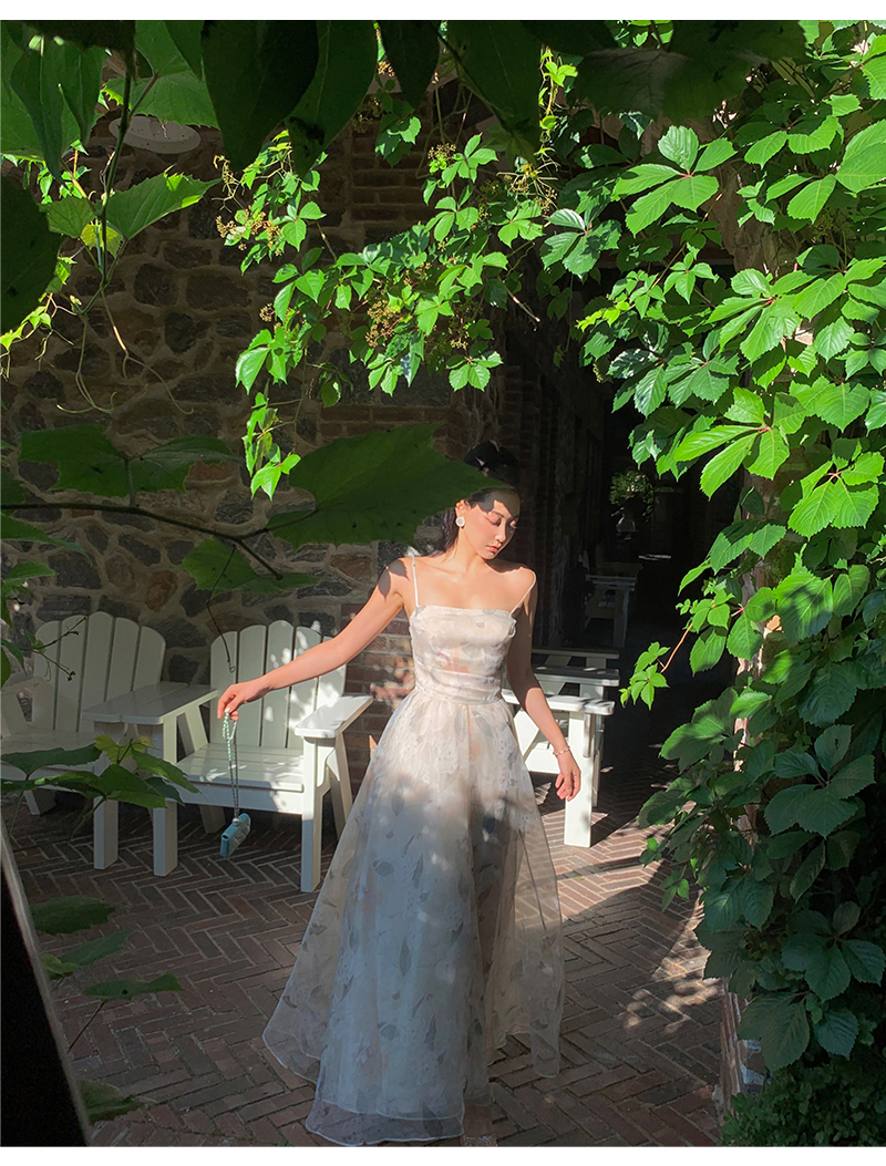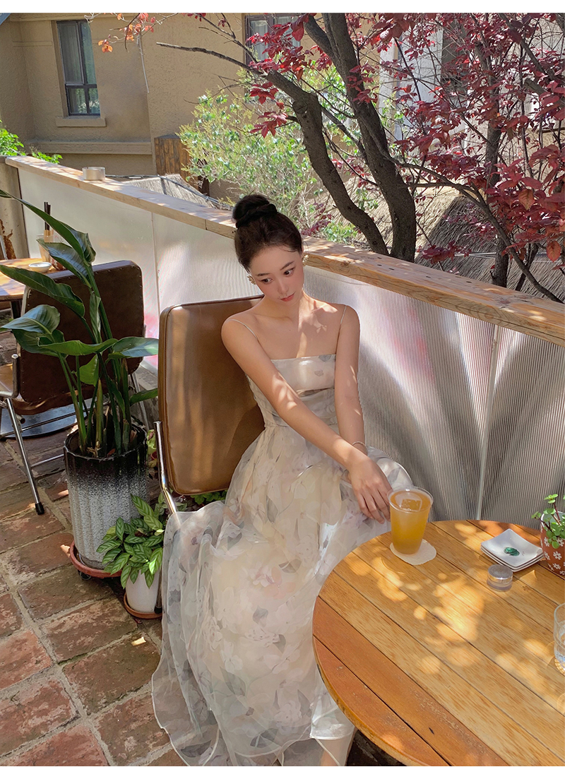 小麗XIAOLI月織霧紗a字吊帶碎花洋裝長裙夏季2023新款超仙公主裙