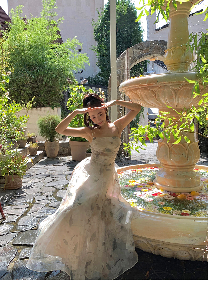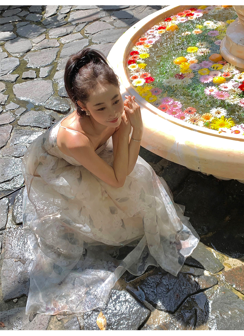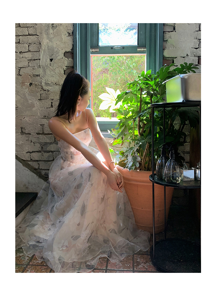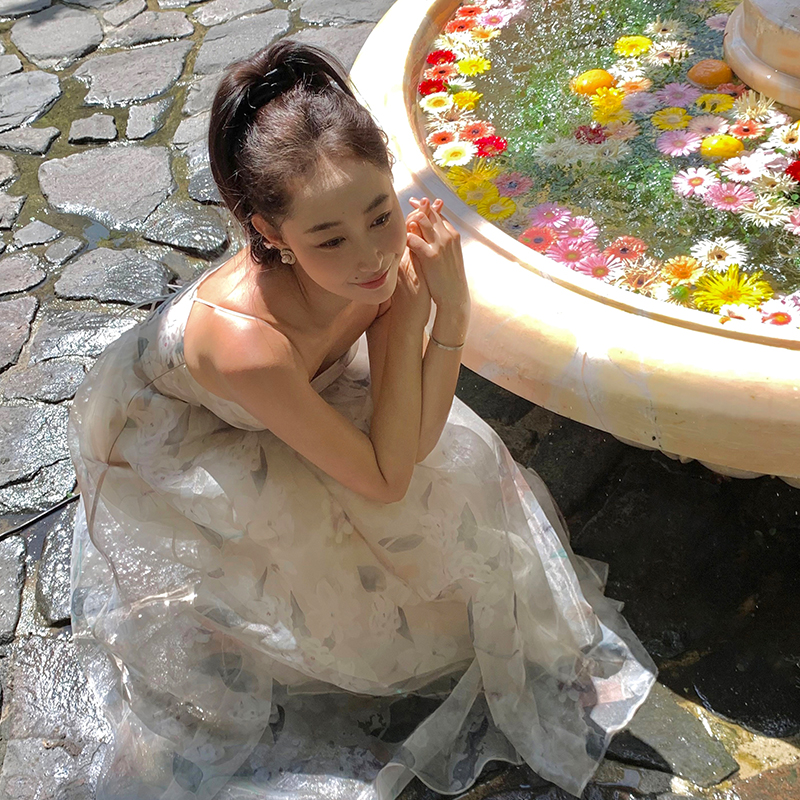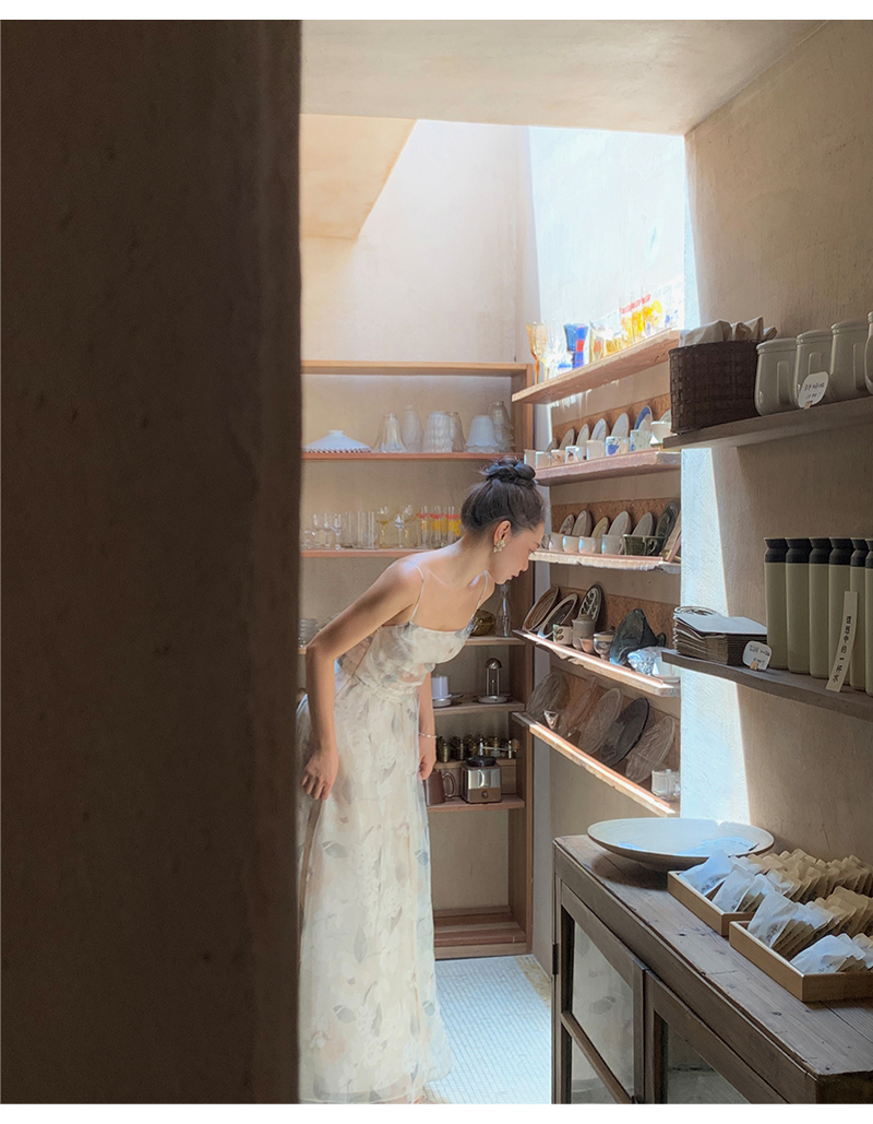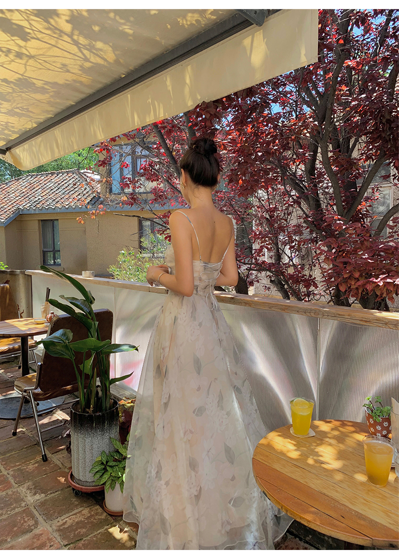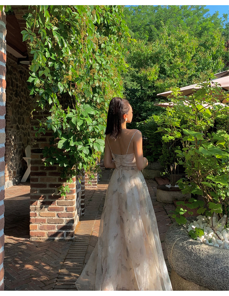 小麗XIAOLI月織霧紗a字吊帶碎花洋裝長裙夏季2023新款超仙公主裙