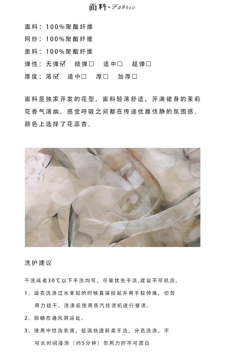 店主尺码建议:连衣裙是收腰A摆的版型,面料无弹,建议根据胸腰围尺码挑选。