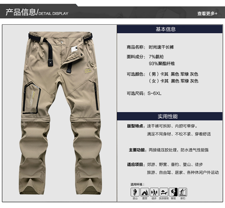 戶外速乾褲男女夏季薄款可拆卸兩截徒步行山長褲衝鋒褲登山運動褲
