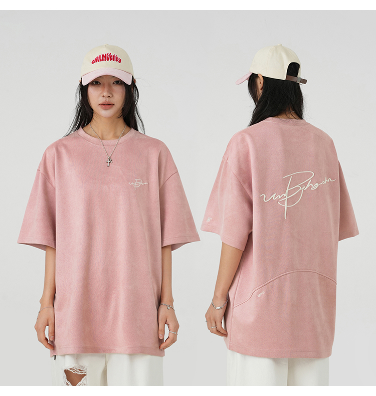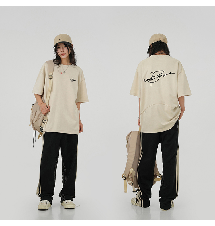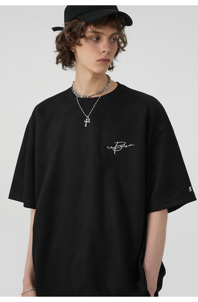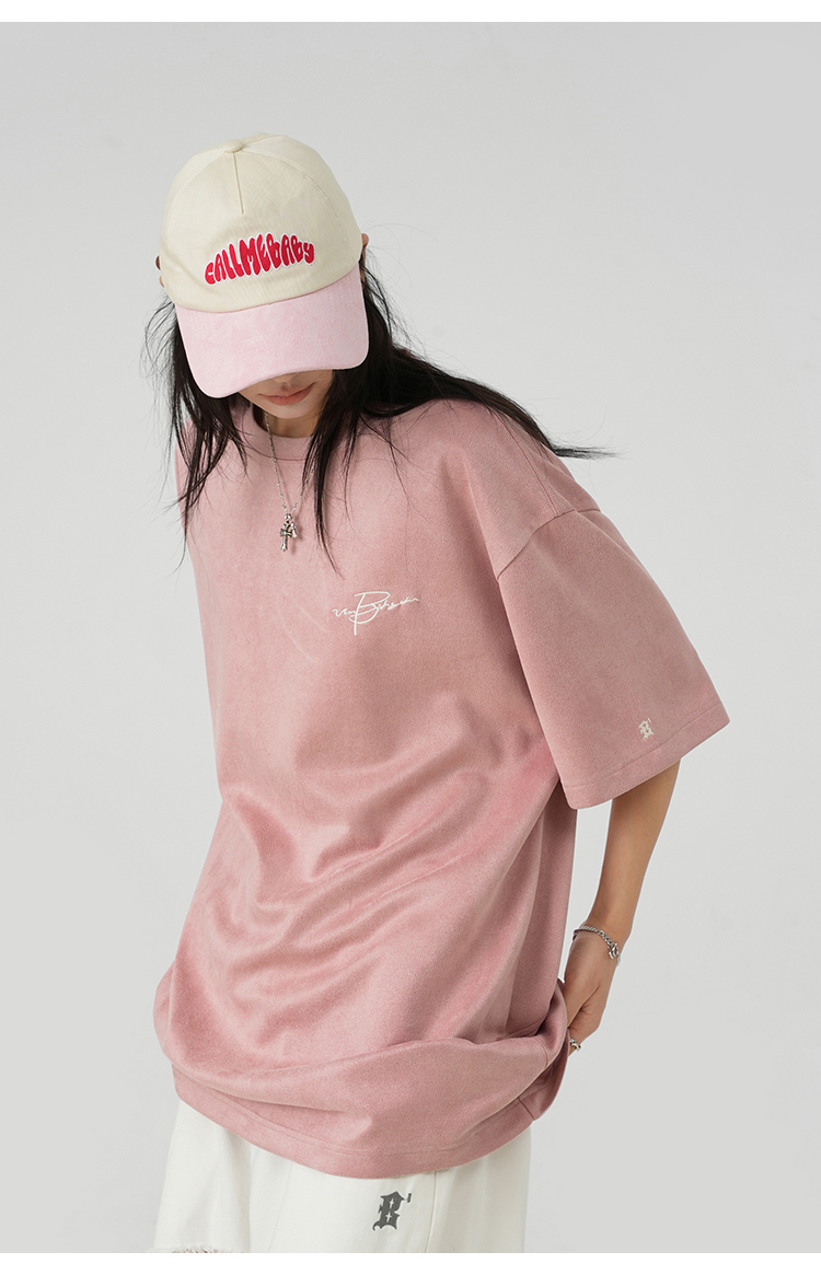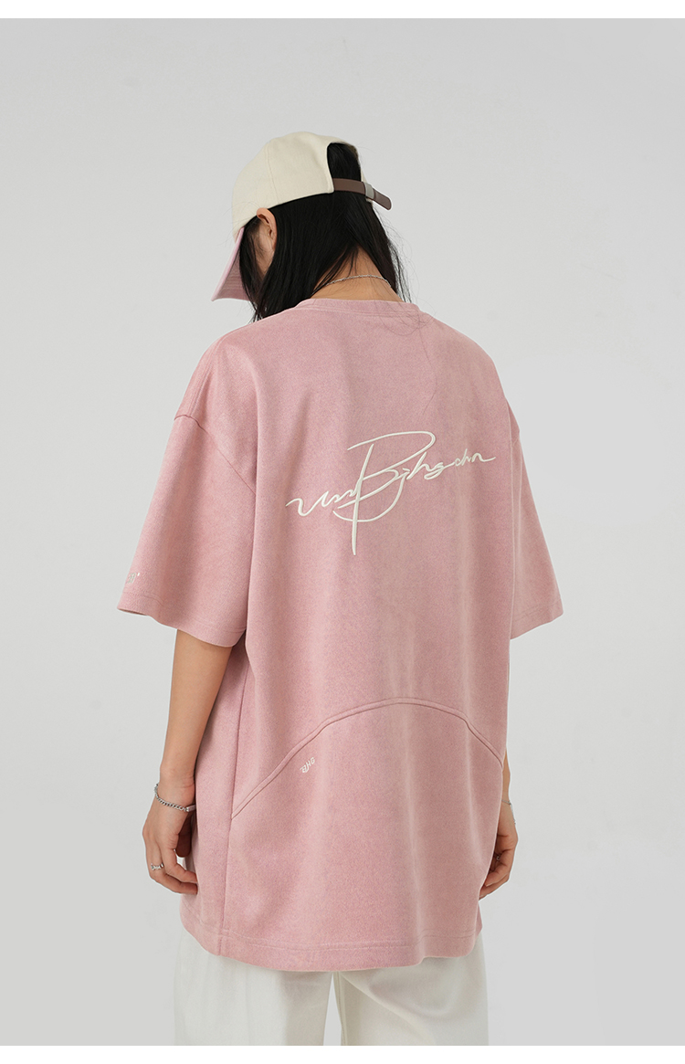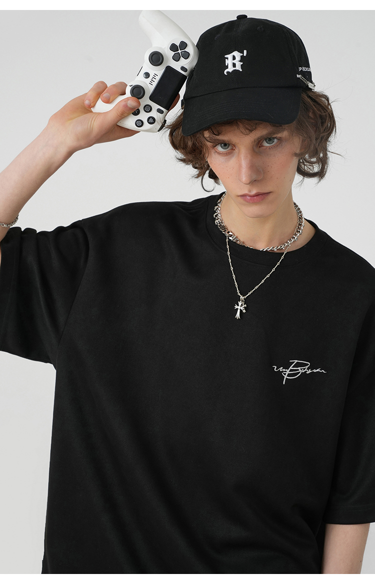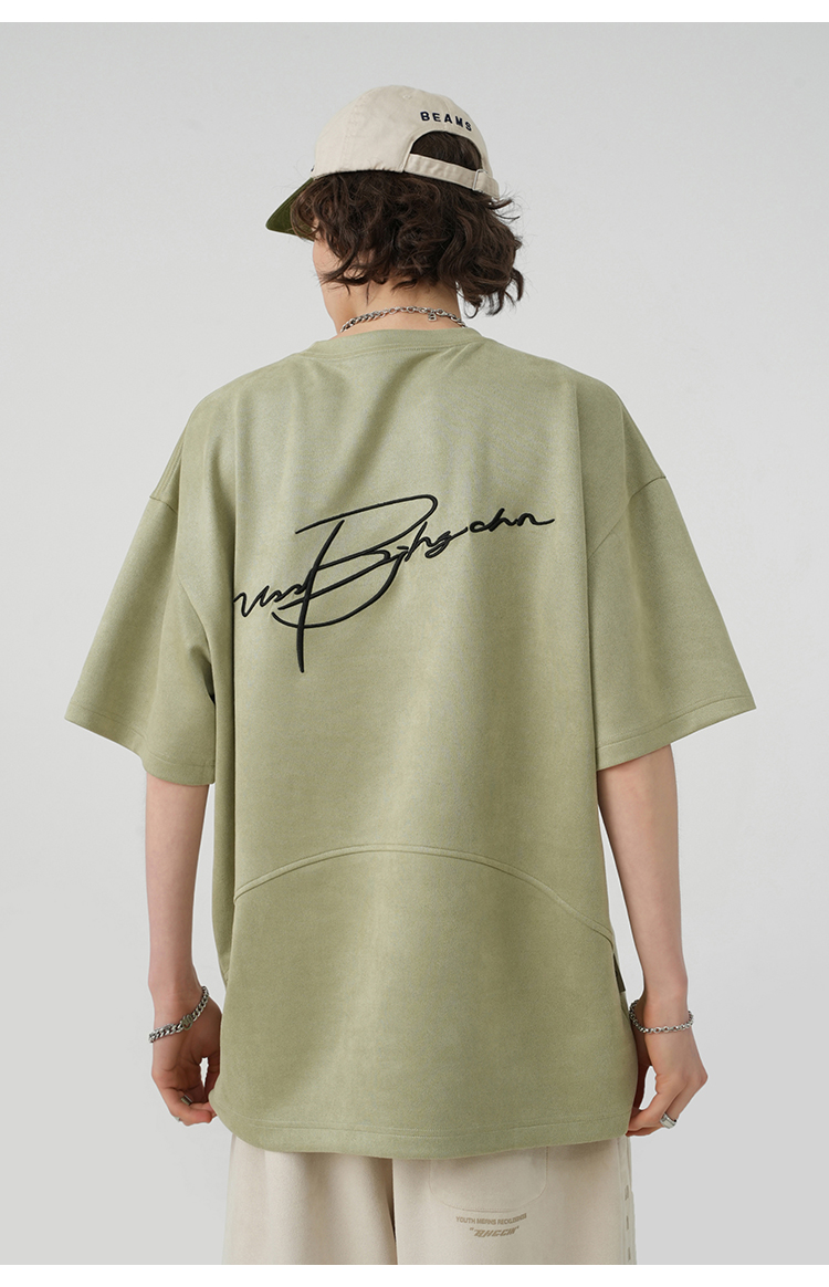 BJHG不計後果 夏季美式重磅刺繡麂皮絨短袖男生潮牌解構寬鬆T恤女