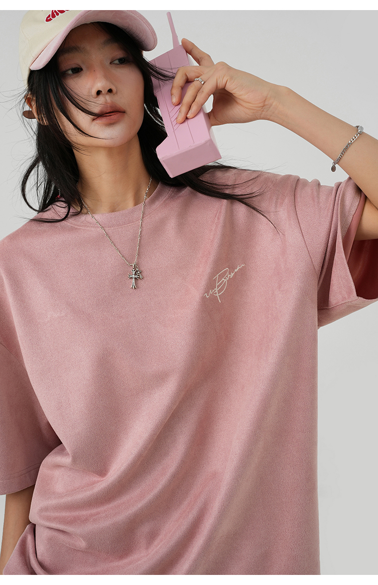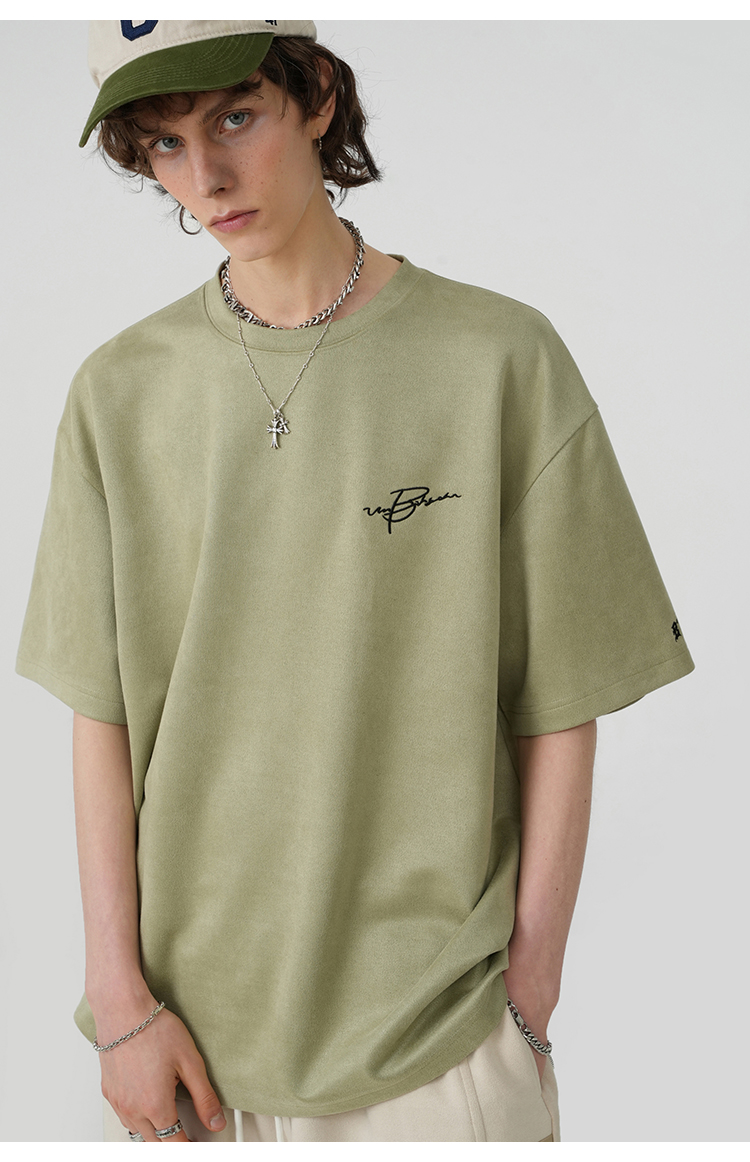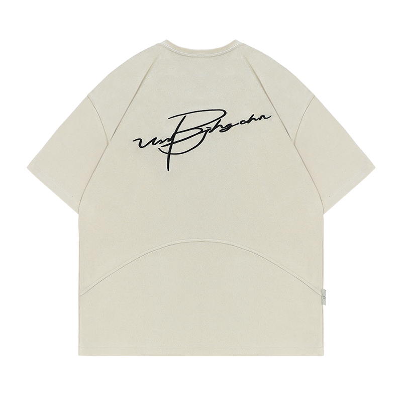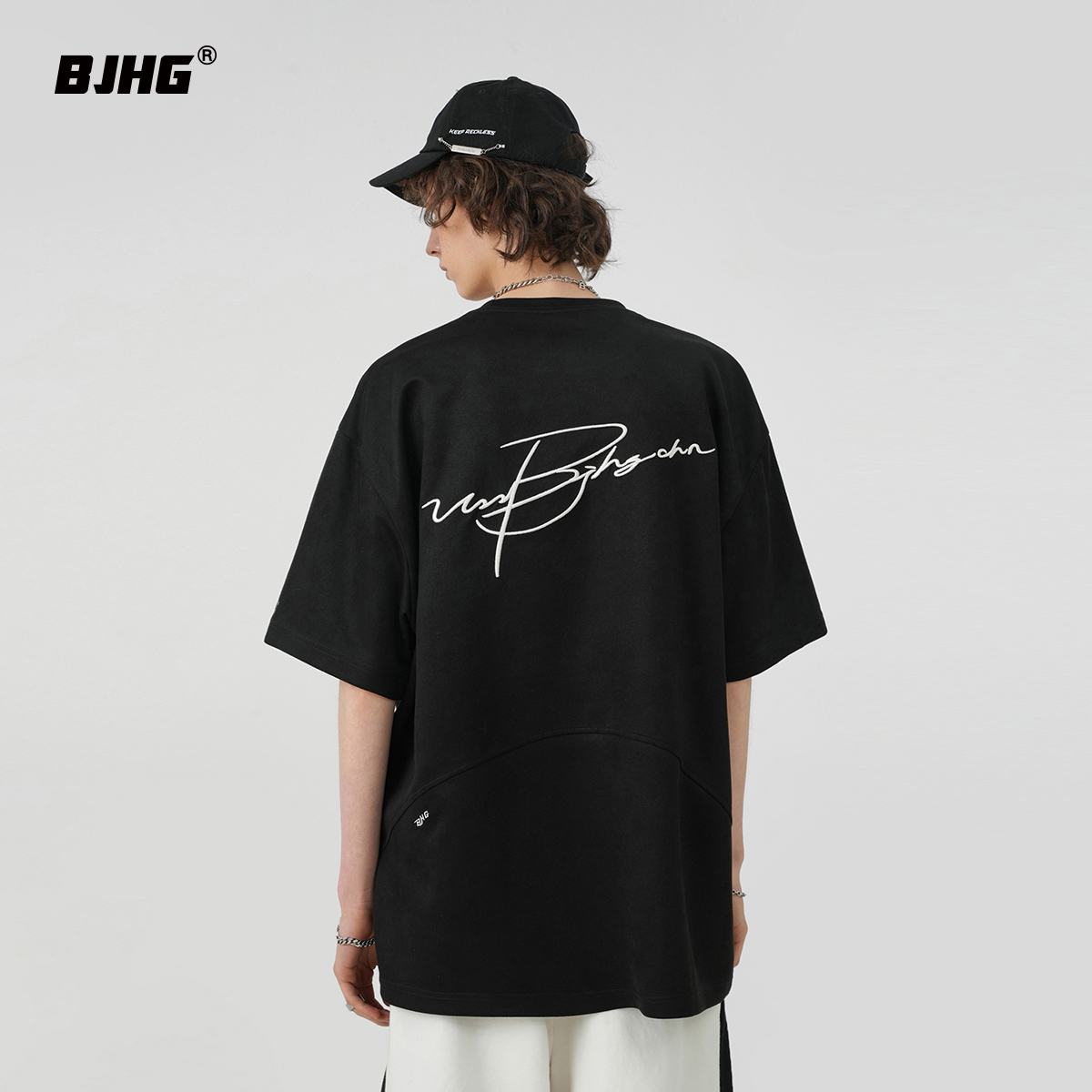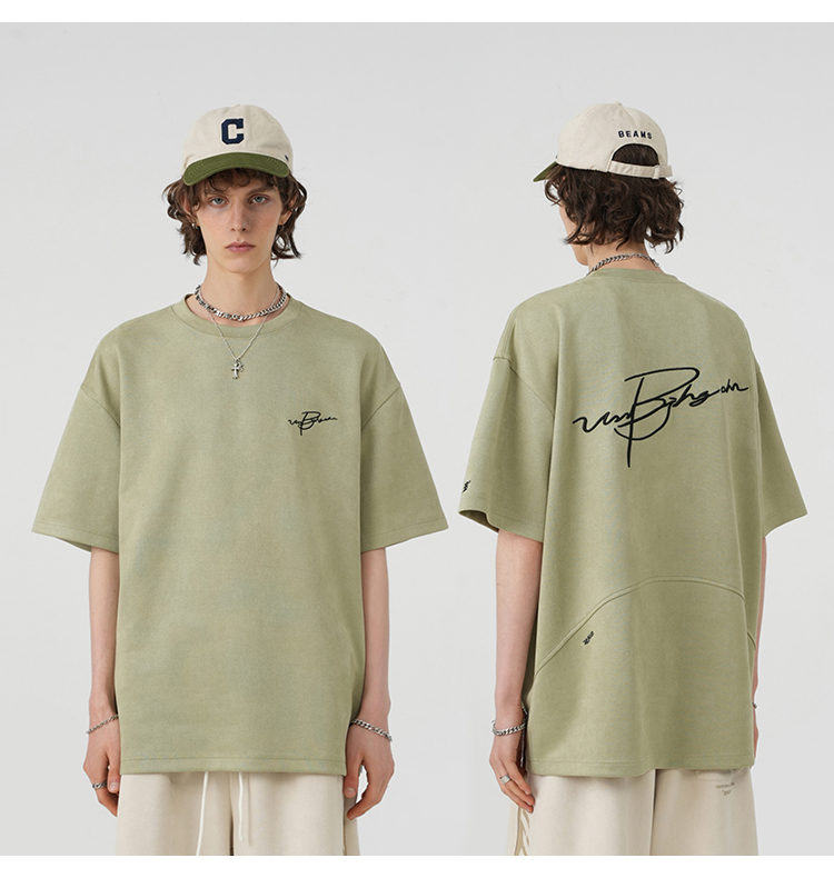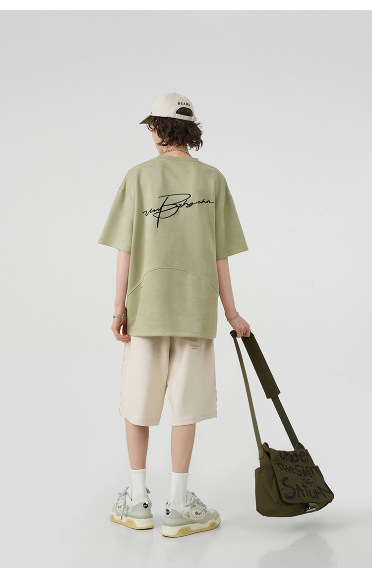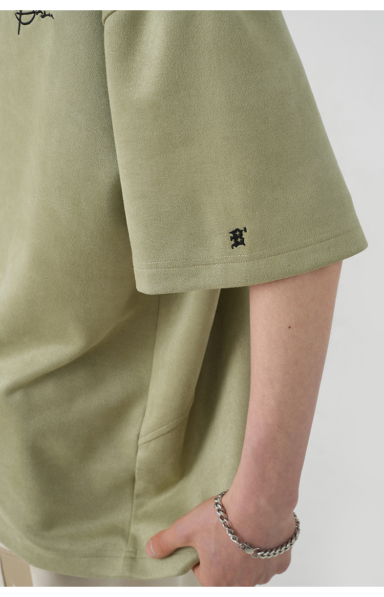 BJHG不計後果 夏季美式重磅刺繡麂皮絨短袖男生潮牌解構寬鬆T恤女