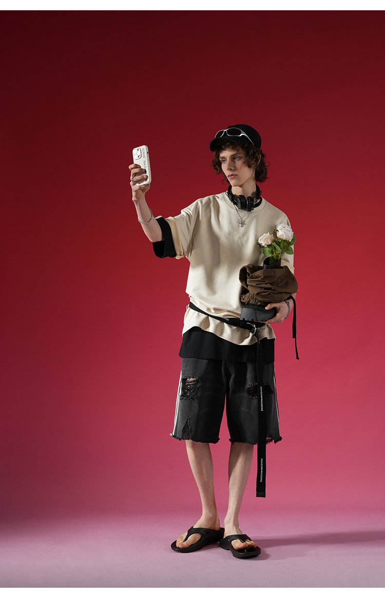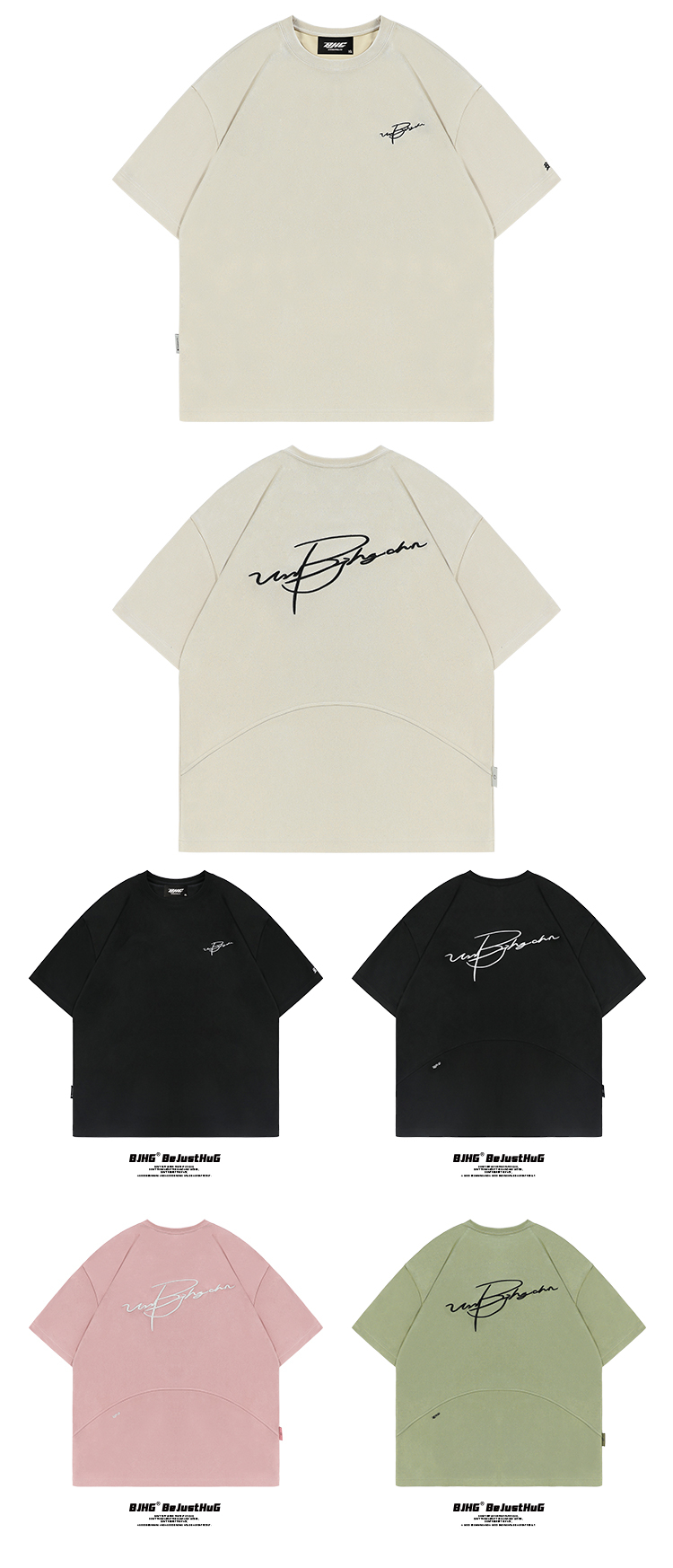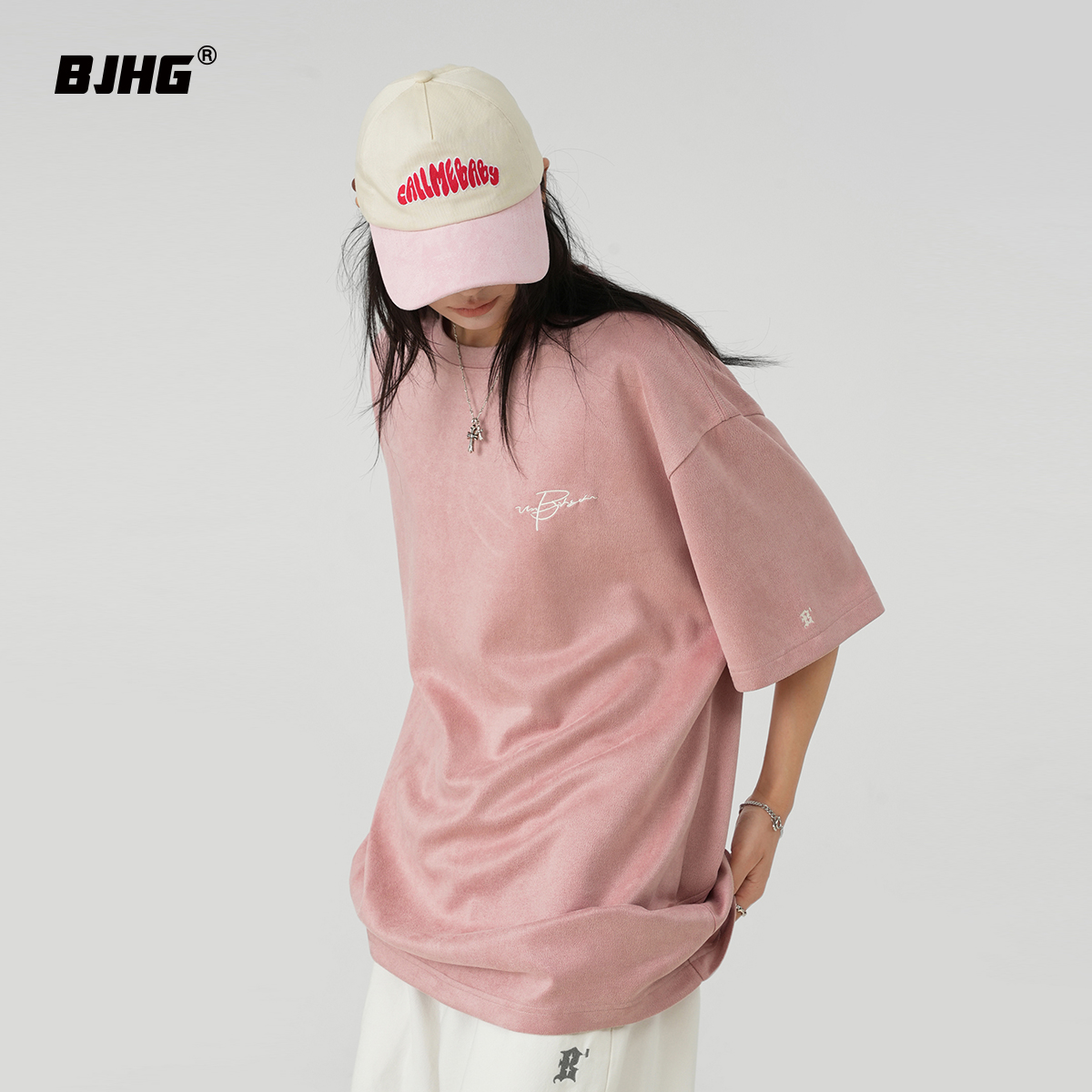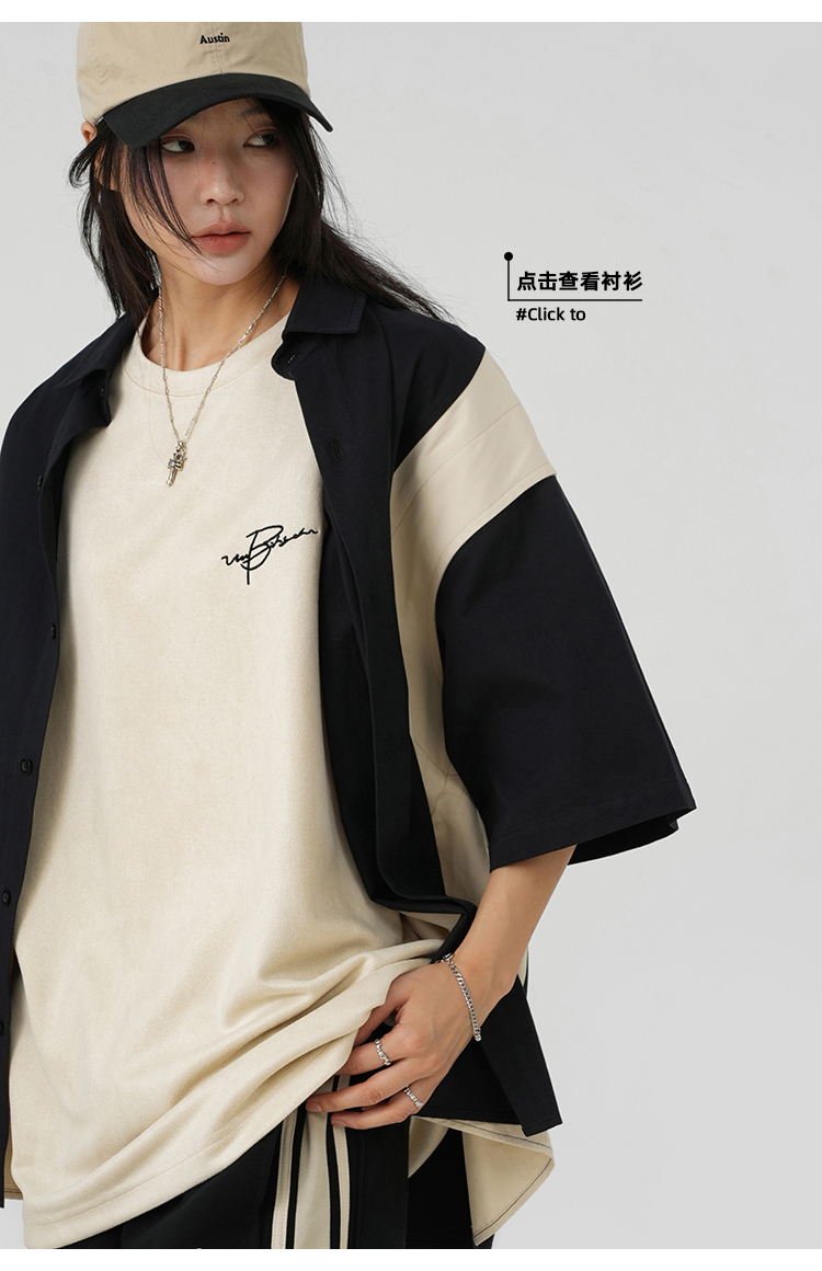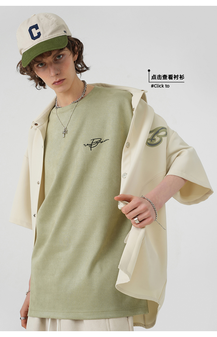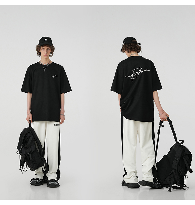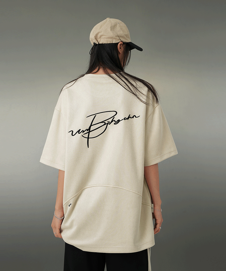 BJHG不計後果 夏季美式重磅刺繡麂皮絨短袖男生潮牌解構寬鬆T恤女