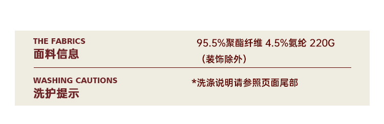材質成分 聚酯纖維95.5% 聚氨酯彈性纖維(氨綸)4.5%