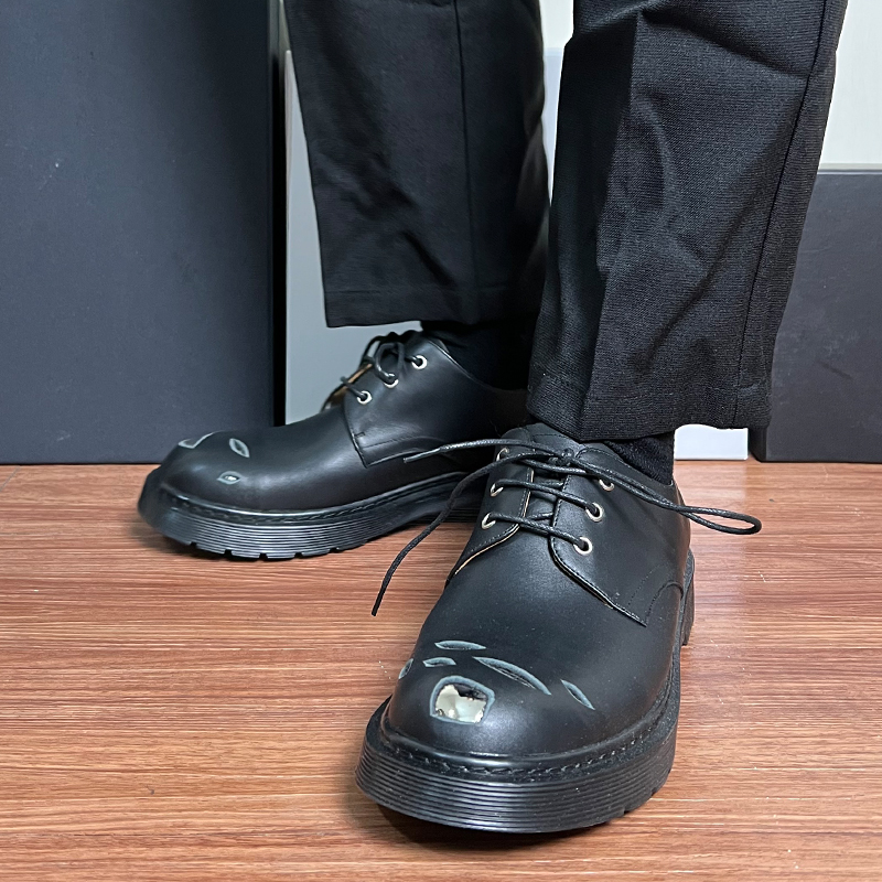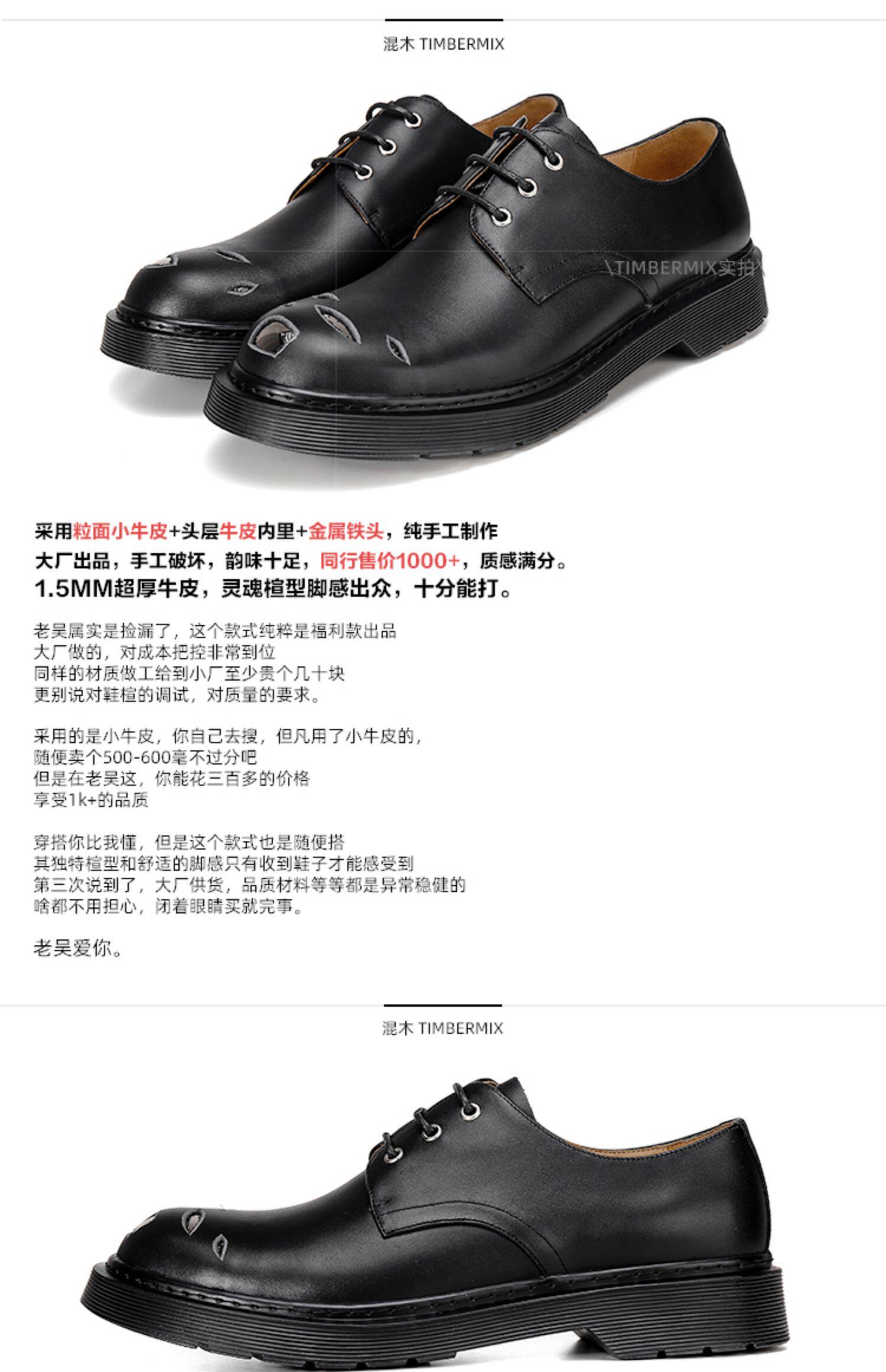 真·金屬鐵頭!vibe德比鞋男破壞設計鐵頭鞋進口小牛皮低幫馬丁鞋