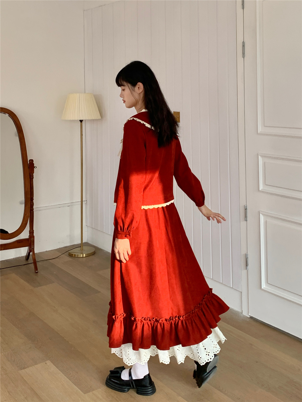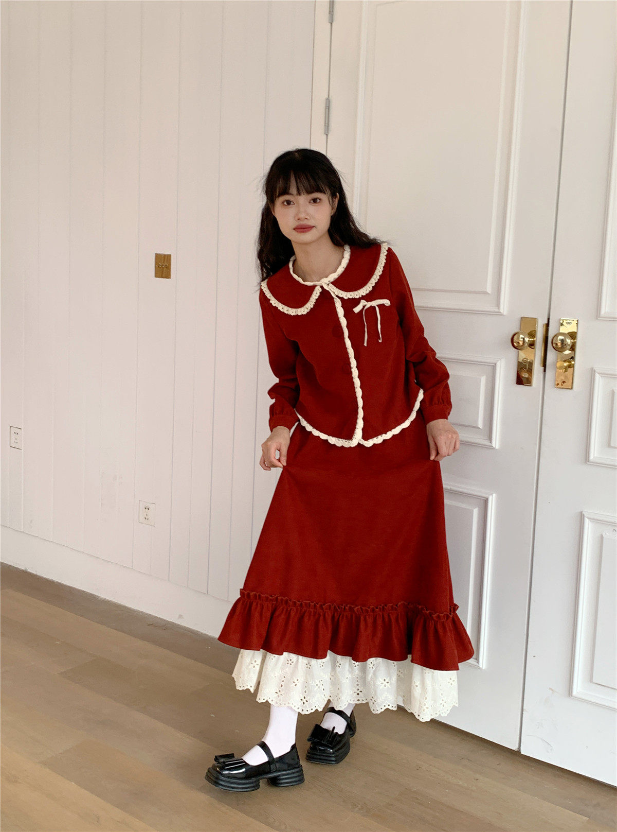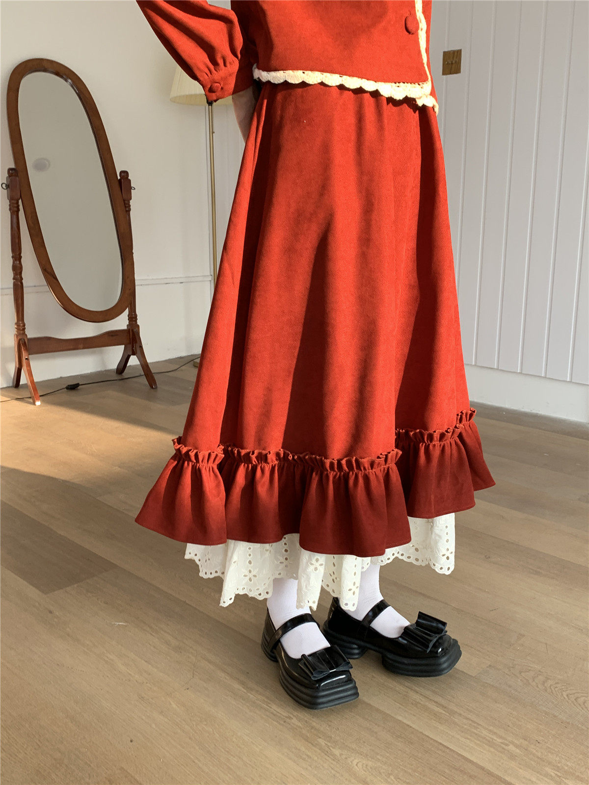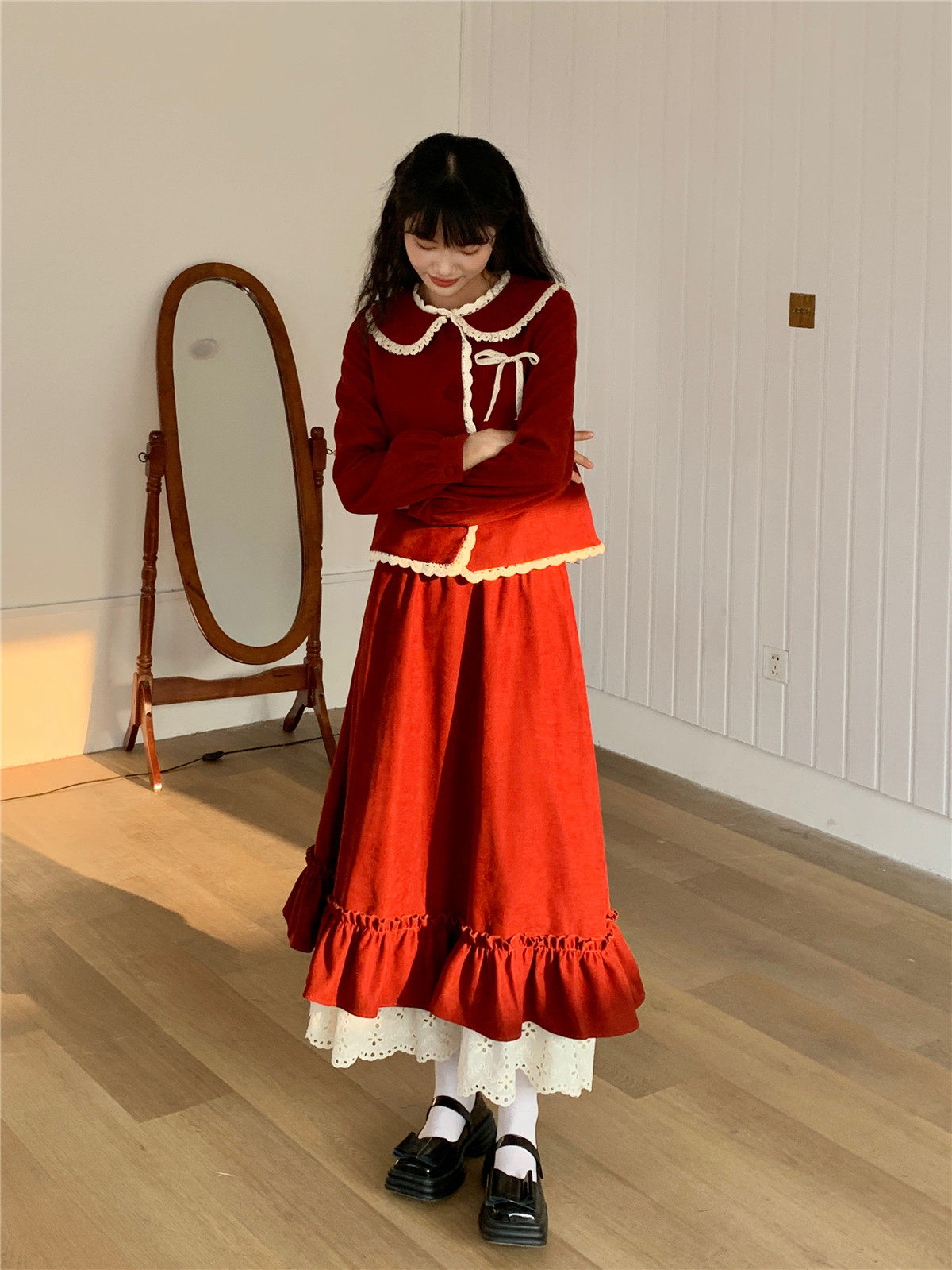 Mua木馬自制 紅色殿堂 半身裙加長款秋冬內搭新年耶誕森系少女感