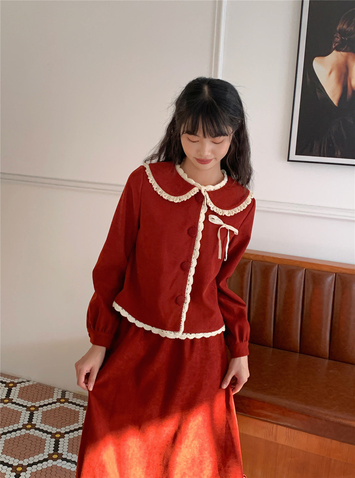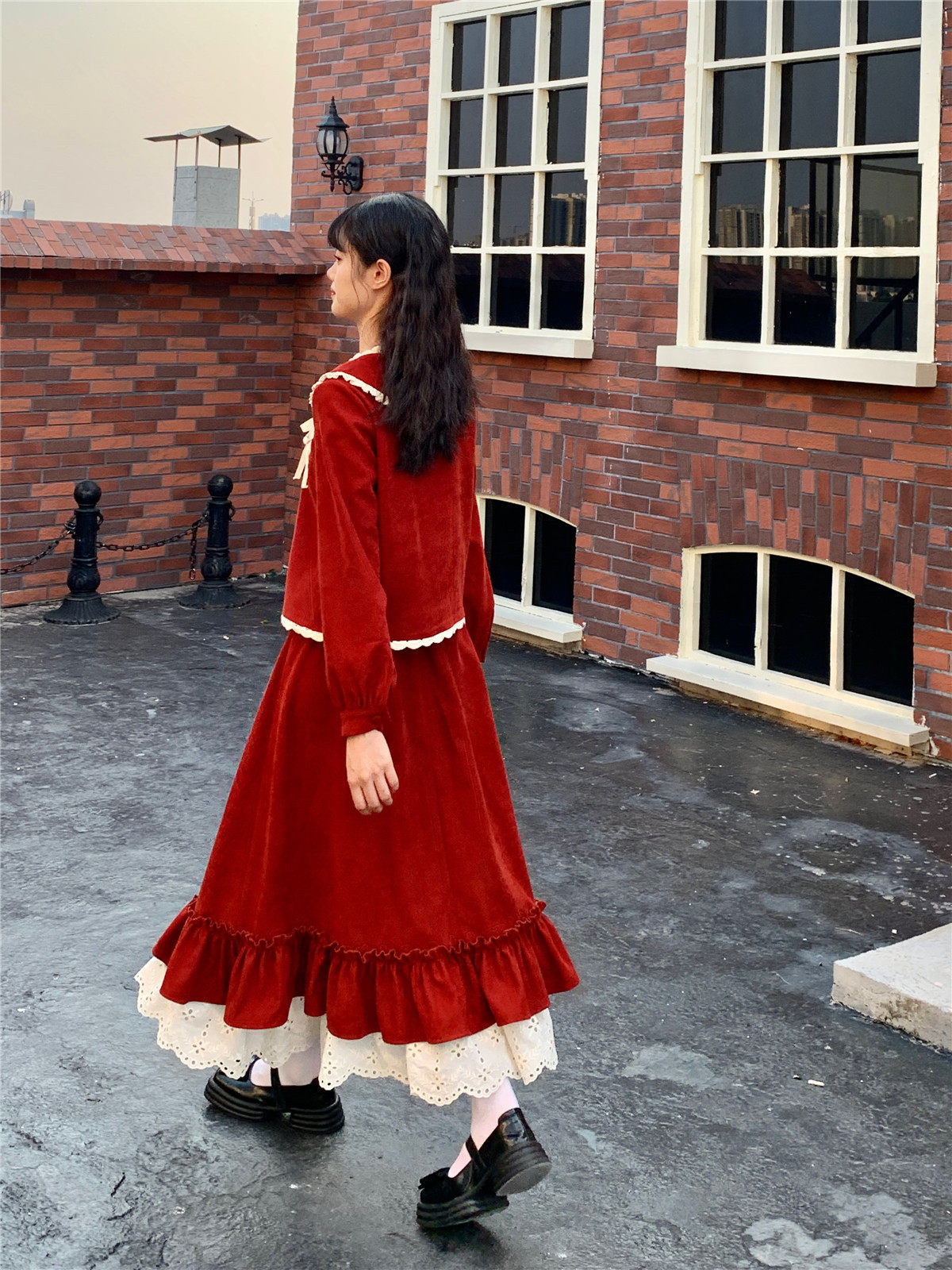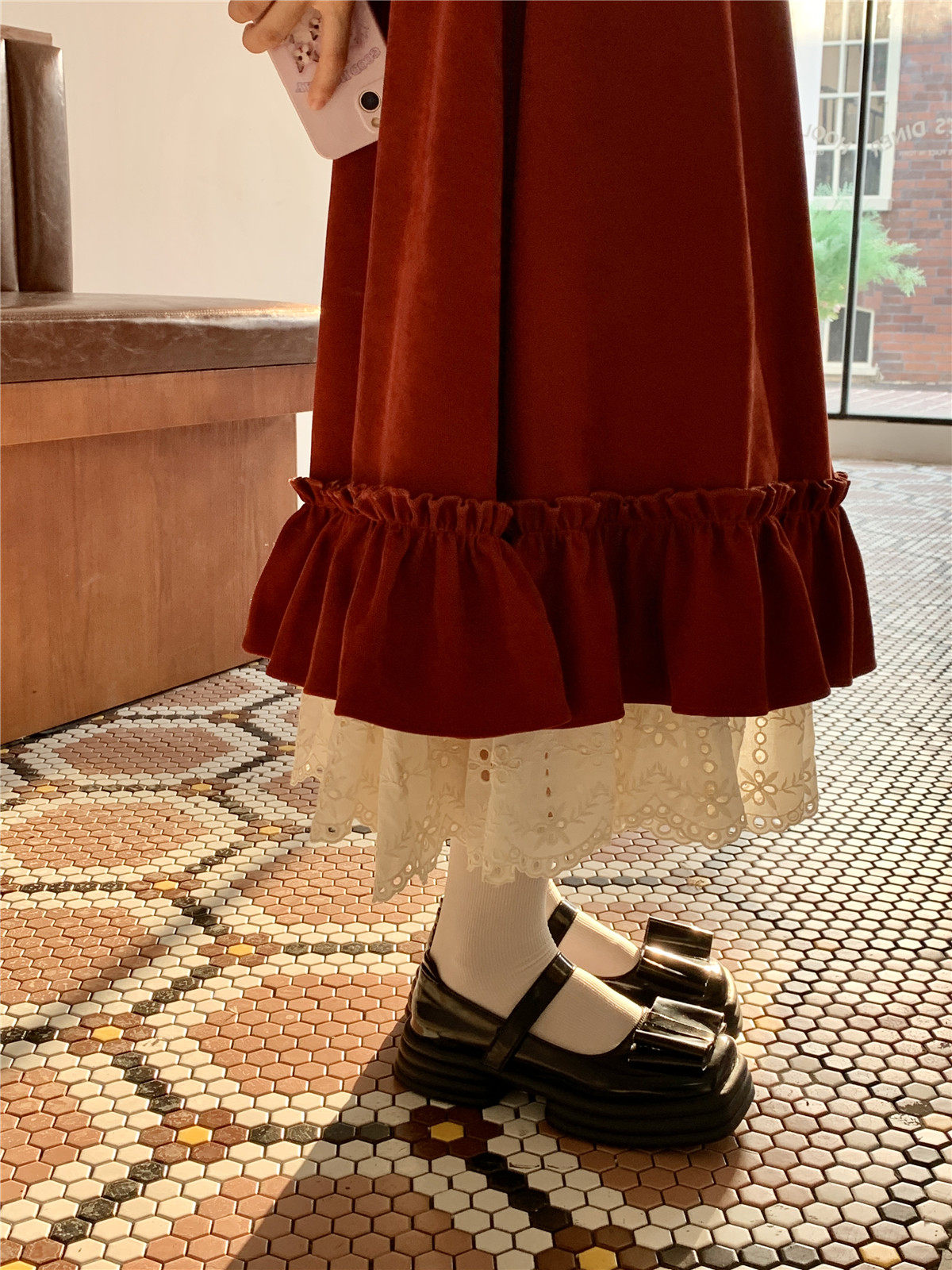 Mua木馬自制 紅色殿堂 半身裙加長款秋冬內搭新年耶誕森系少女感