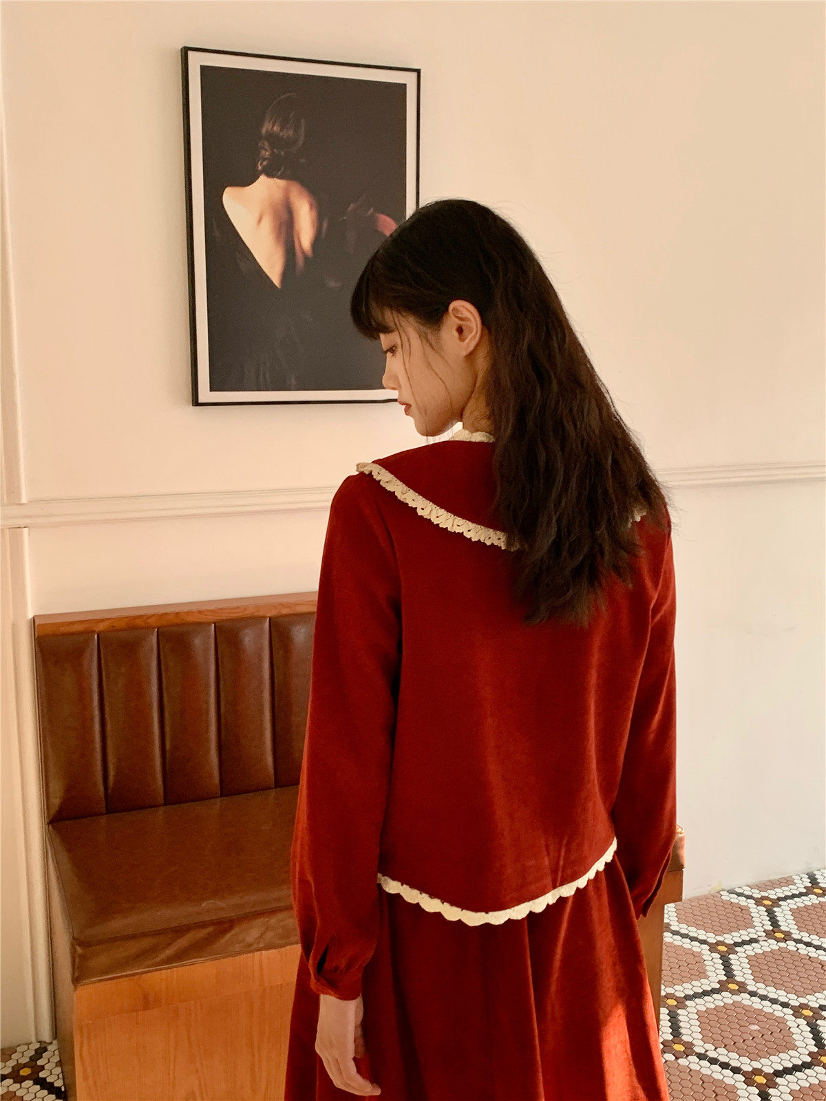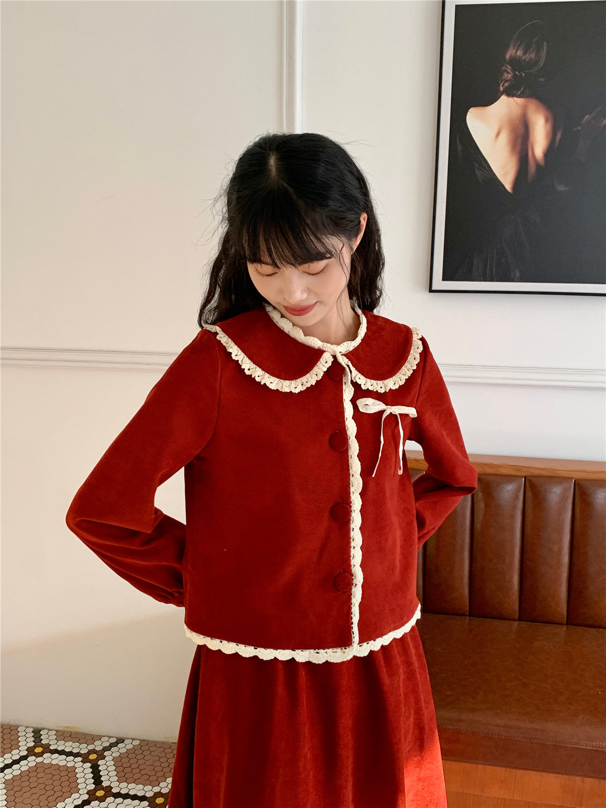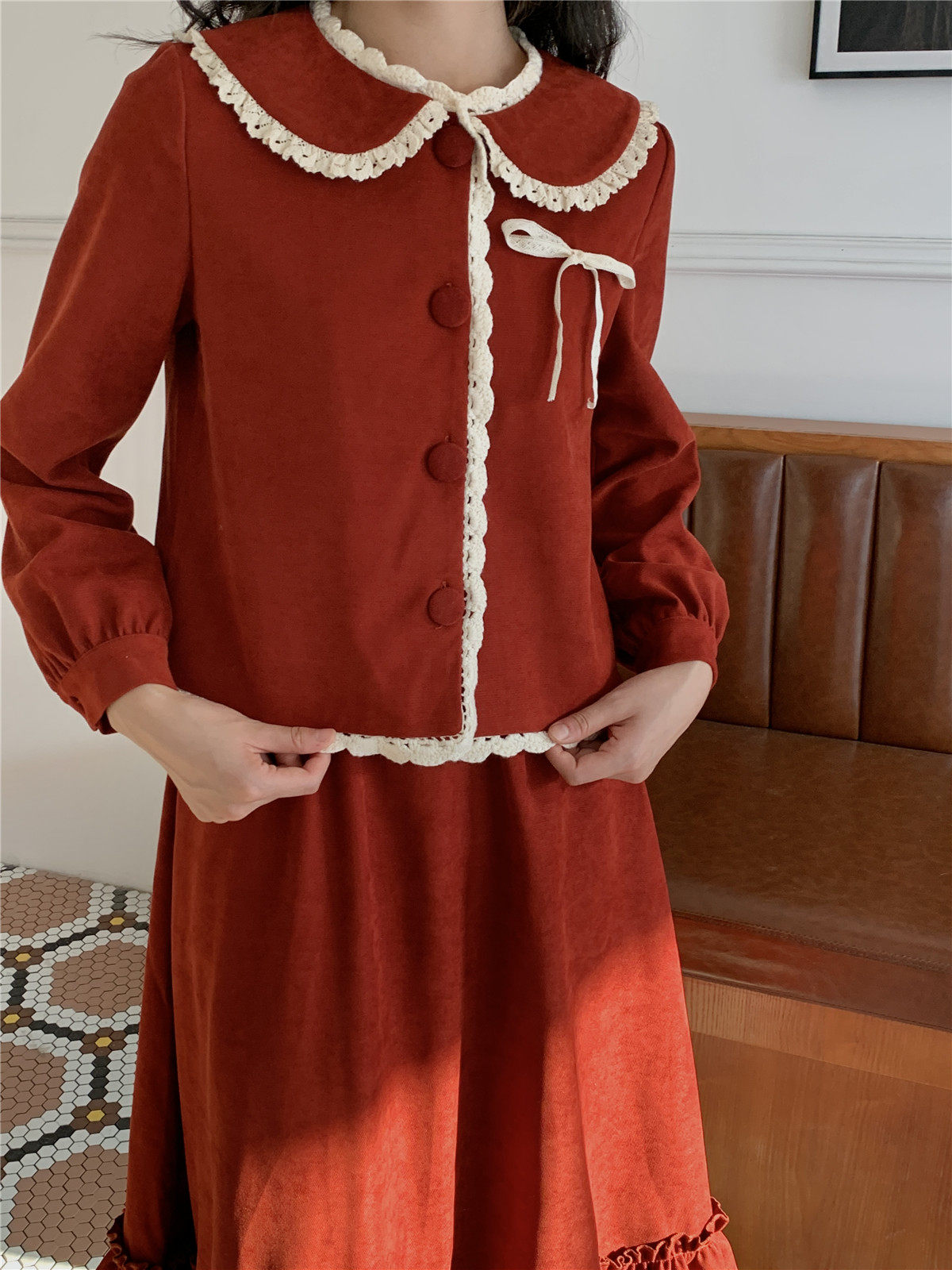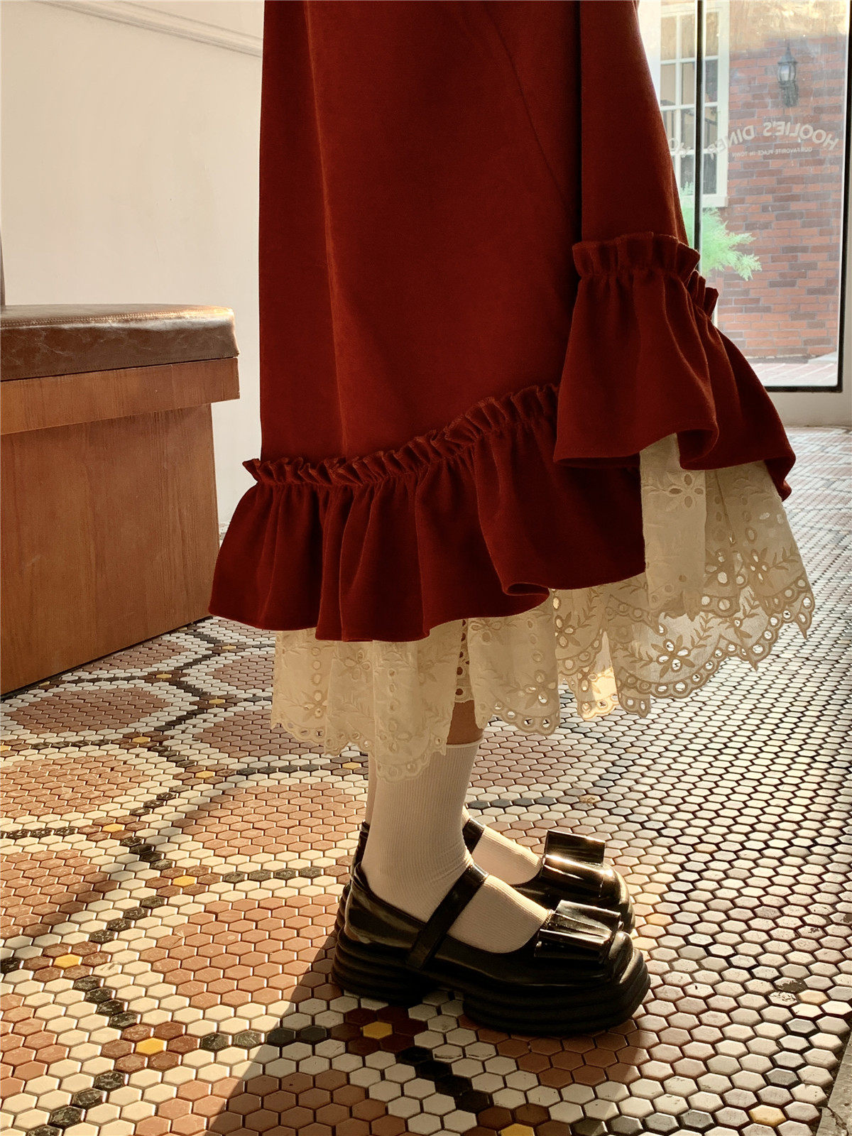 Mua木馬自制 紅色殿堂 半身裙加長款秋冬內搭新年耶誕森系少女感