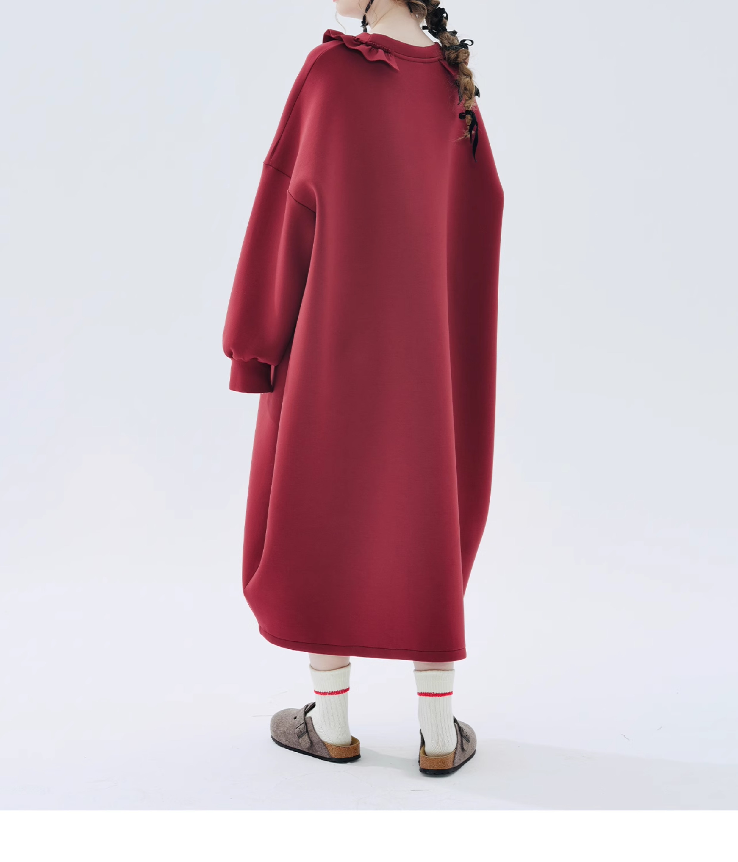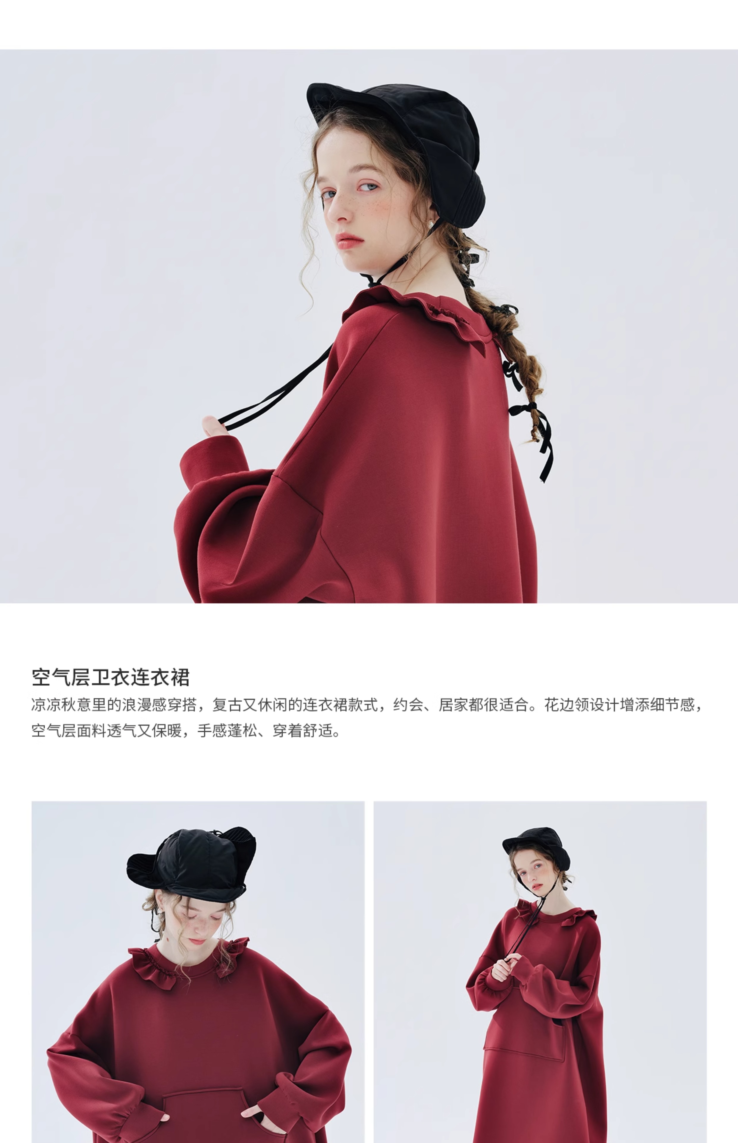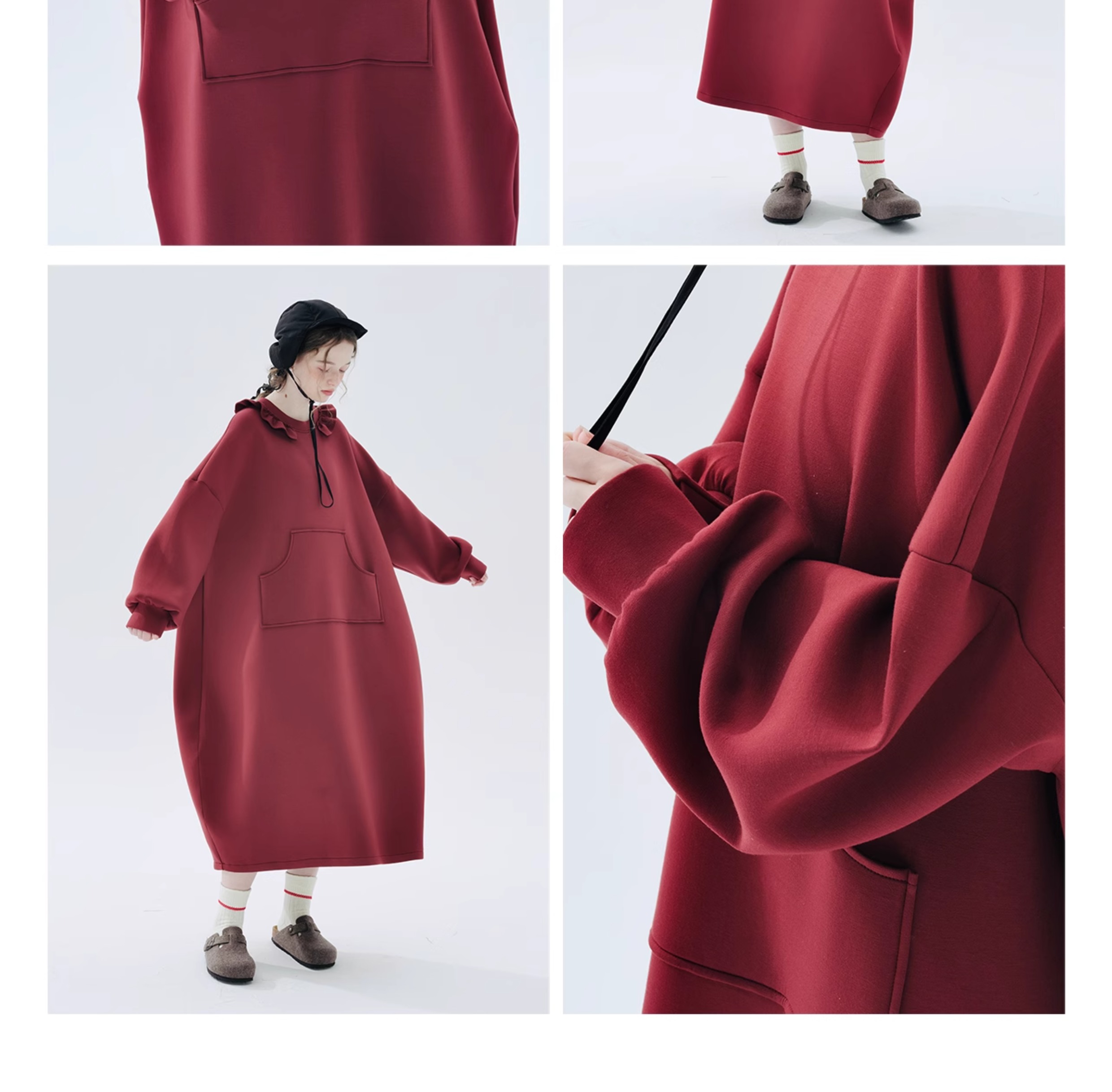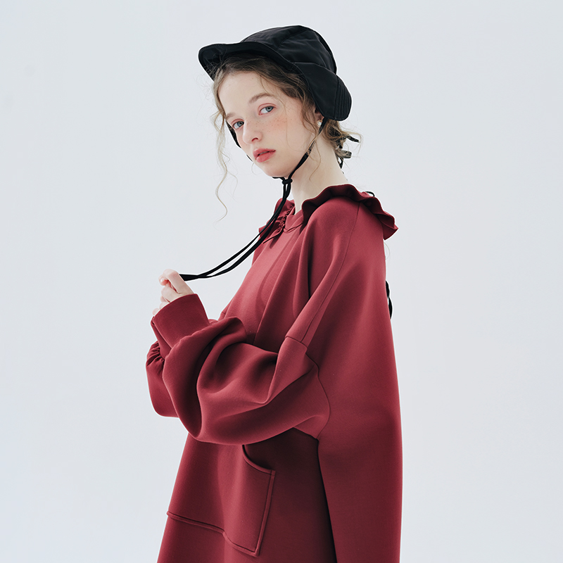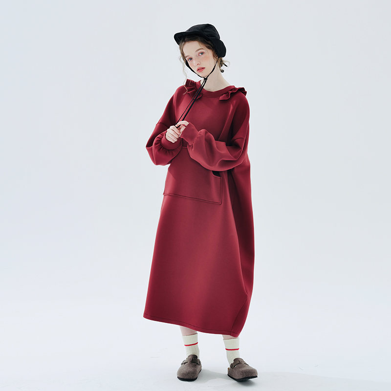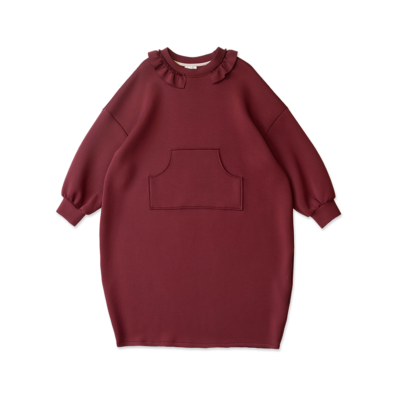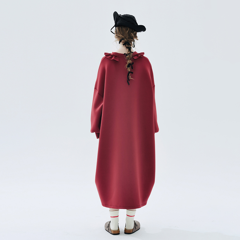 imakokoni 2023秋冬新款純棉酒紅空氣層衛衣裙長袖洋裝234335