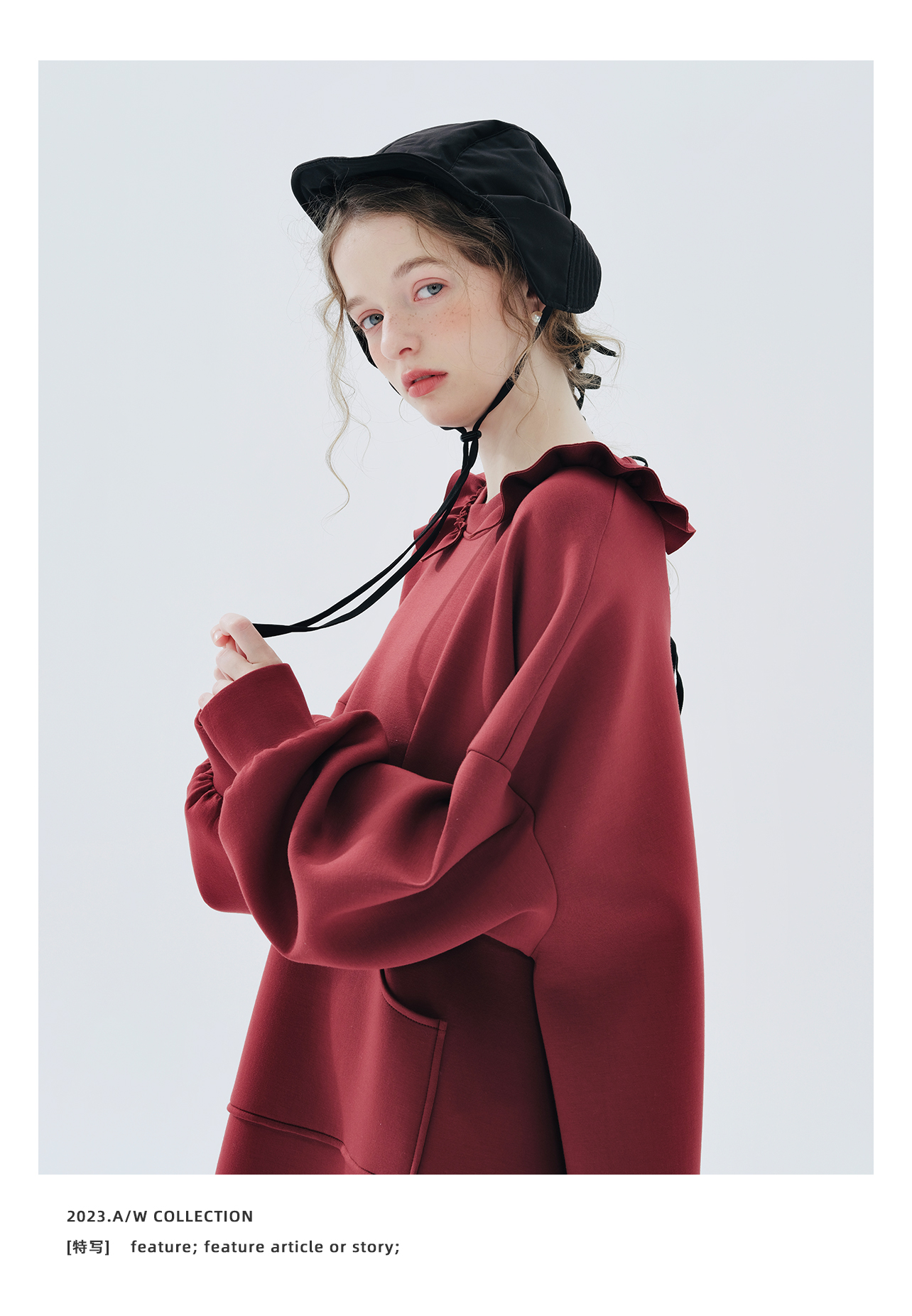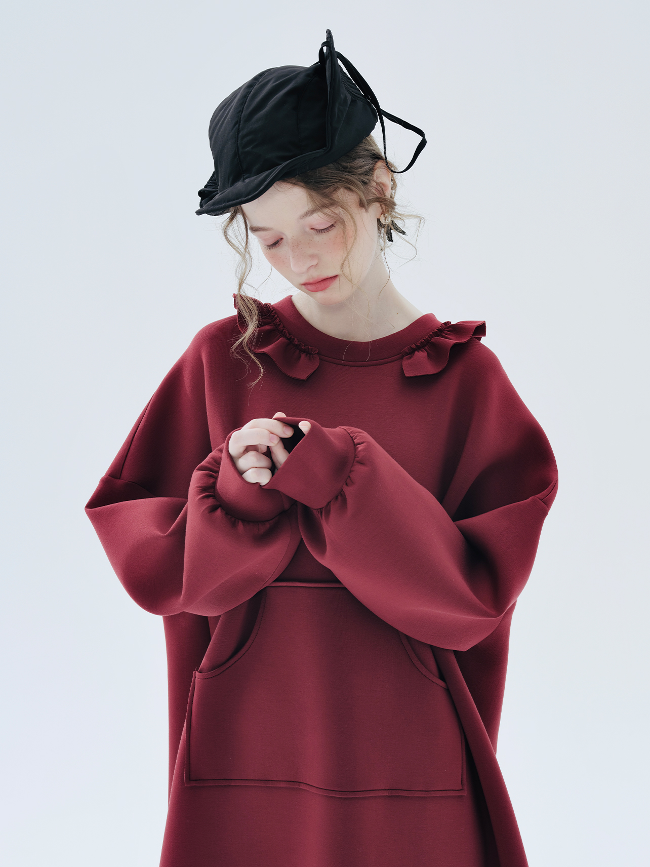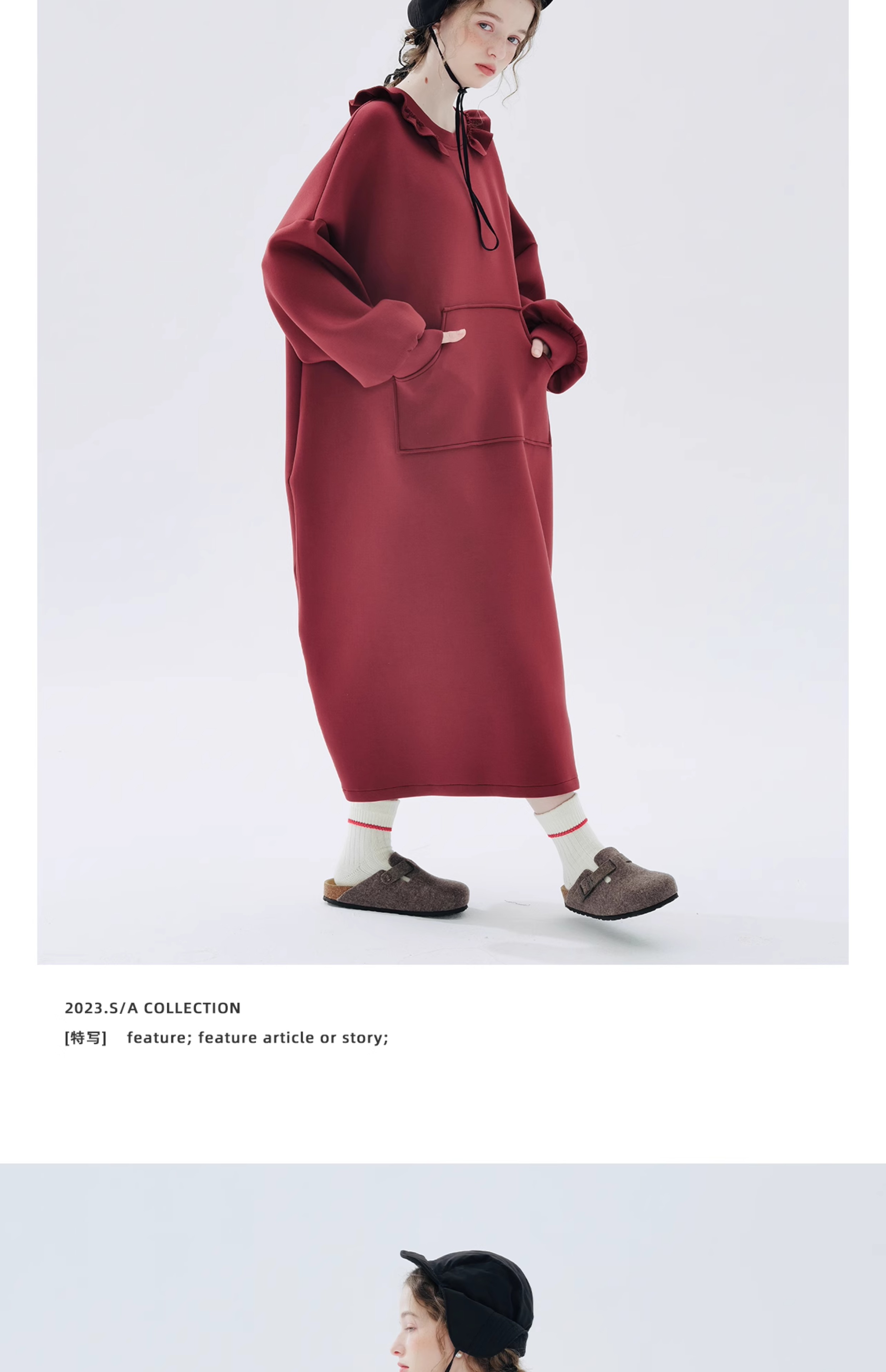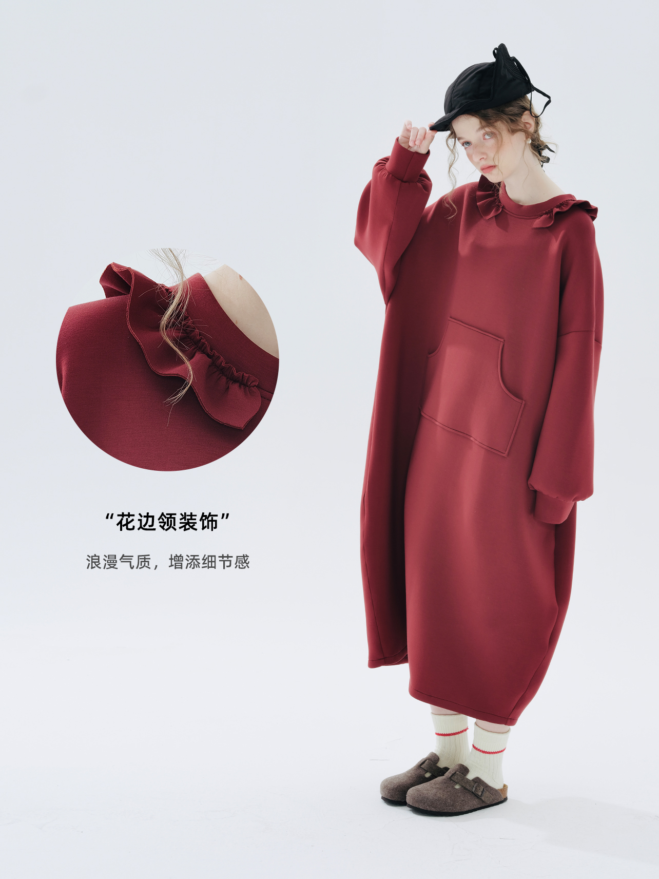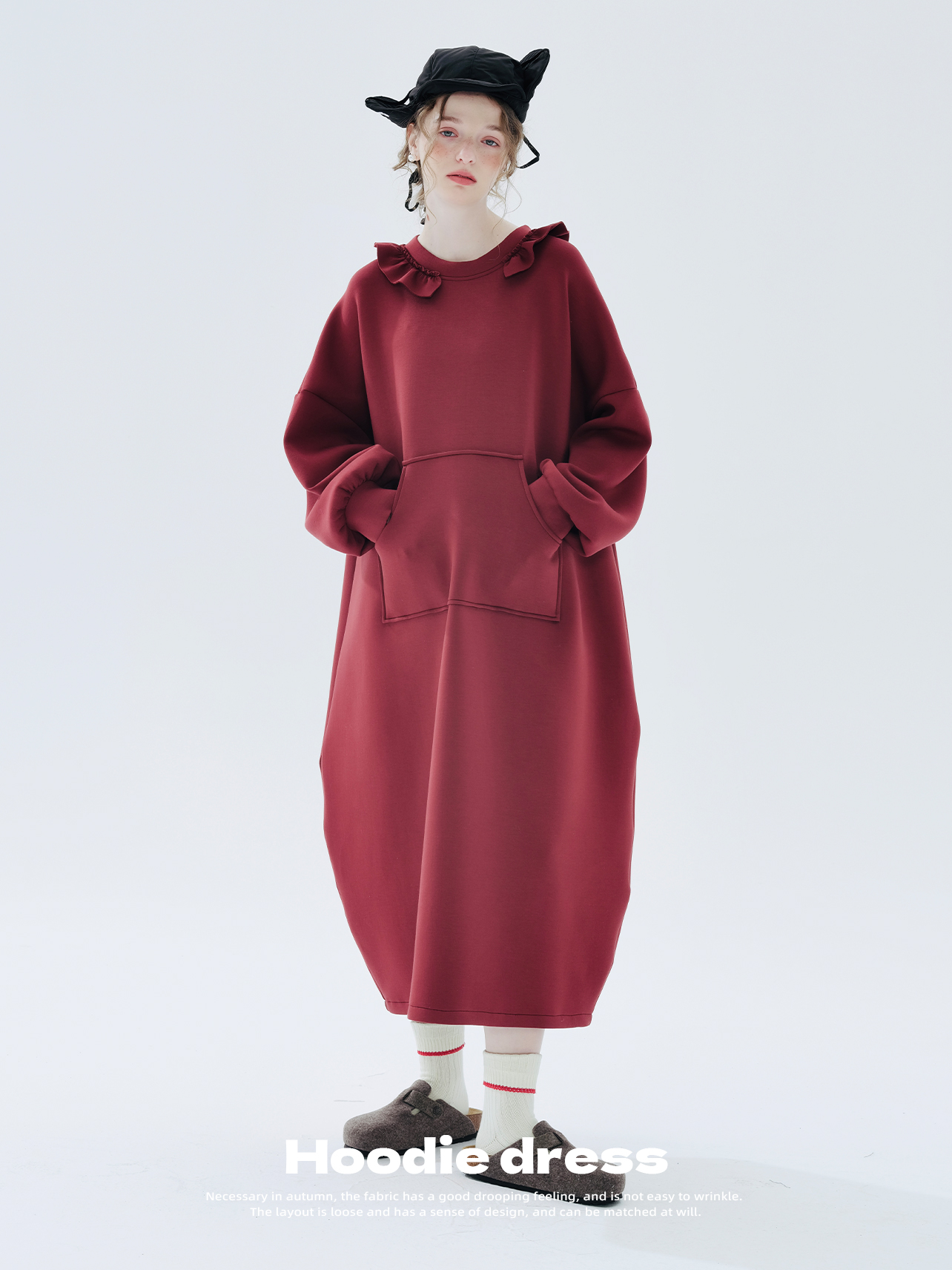 imakokoni 2023秋冬新款純棉酒紅空氣層衛衣裙長袖洋裝234335