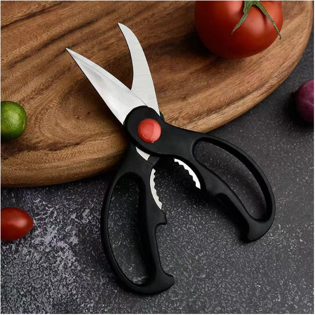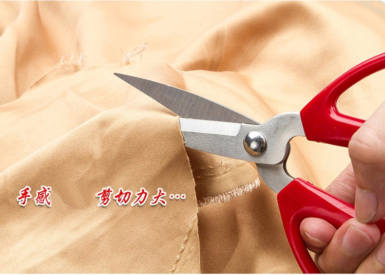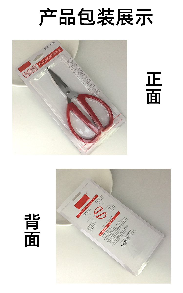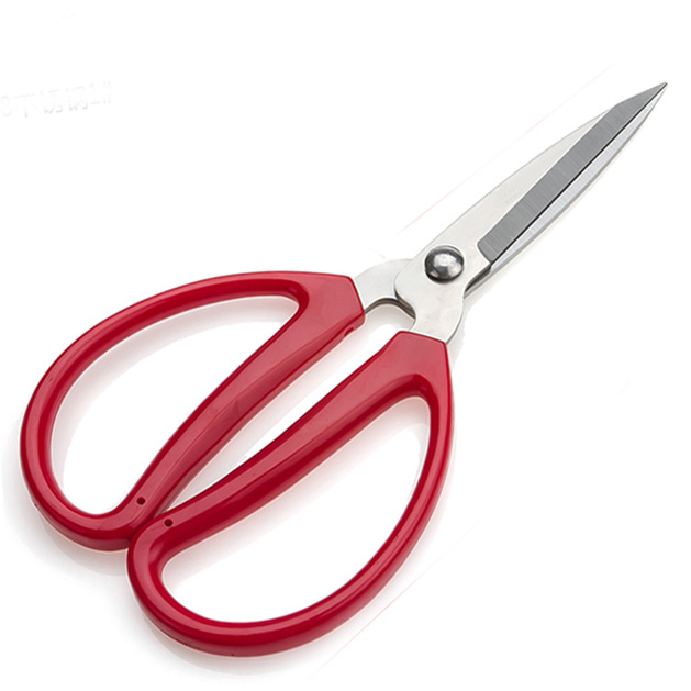 家用办公剪刀厂家批发带包装可挂红色塑料柄阳江不锈钢裁剪刀百货