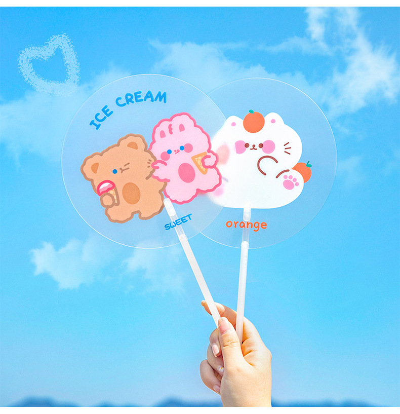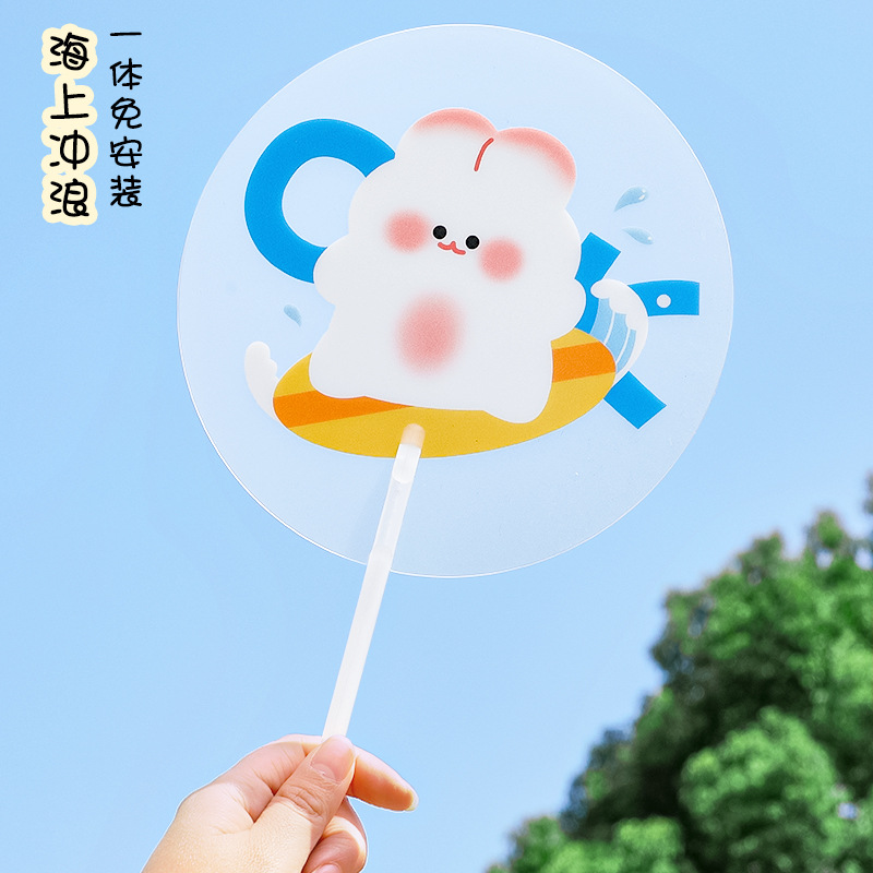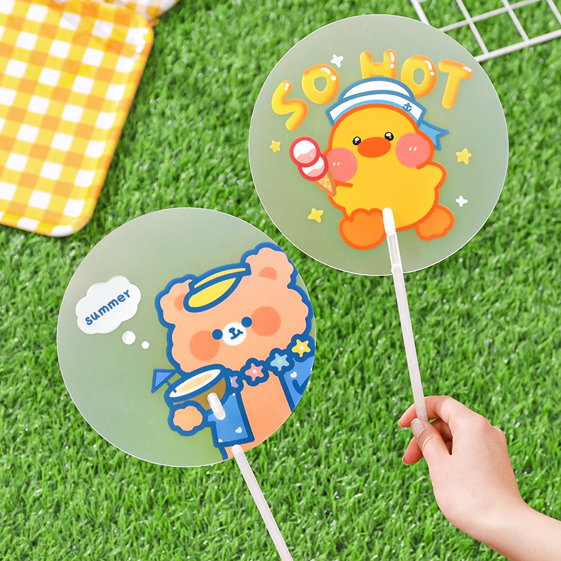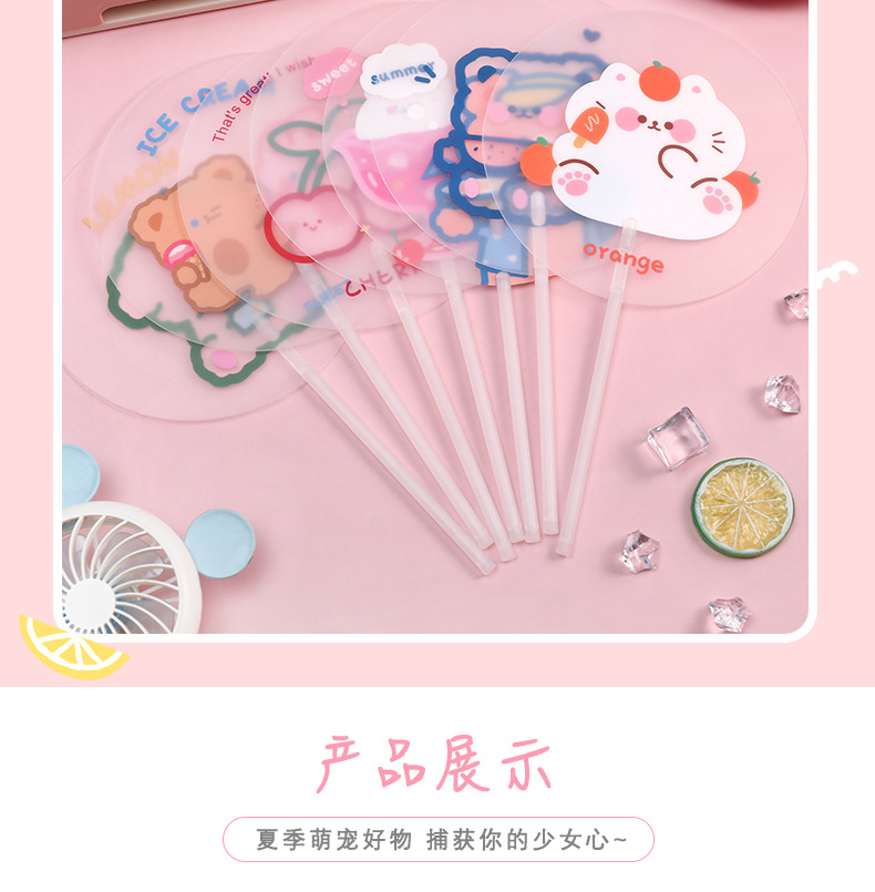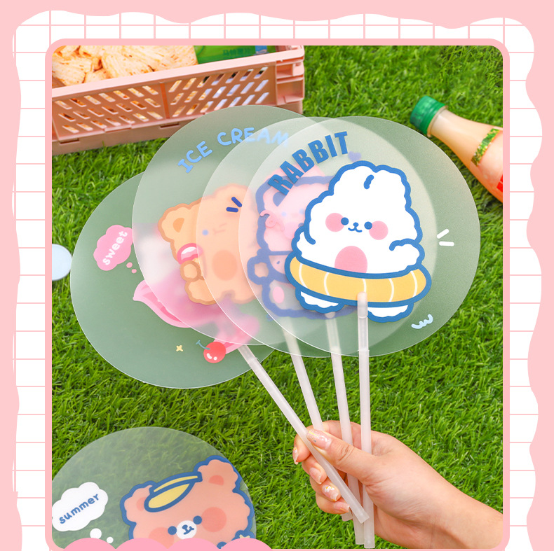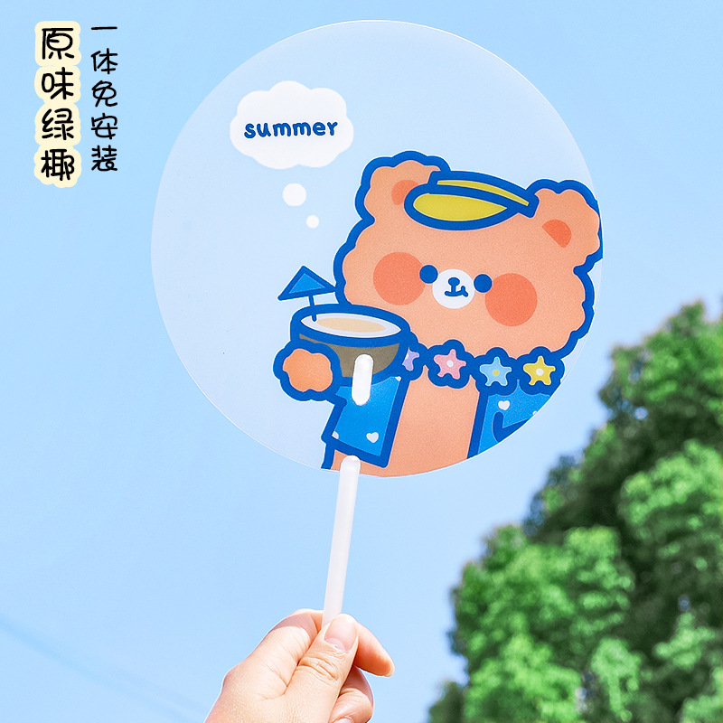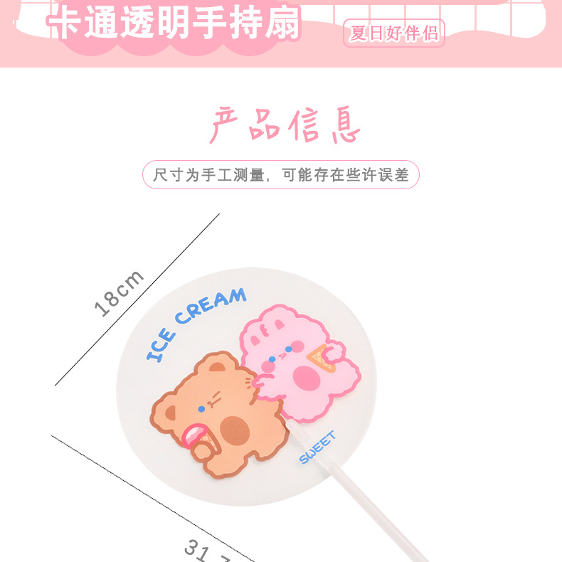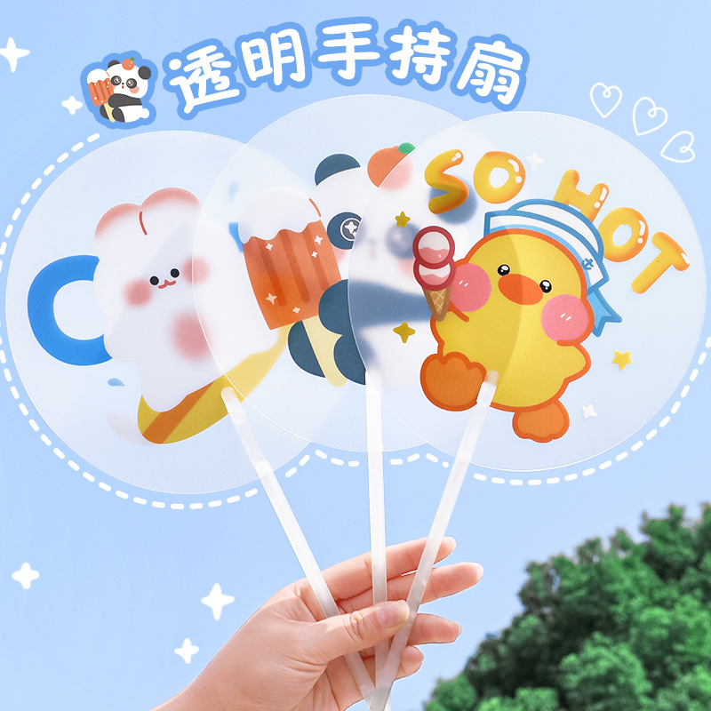 卡通透明pp手持扇 ins少女夏季清凉小圆扇学生便携随身可爱扇子