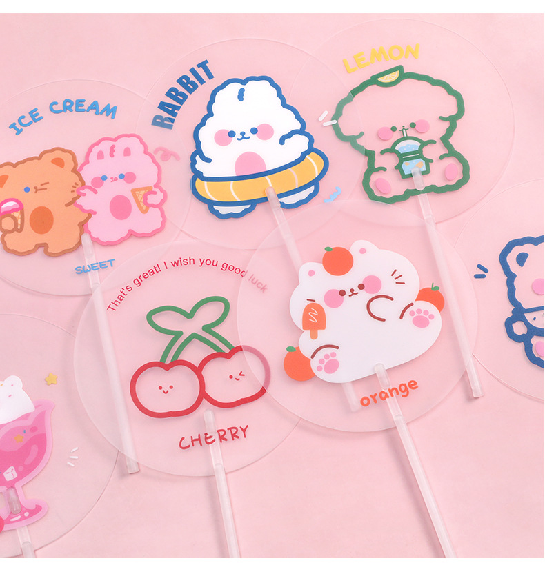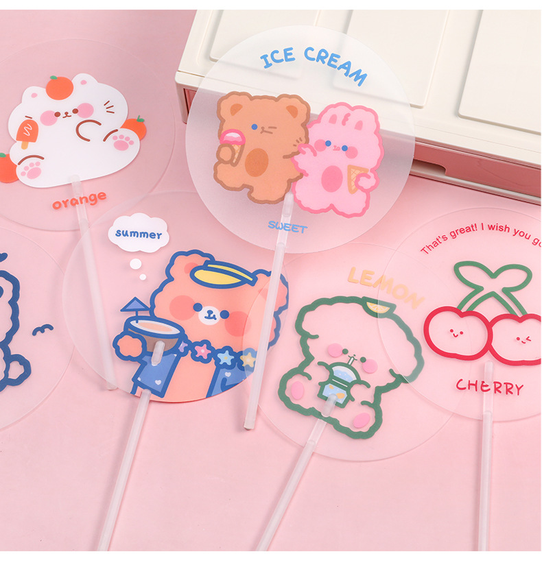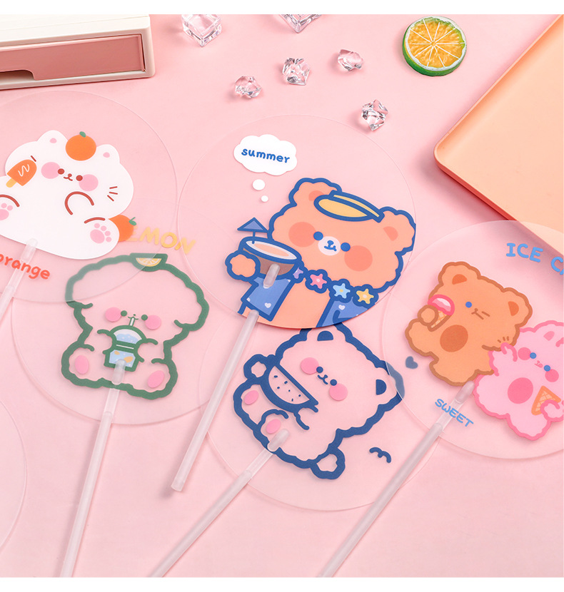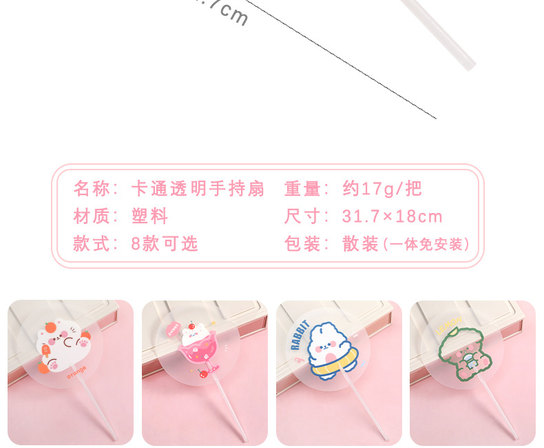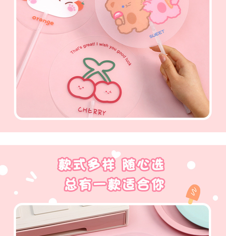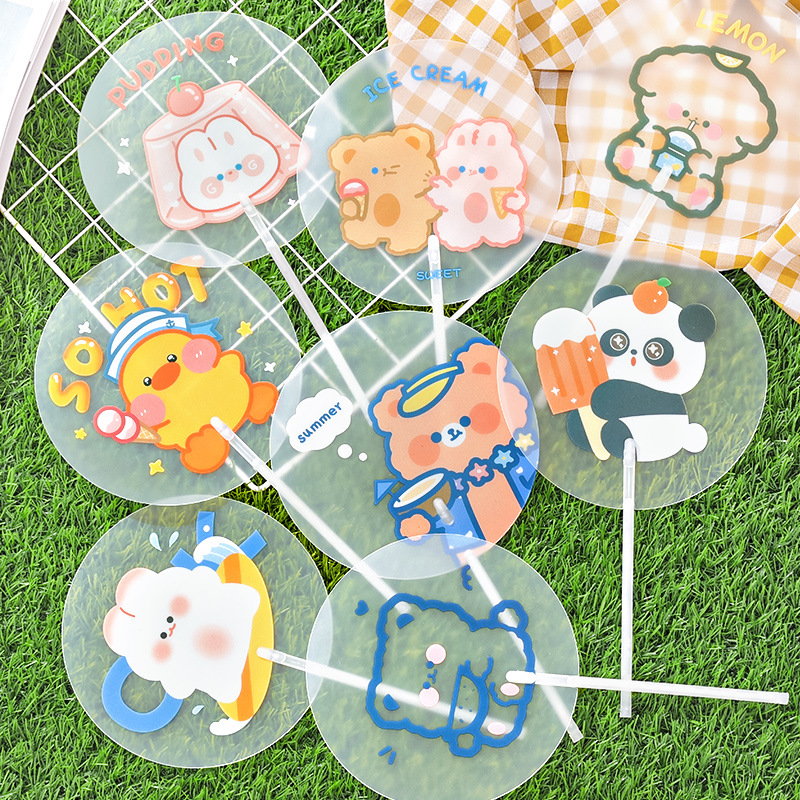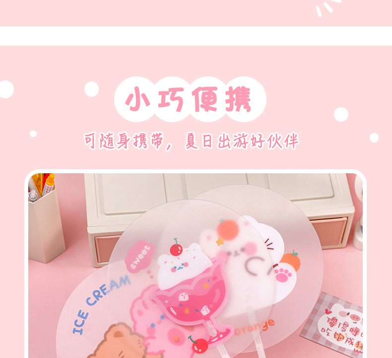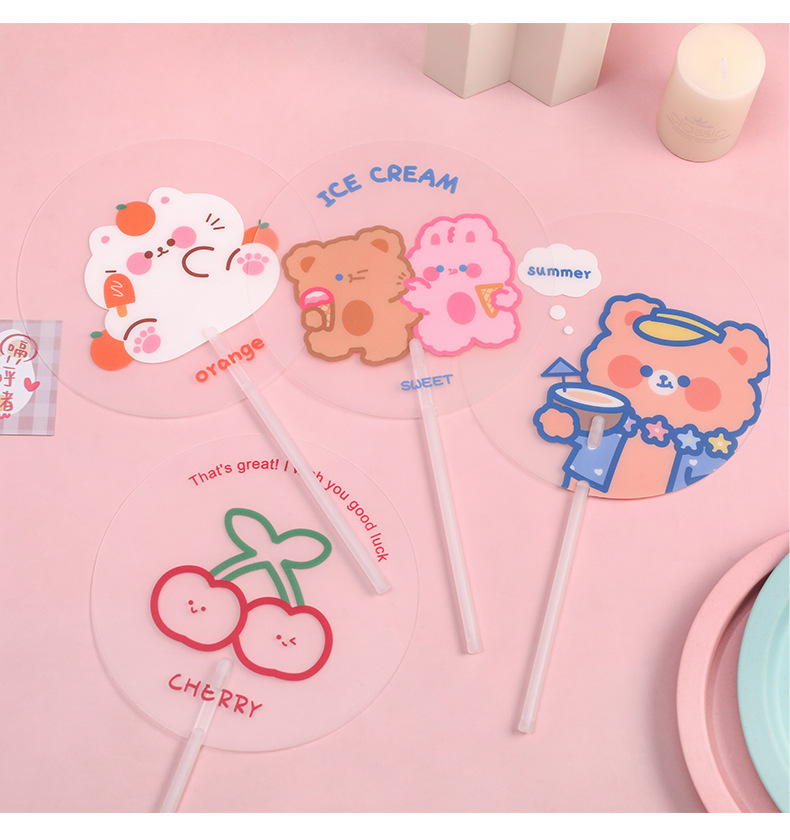 卡通透明pp手持扇 ins少女夏季清凉小圆扇学生便携随身可爱扇子