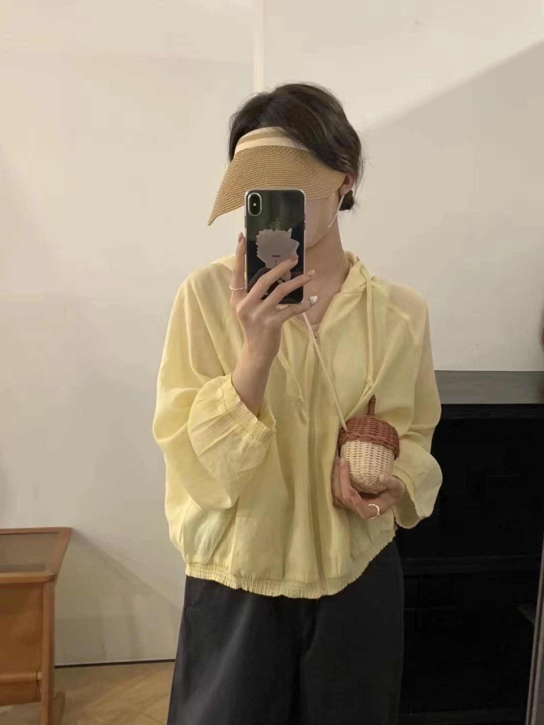 韓系鵝黃色防曬連帽拉鍊開衫外套夏季寬鬆休閒百搭薄款外搭上衣女