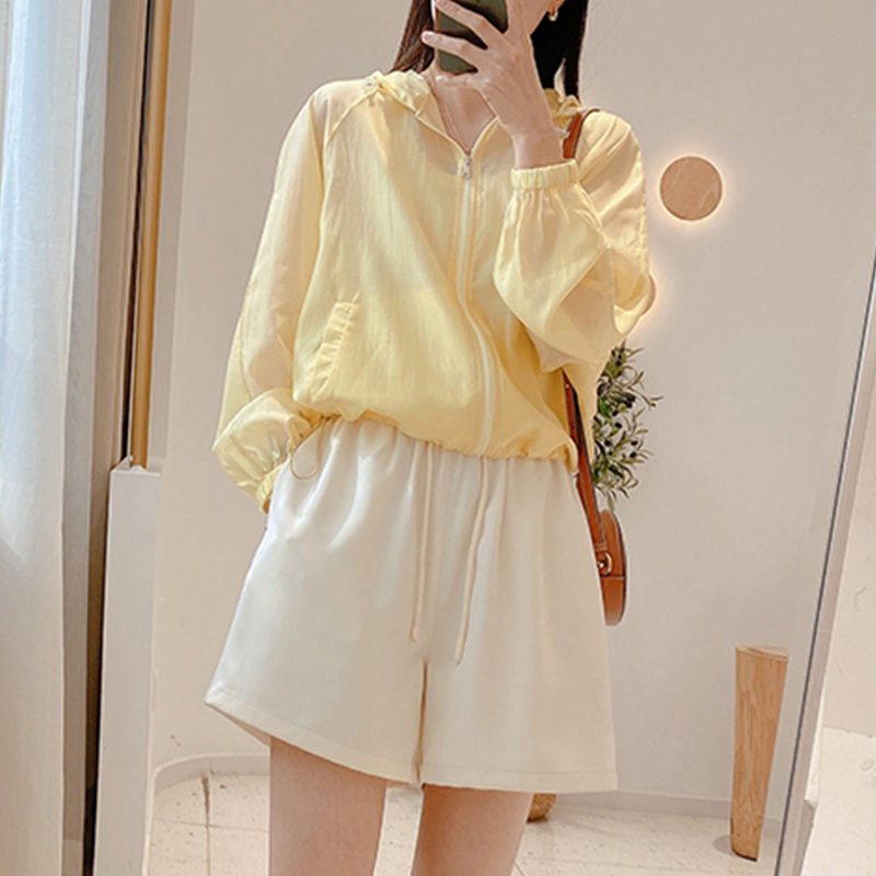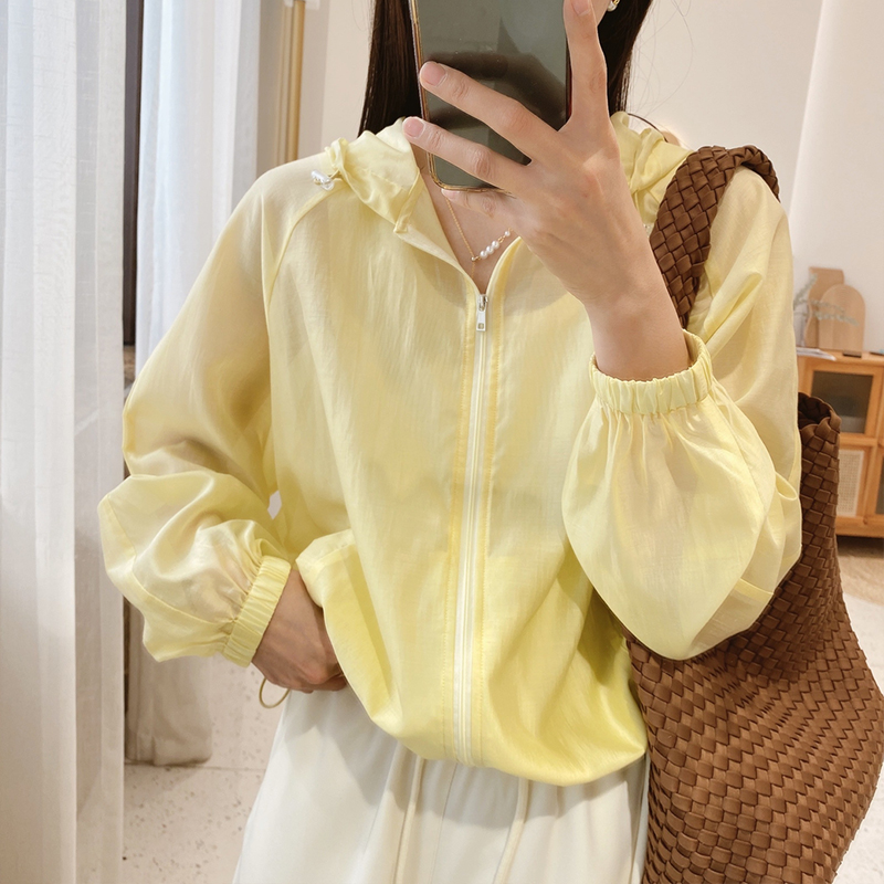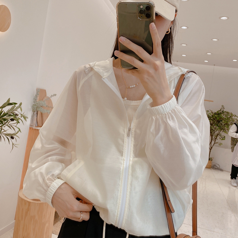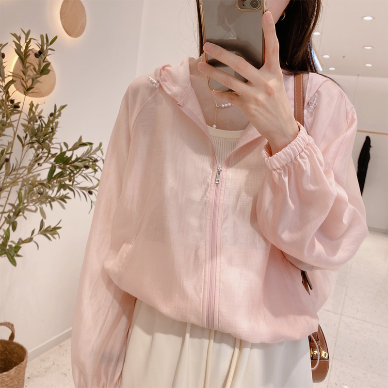 粉色透氣冰絲防曬衣女2023新款夏季韓版寬鬆連帽短款薄外套上衣服