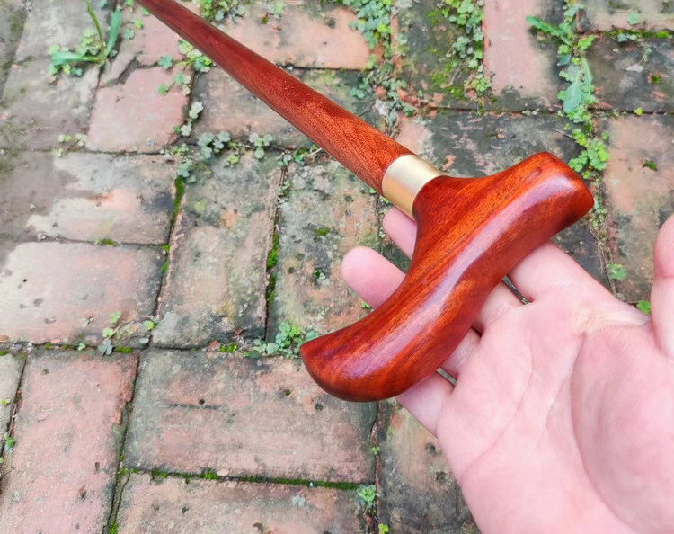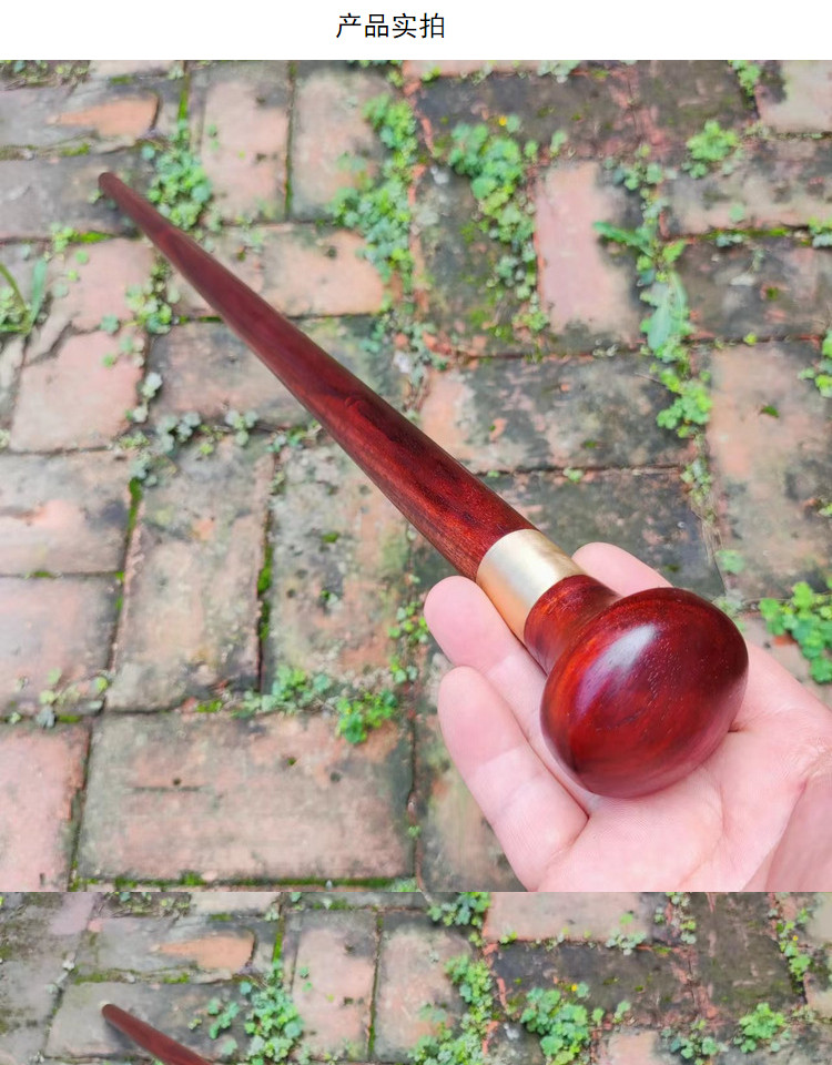 紫檀木手杖老年人柺杖防滑輕便徒步柺棍一體兩用原木質手工登山杖