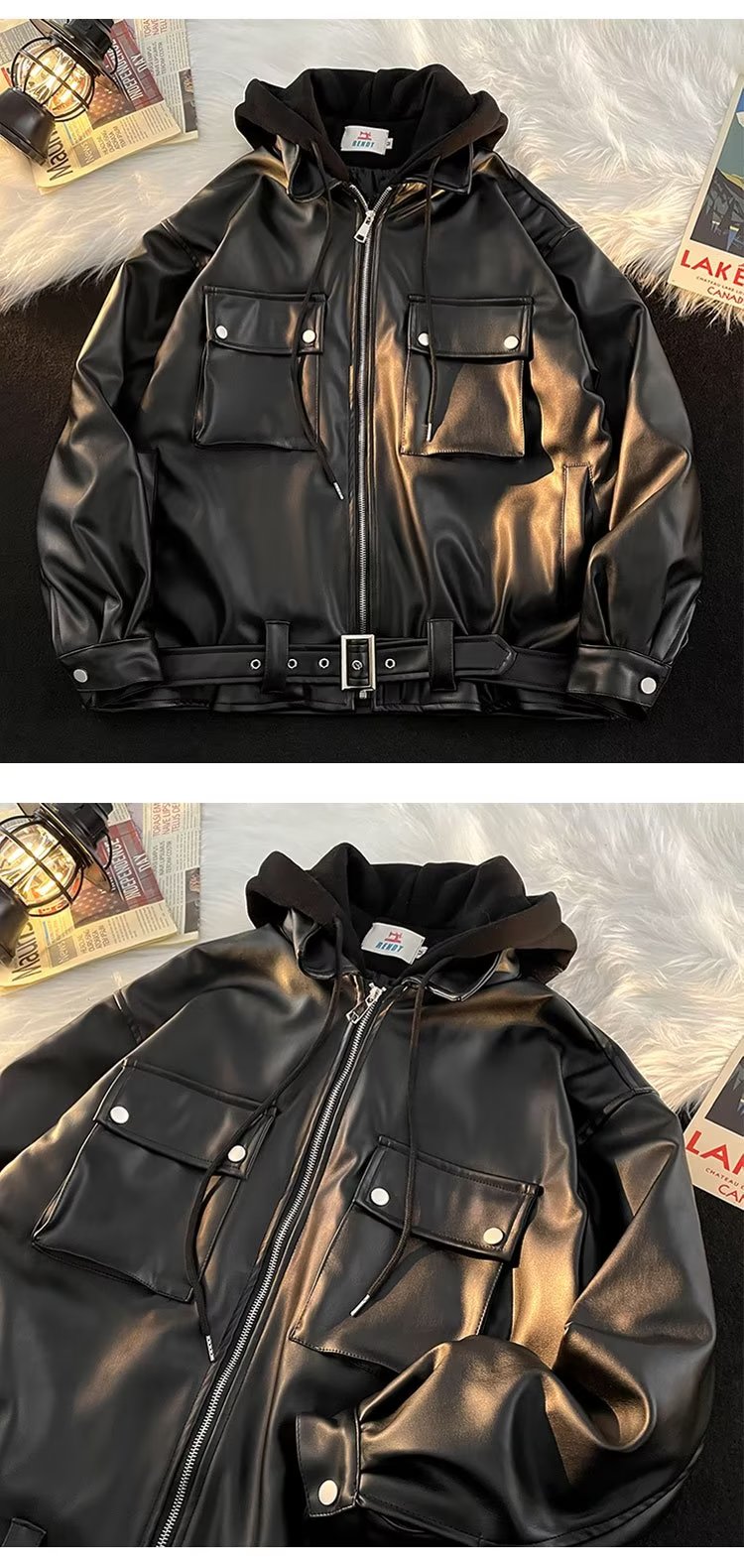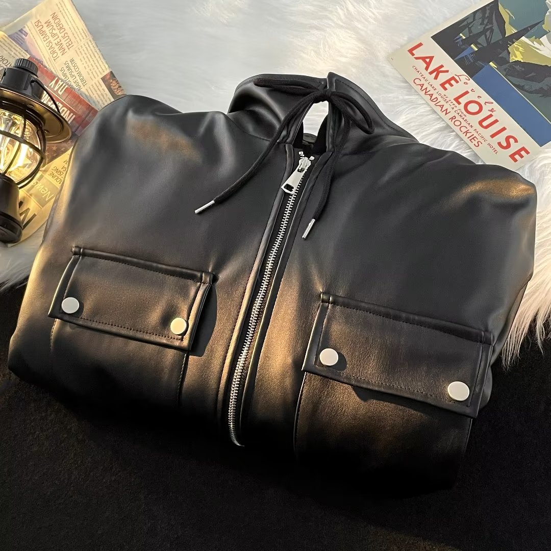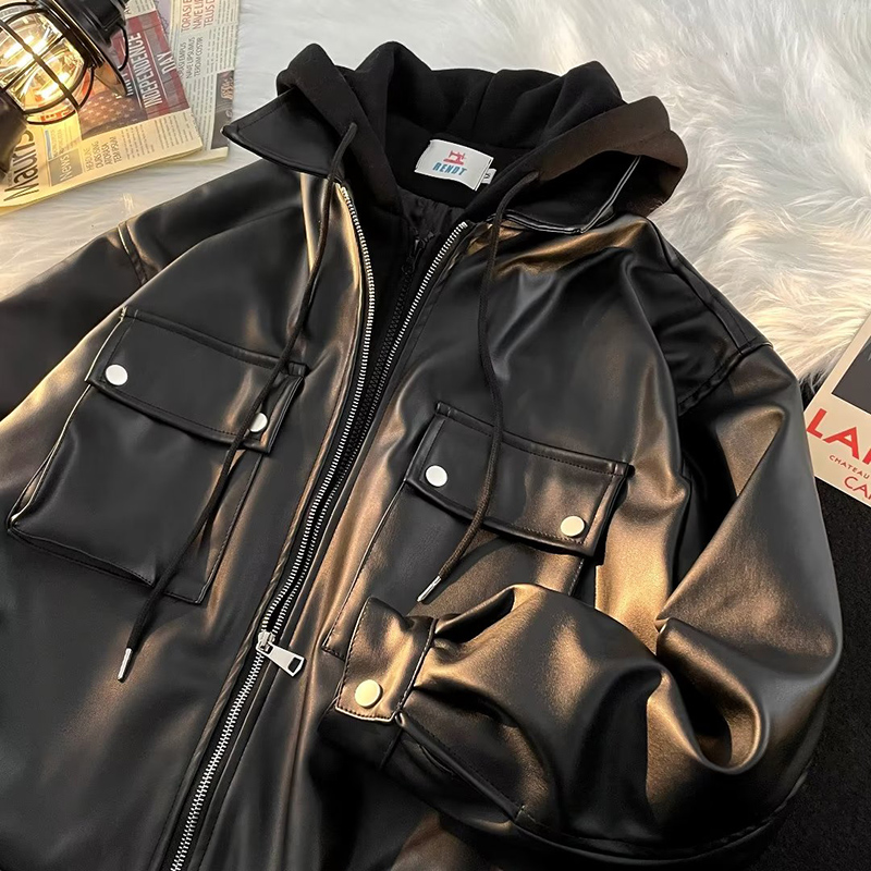 多情爵士 美式復古PU皮機車夾克男高街ins潮牌假兩件皮衣外套