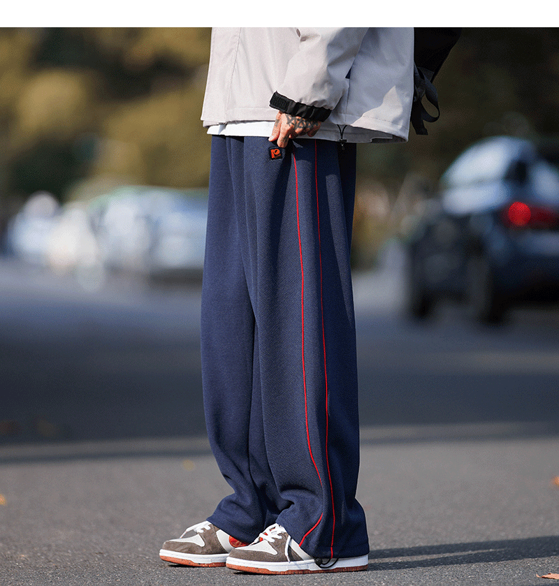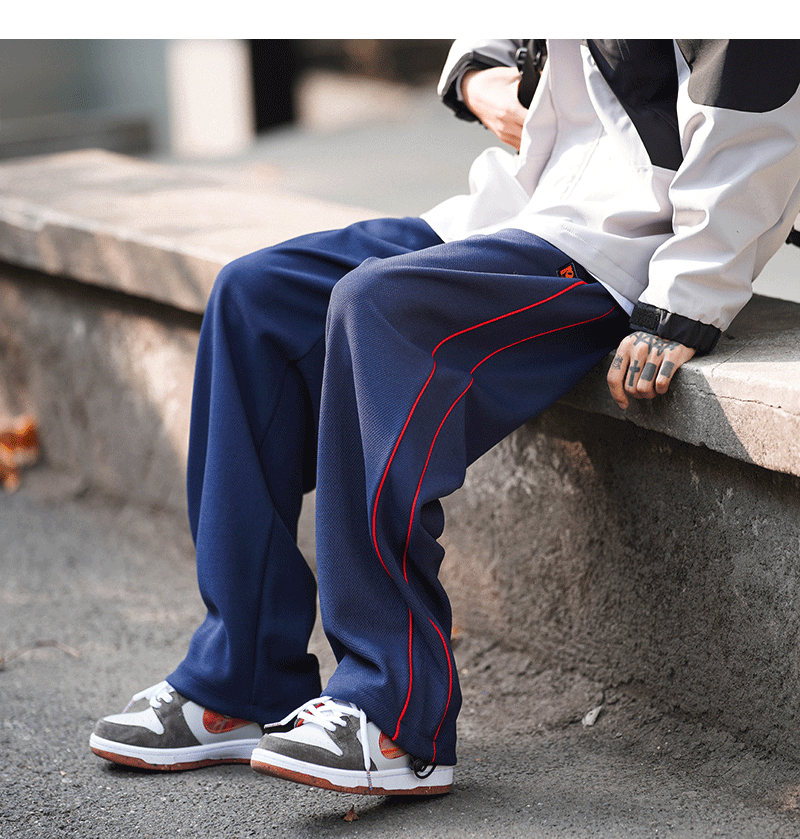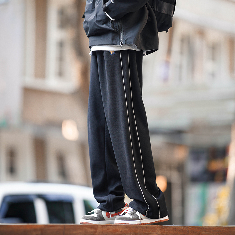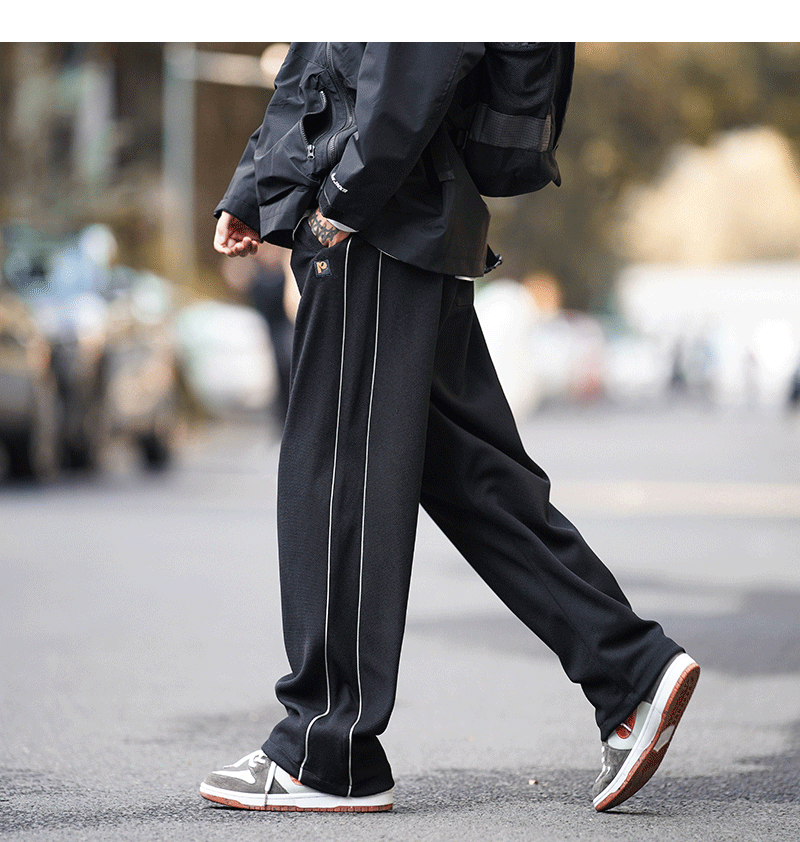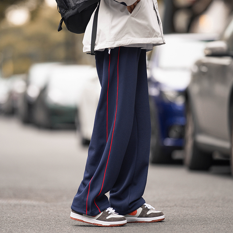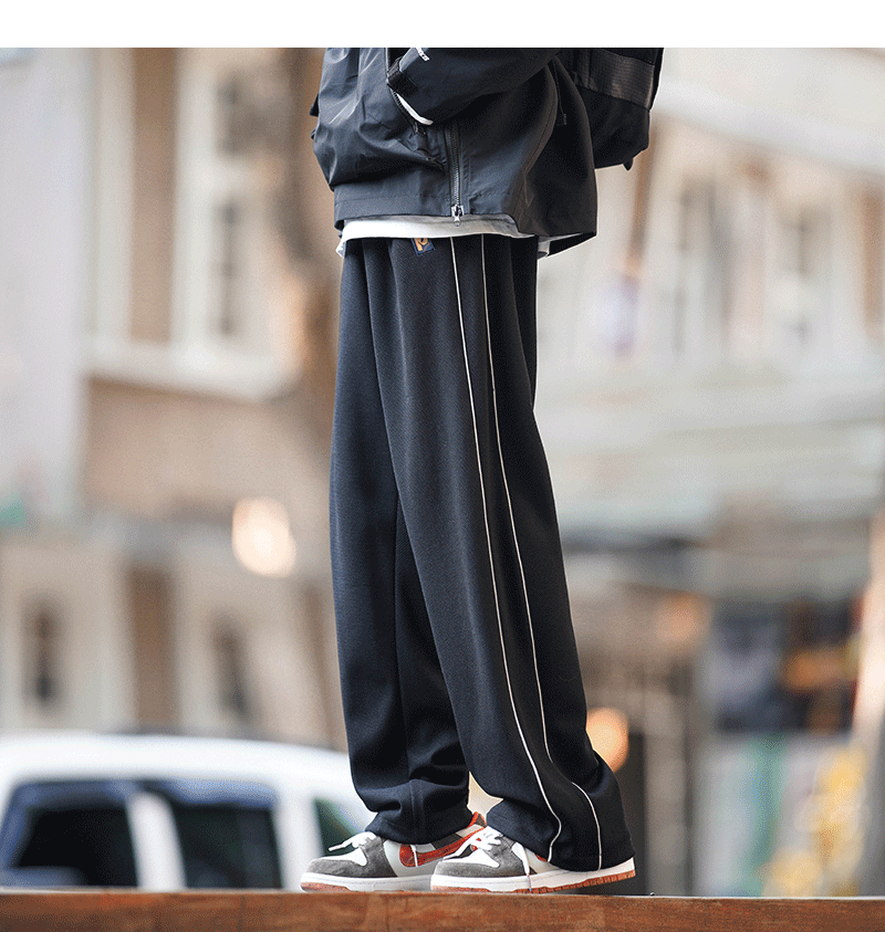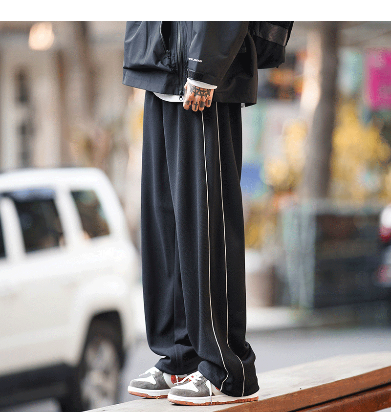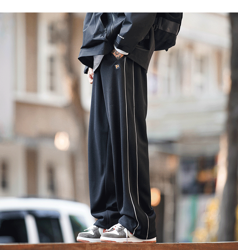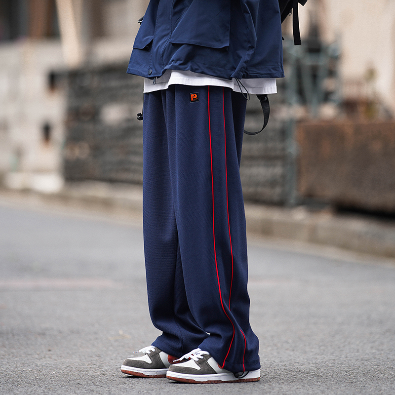 美式vibe風高街褲子男ins側邊條紋闊腿休閒褲oldschool設計感長褲
