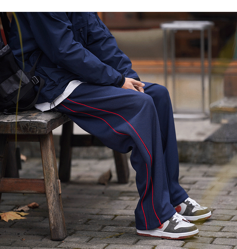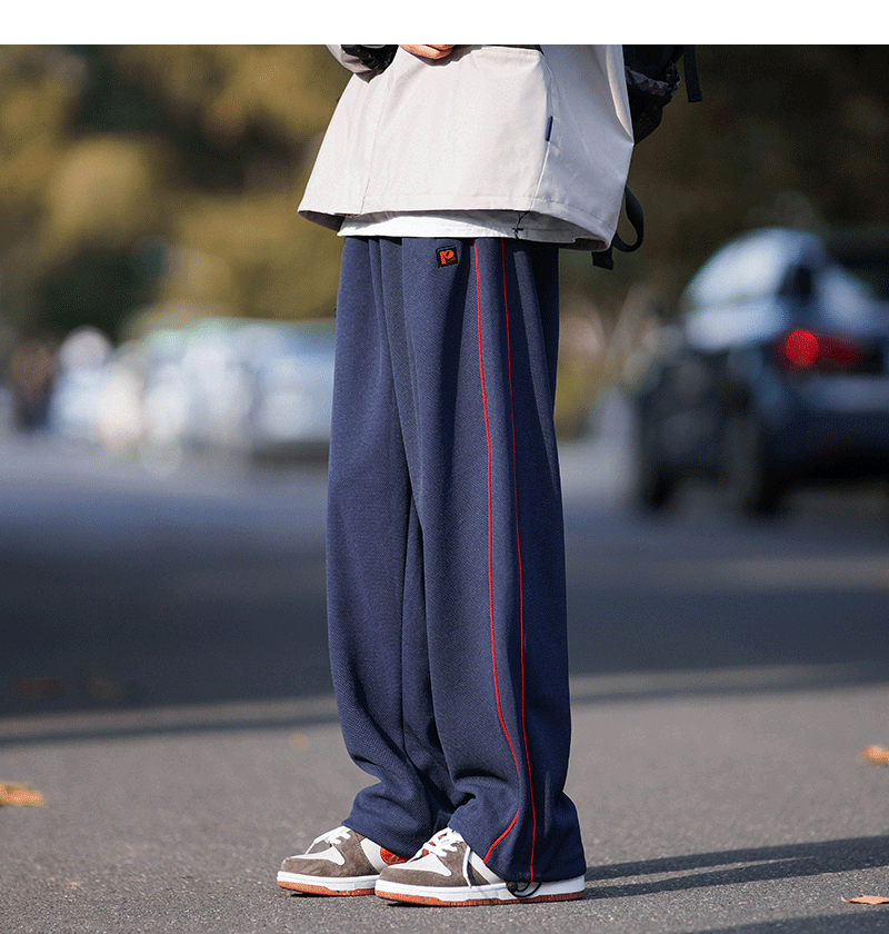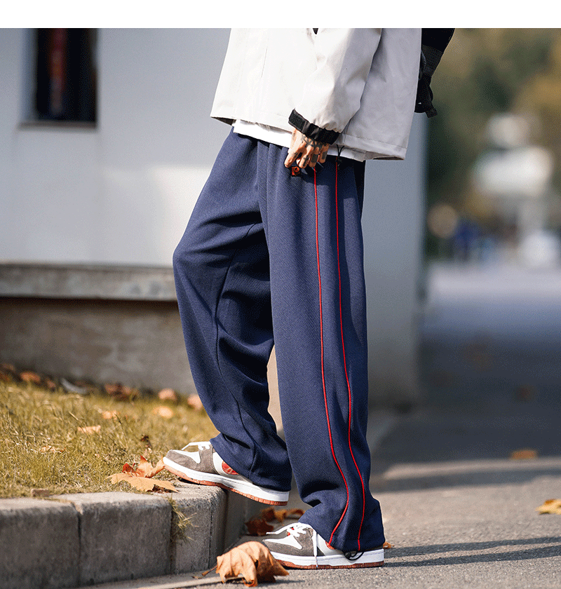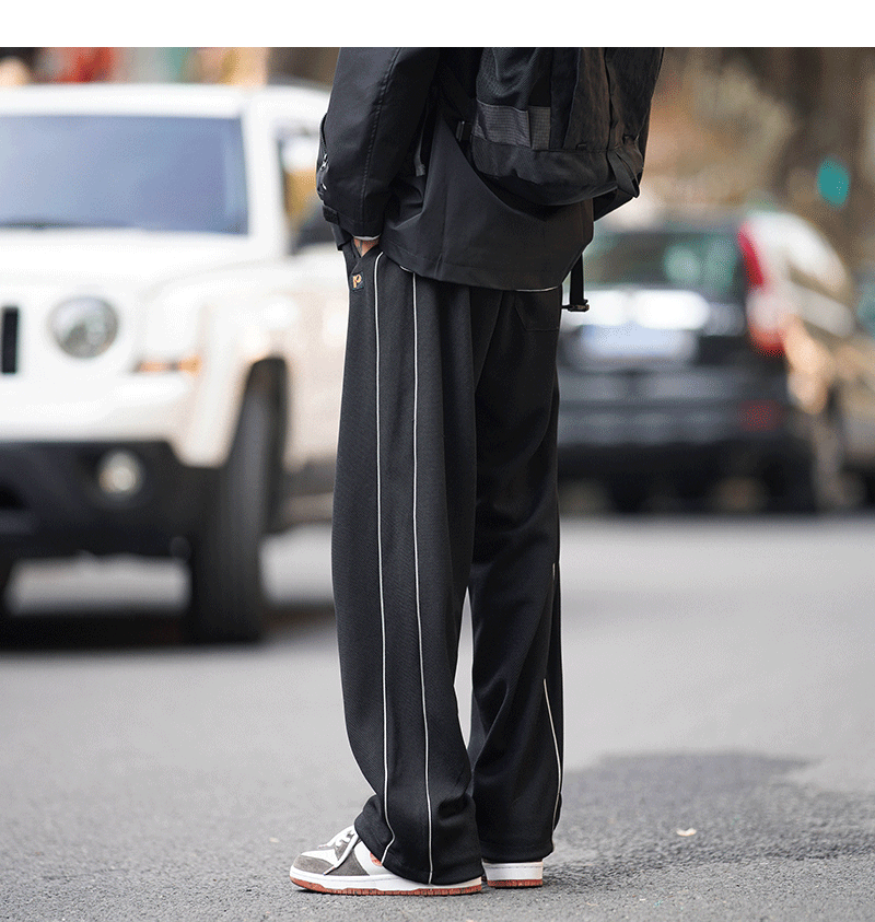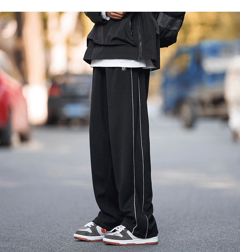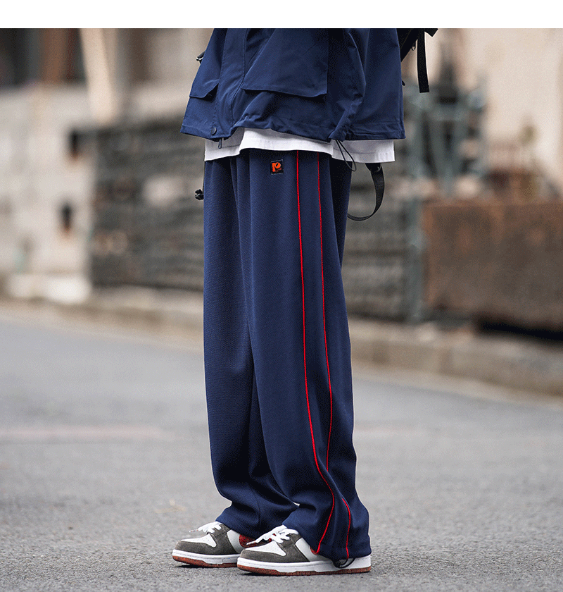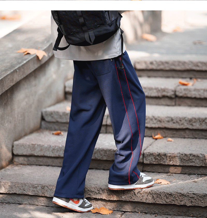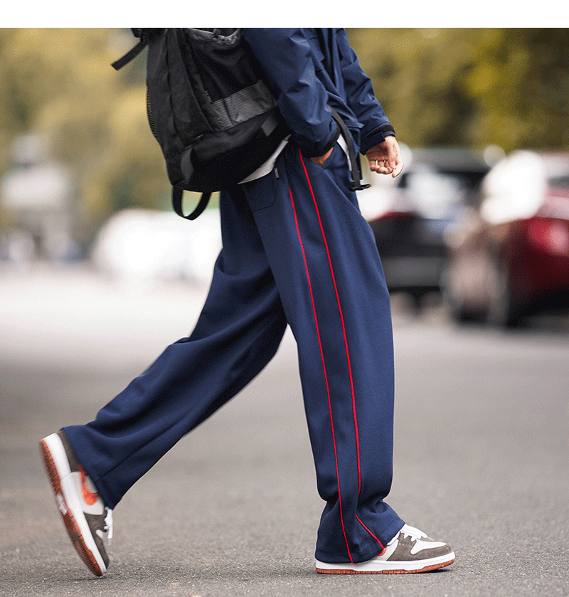 美式vibe風高街褲子男ins側邊條紋闊腿休閒褲oldschool設計感長褲