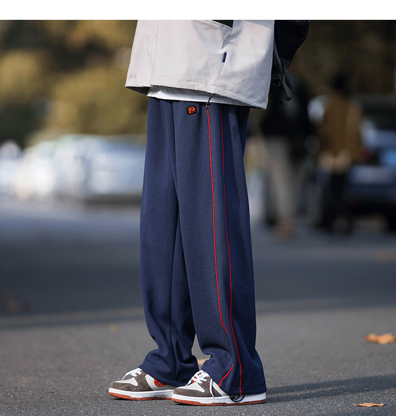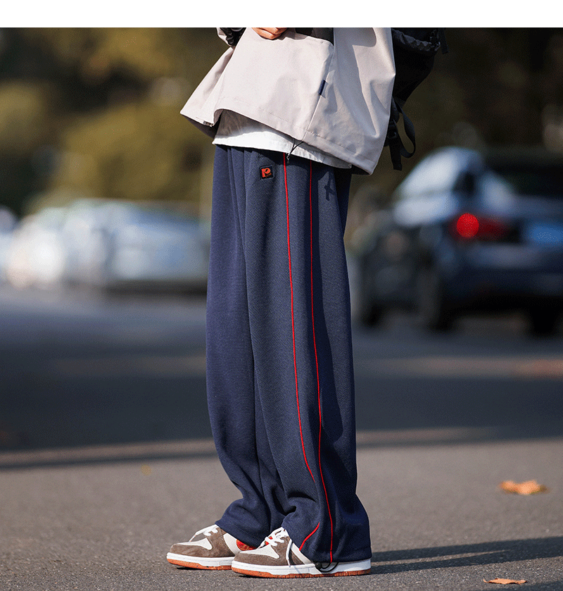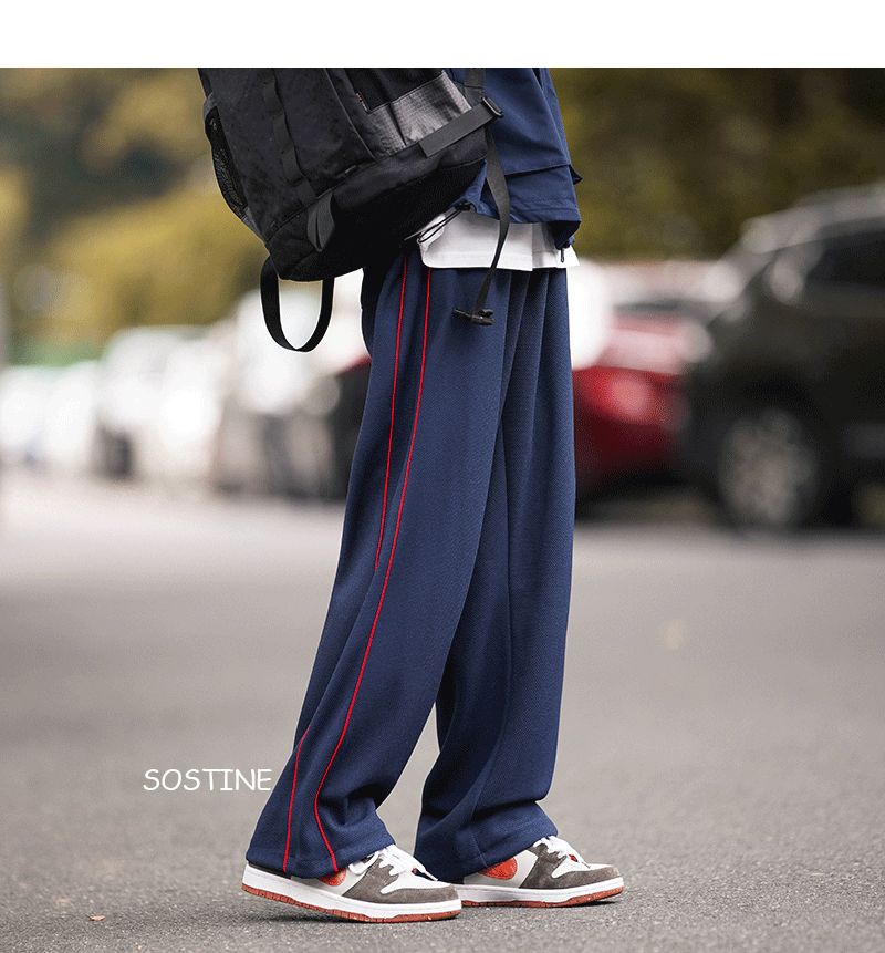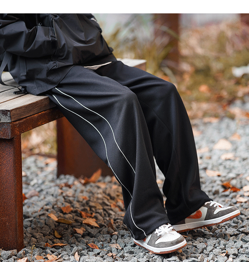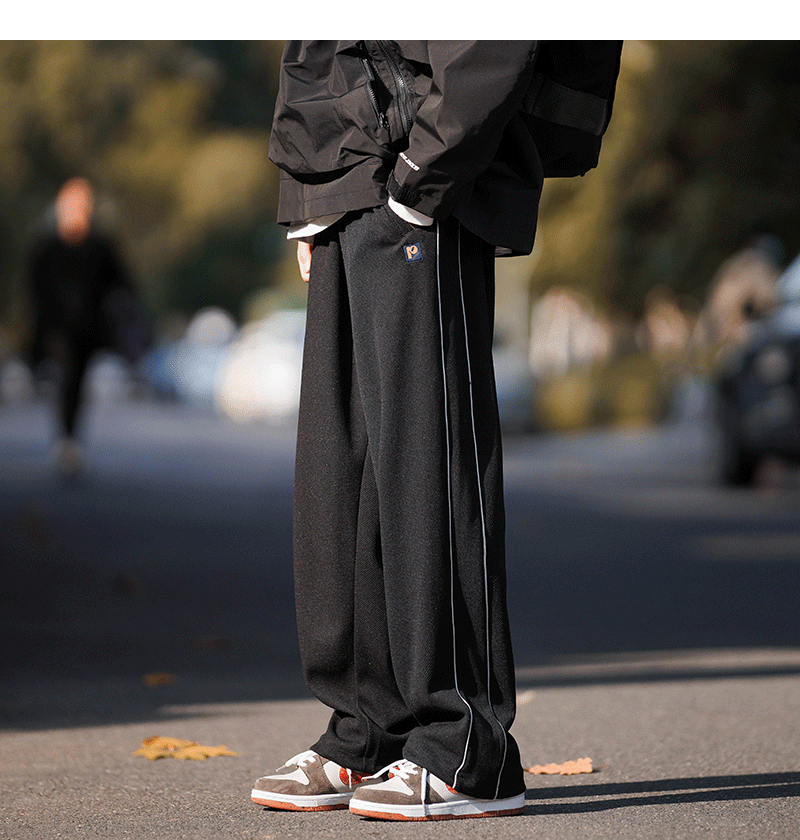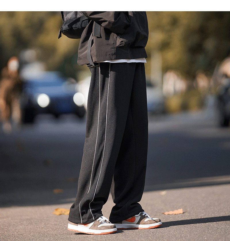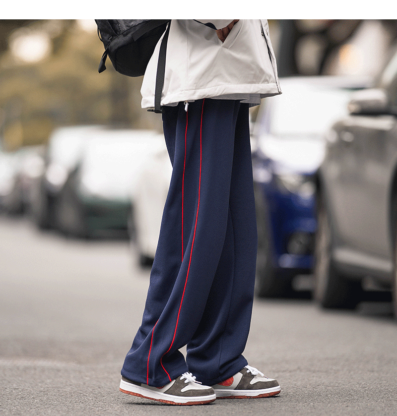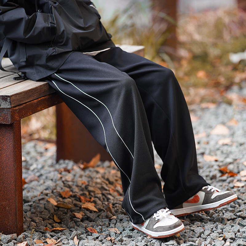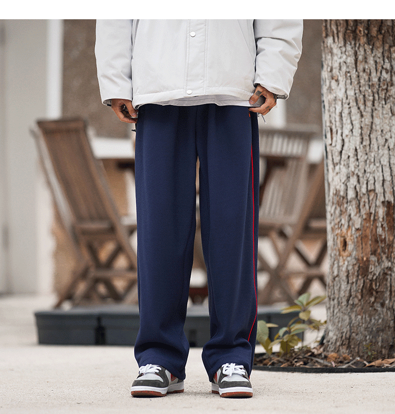 美式vibe風高街褲子男ins側邊條紋闊腿休閒褲oldschool設計感長褲