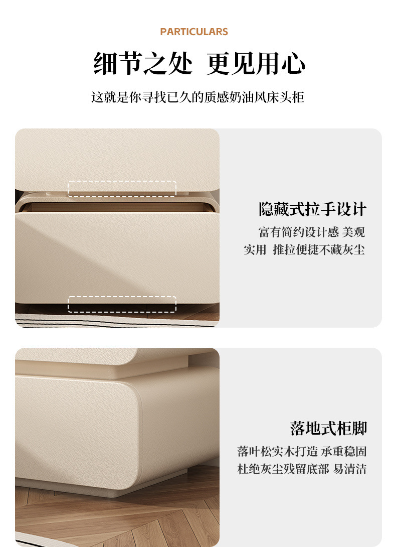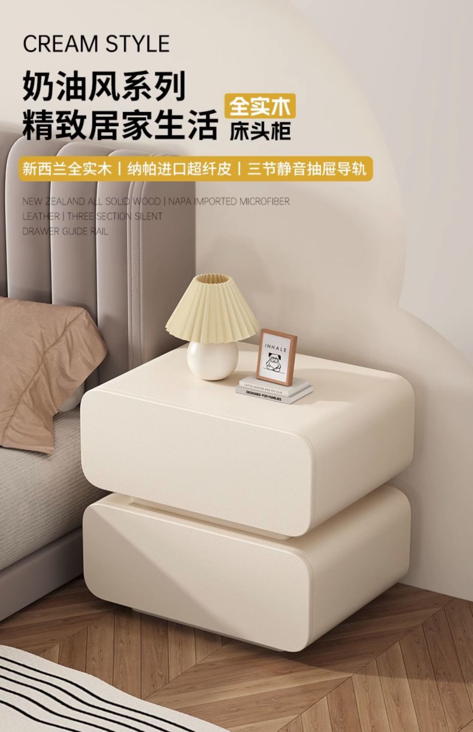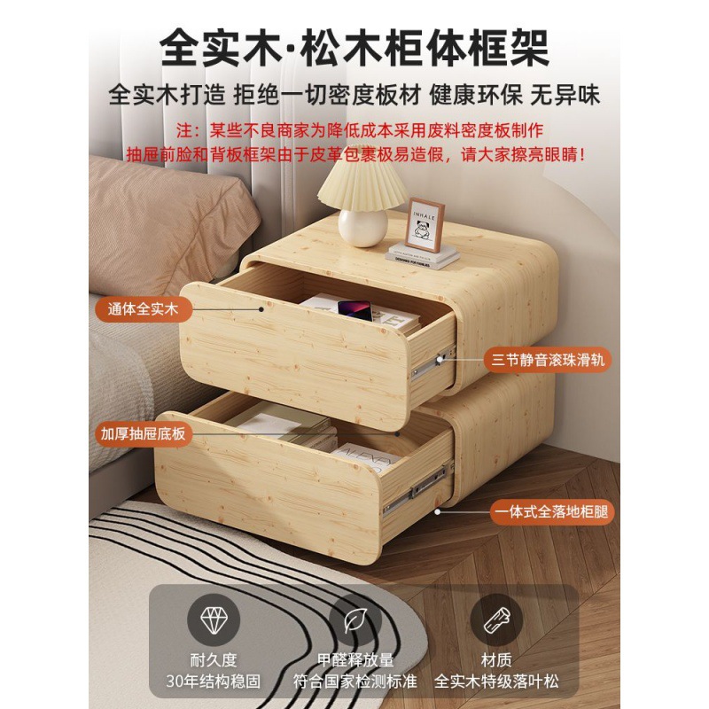 实木床头柜现代简约奶油风床边柜简约柜子小型卧室加宽床头收纳柜