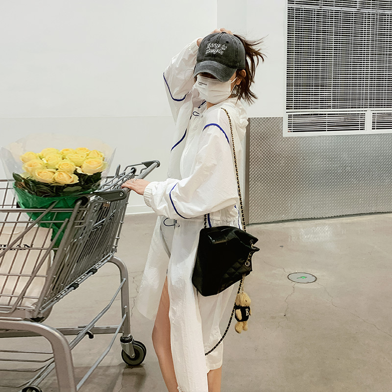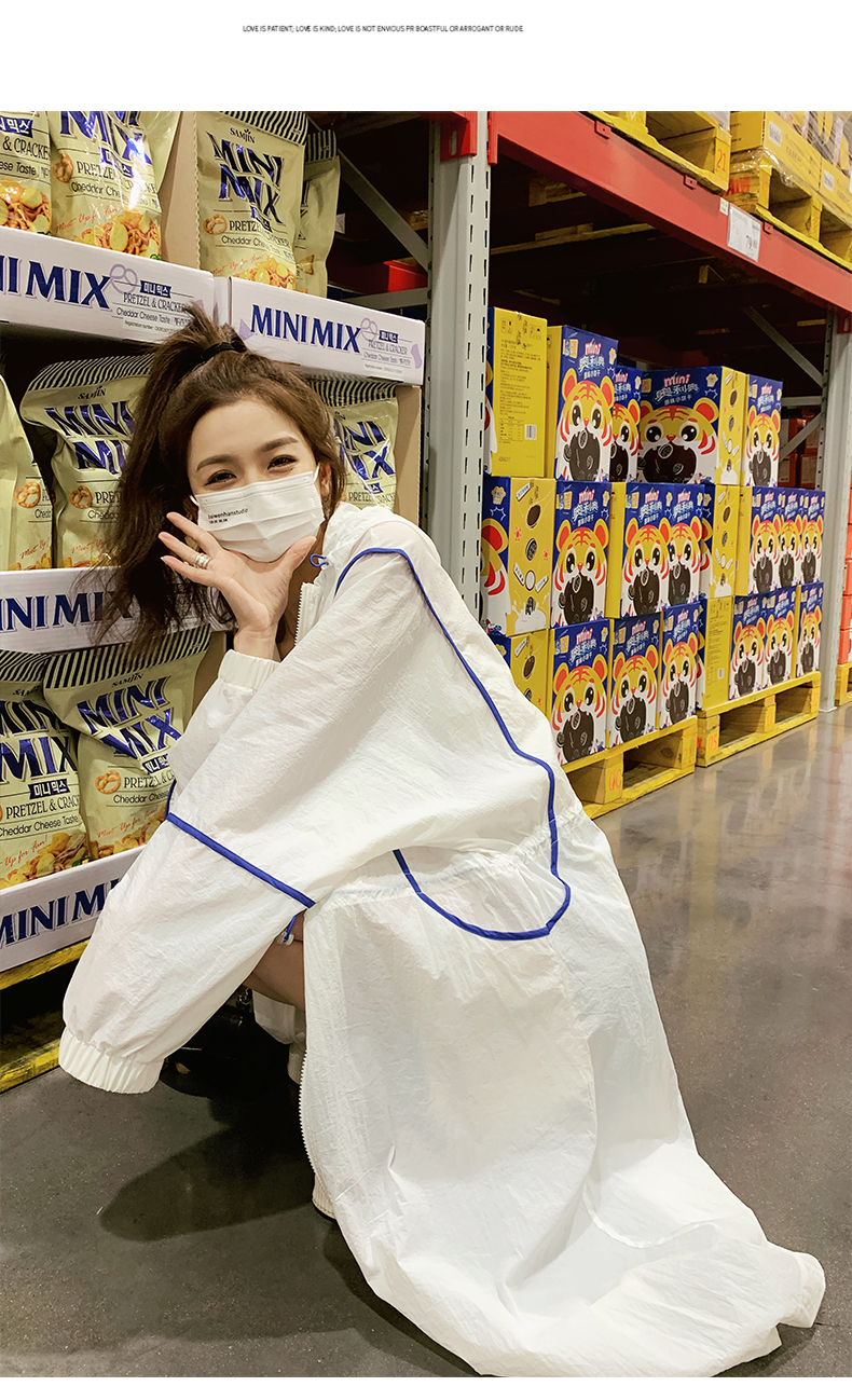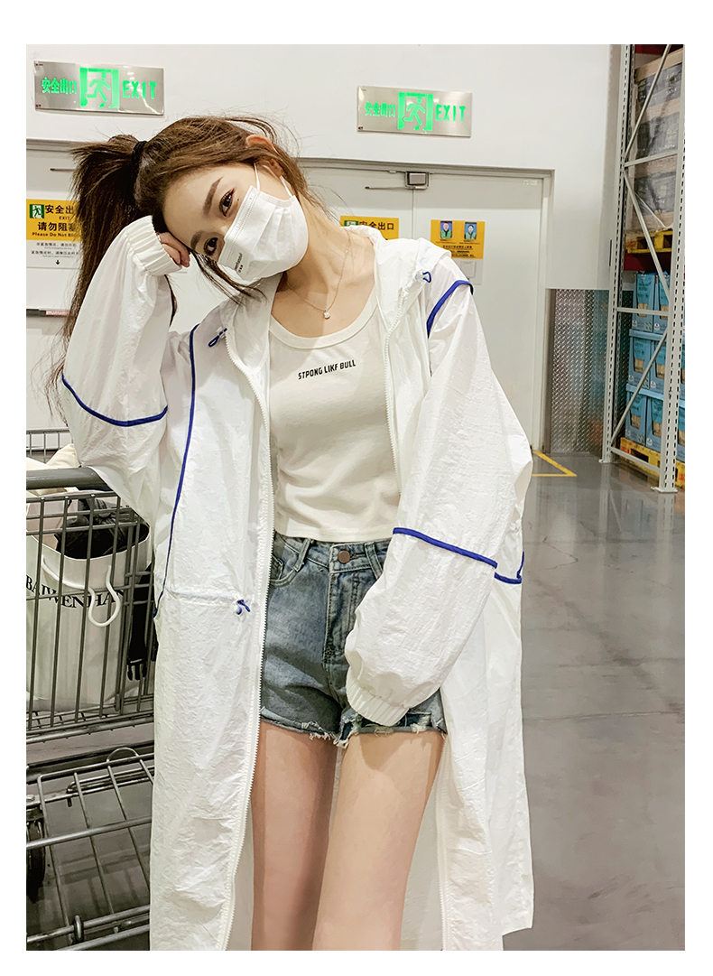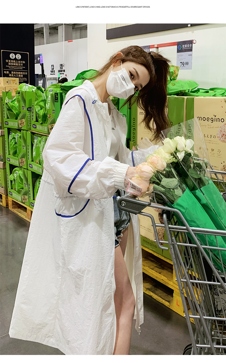 白色連帽防曬衣女長版2023新款寬鬆透氣法式開衫收腰外套薄款外搭