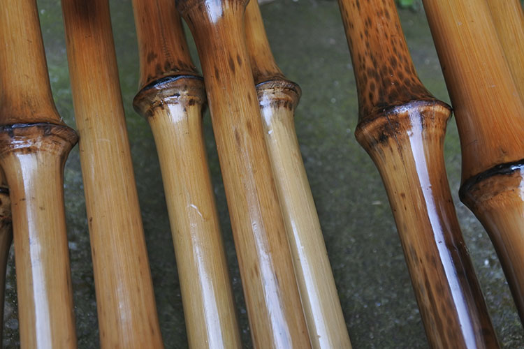 弯头因材施艺,以7字形居多,少量U字形。竹节短的制成7字形,竹节长的制成U字形。