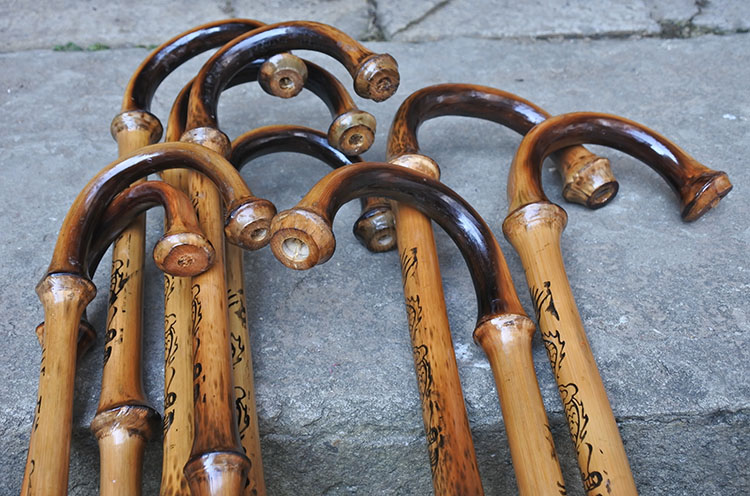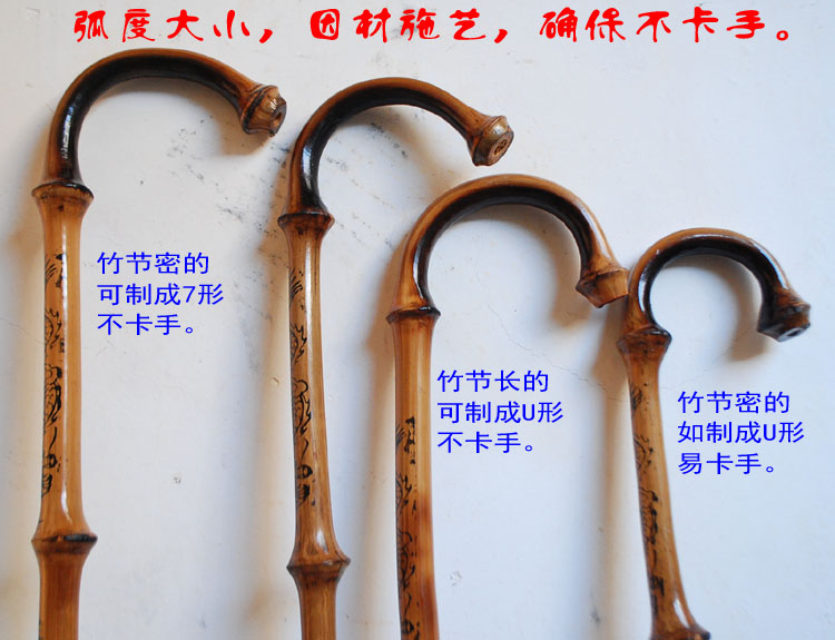 由筇竹烤弯,纯手工制作而成,携带很方便,特适合老年人居家日用及驴友登山涉行。