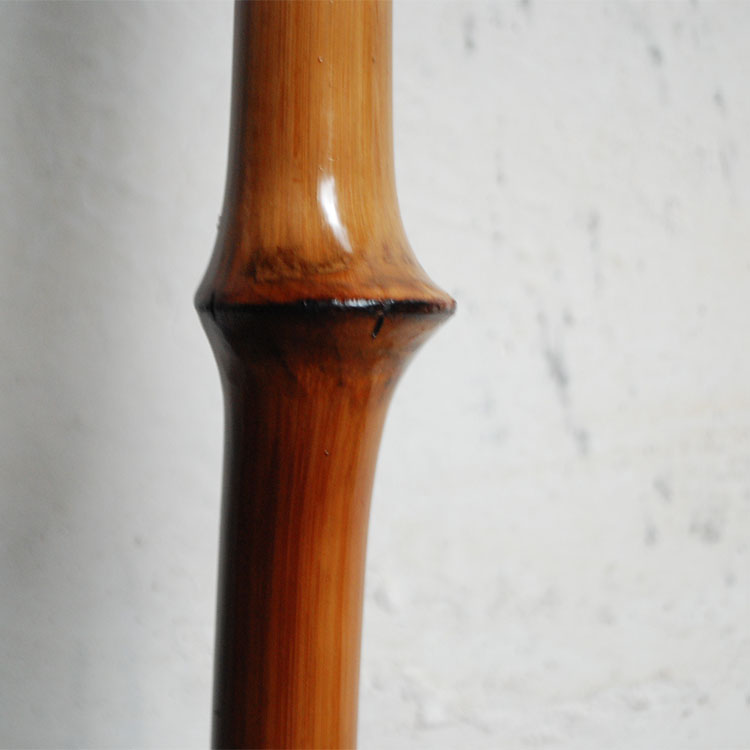 筇竹的竹环都是一侧非常突出,另一侧与竹竿较平的,本店手杖制作时,突出部分一律朝向弯弯这面,这样就尽可能减少了突点与外界的接触。
