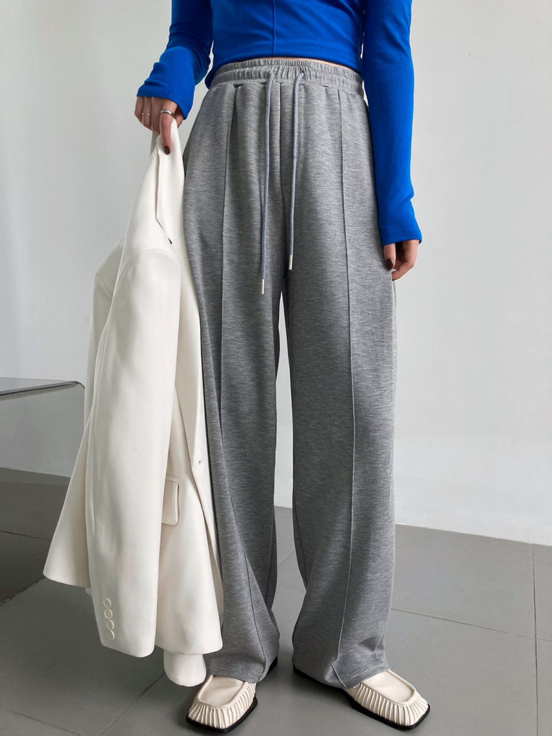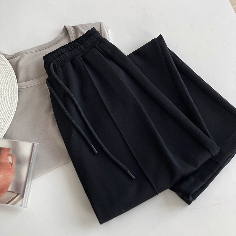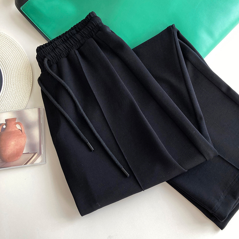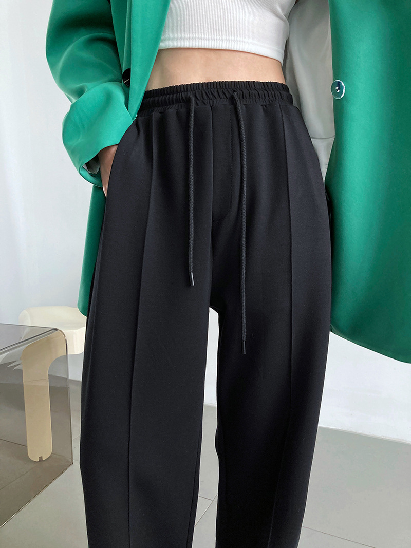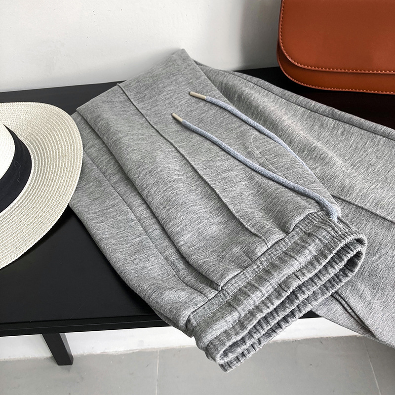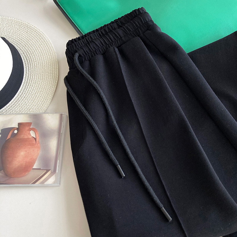 鹿西 软糯空气层运动裤长裤女宽松休闲松紧腰裤子垂感阔腿裤1980