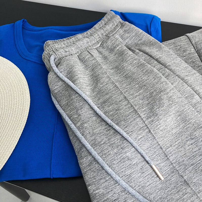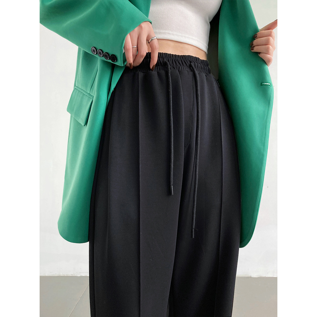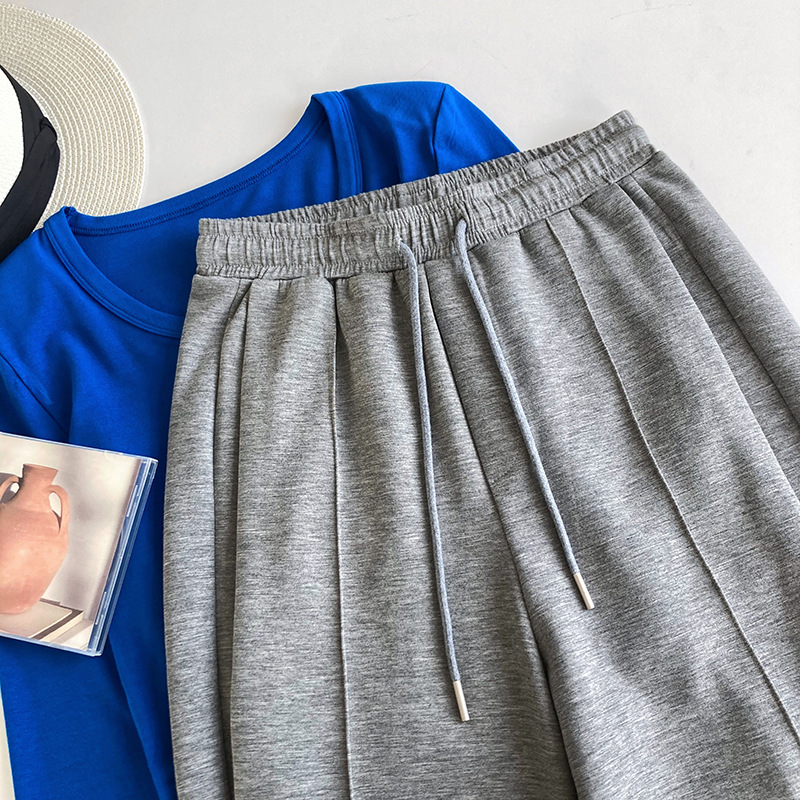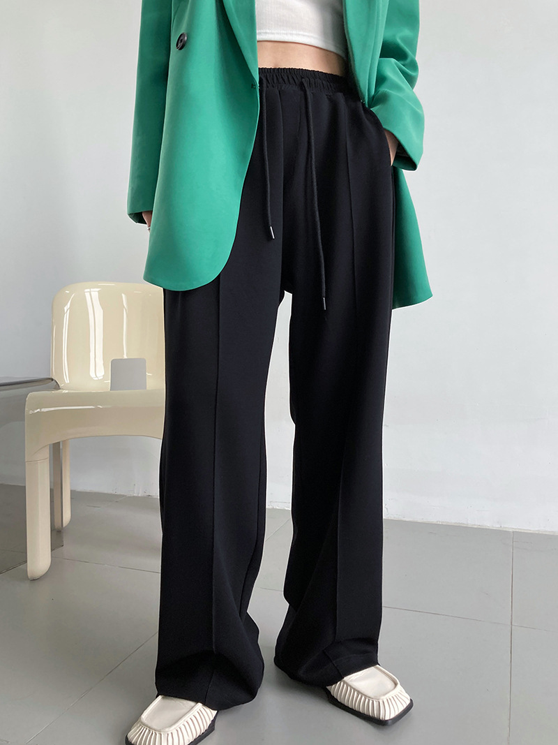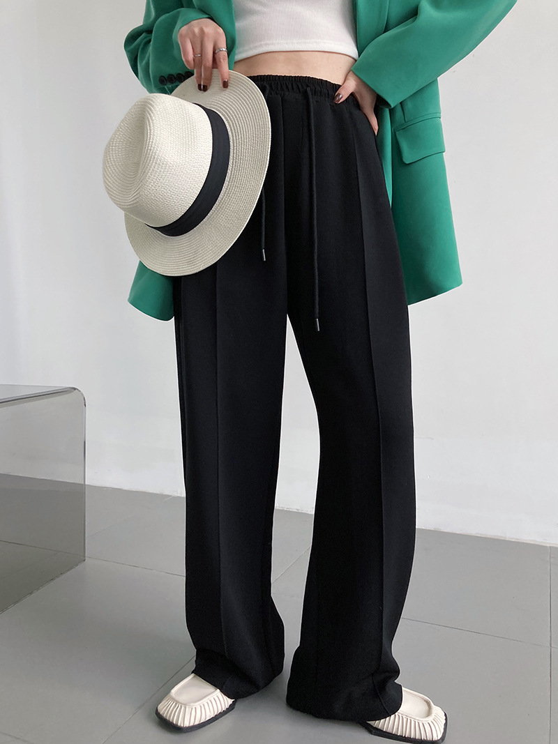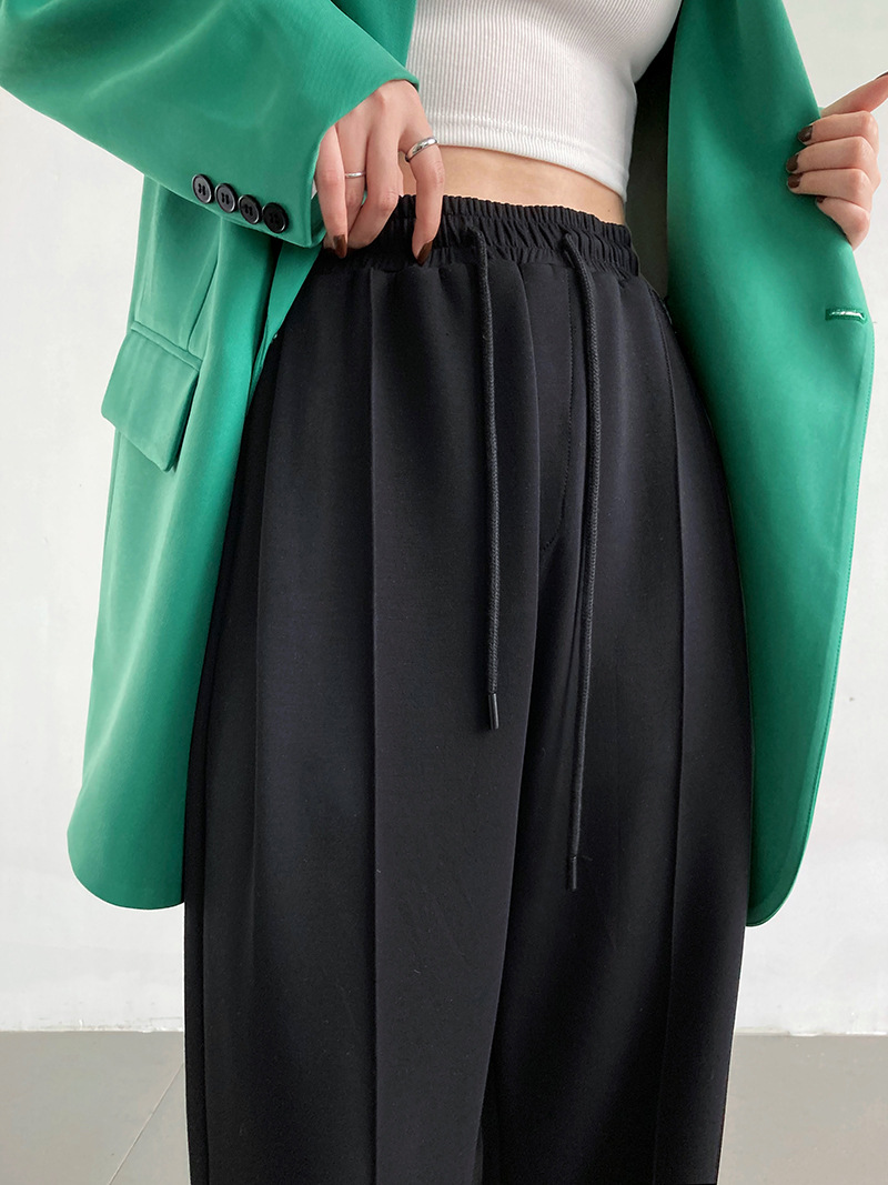 鹿西 软糯空气层运动裤长裤女宽松休闲松紧腰裤子垂感阔腿裤1980