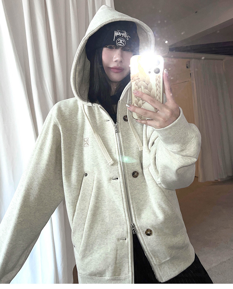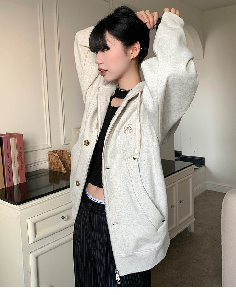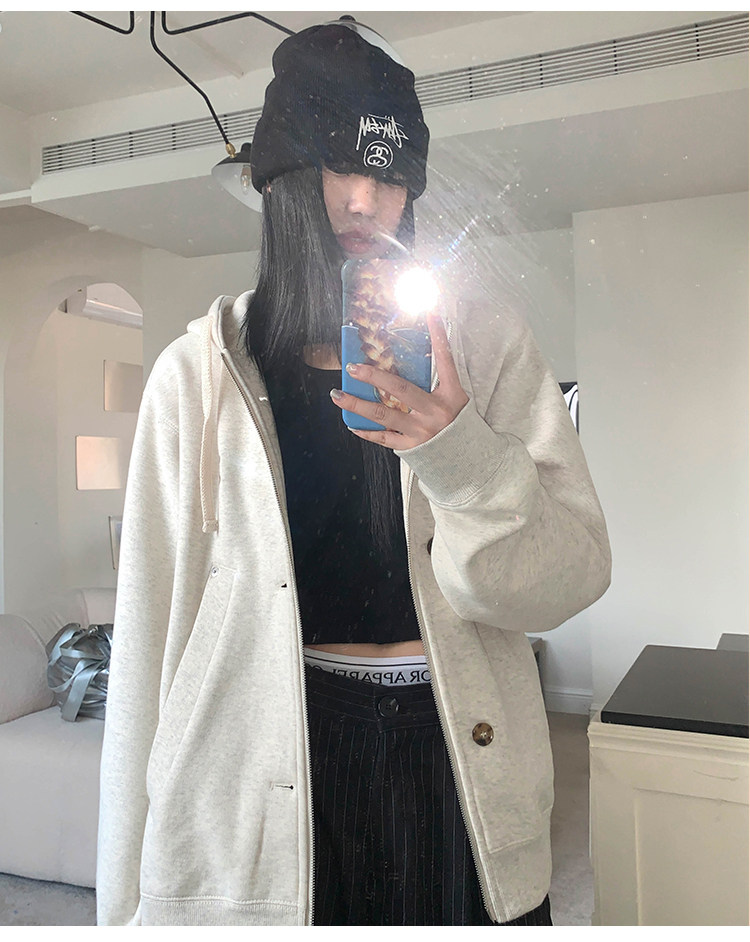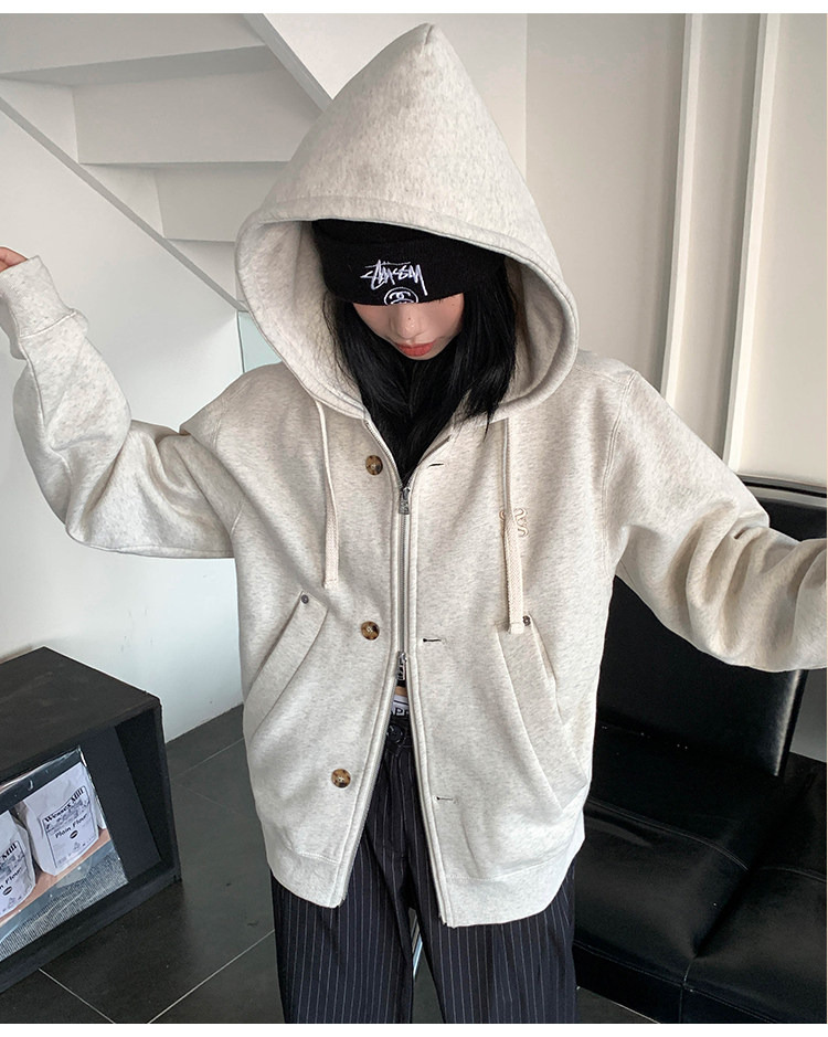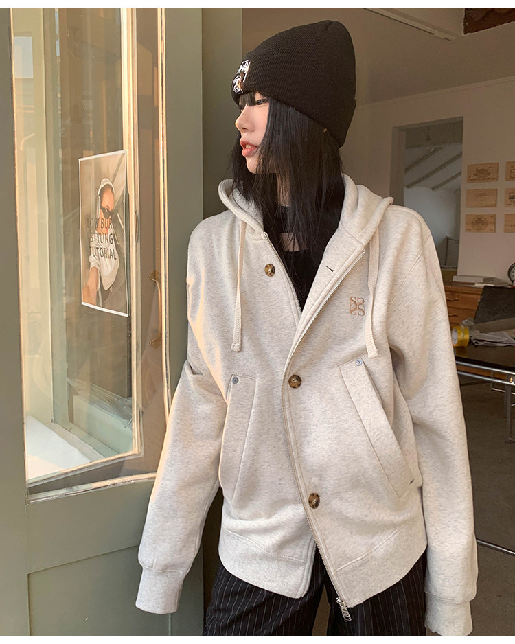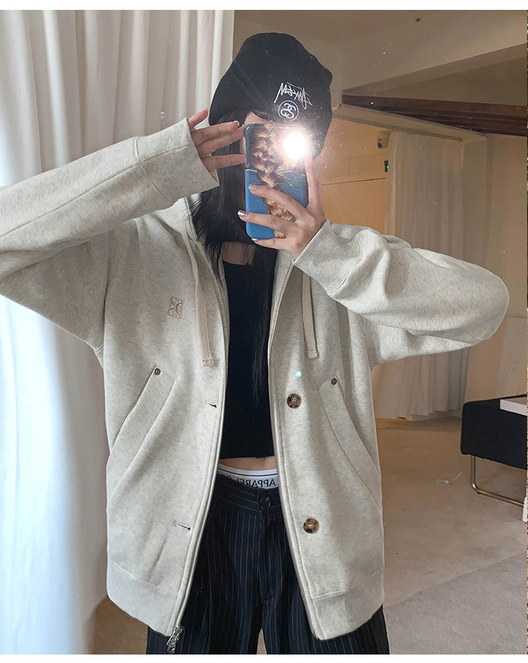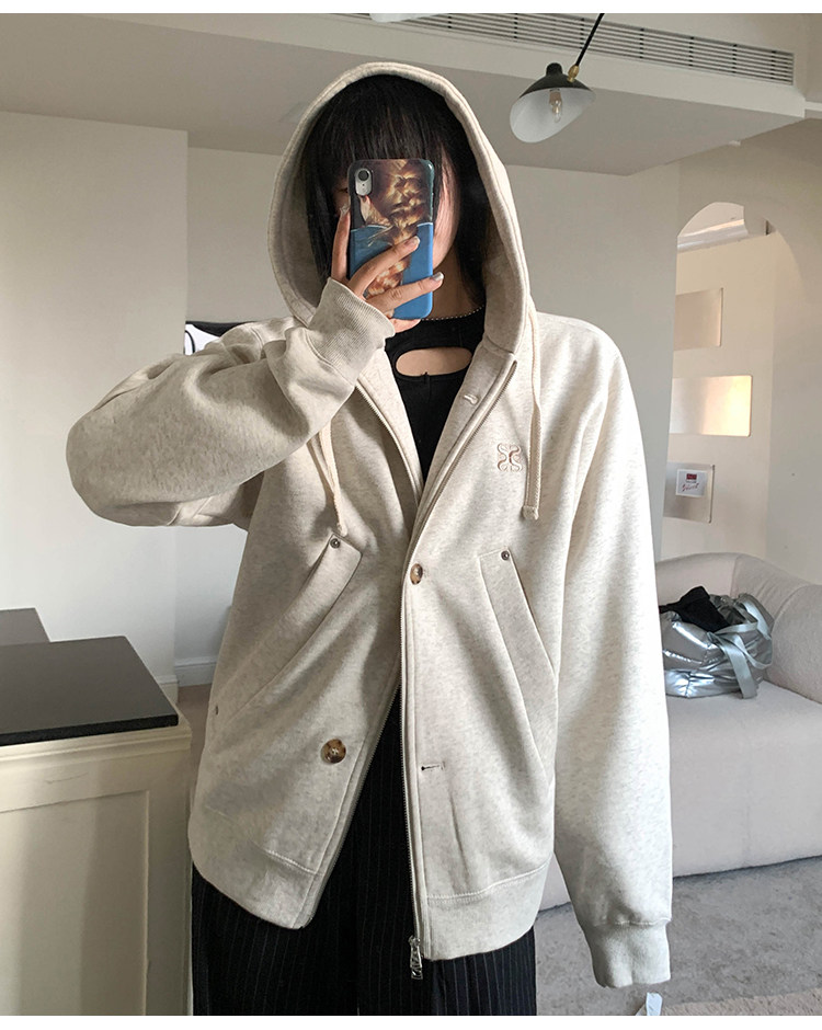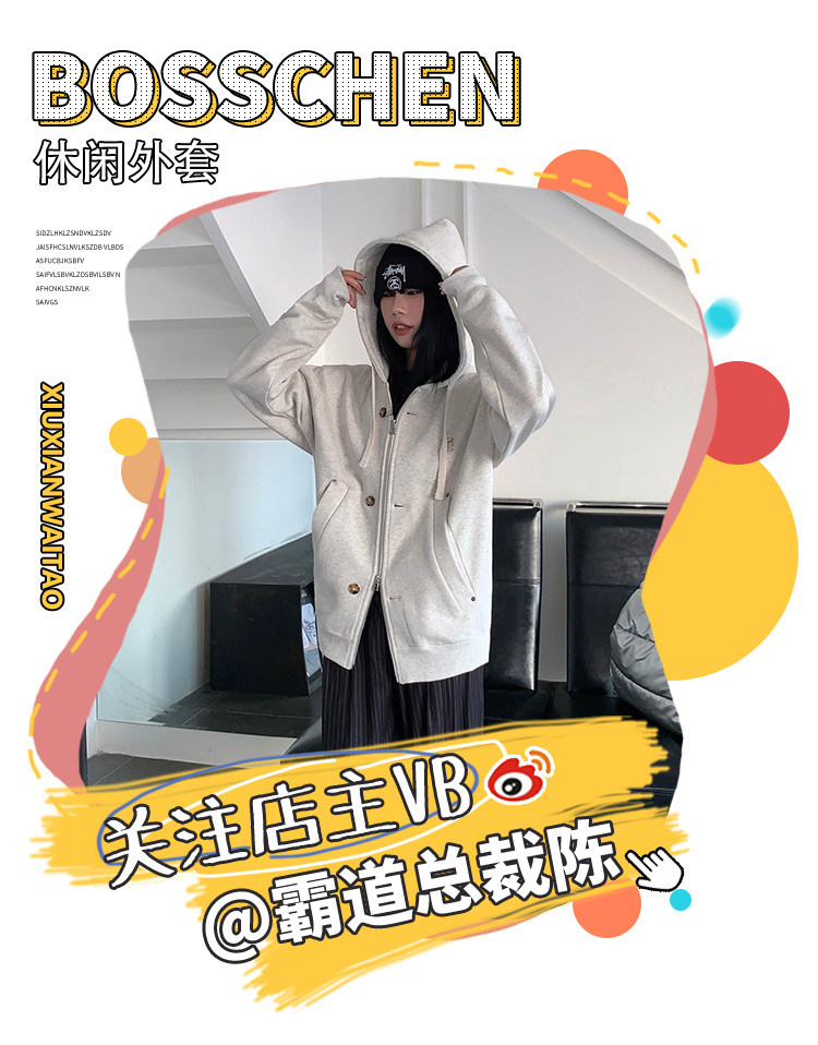 總裁家【重磅春裝】日系慵懶風衛衣女鈕釦拉鍊小眾設計感外套女