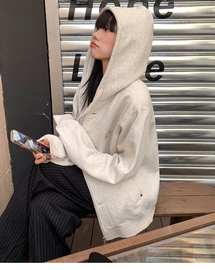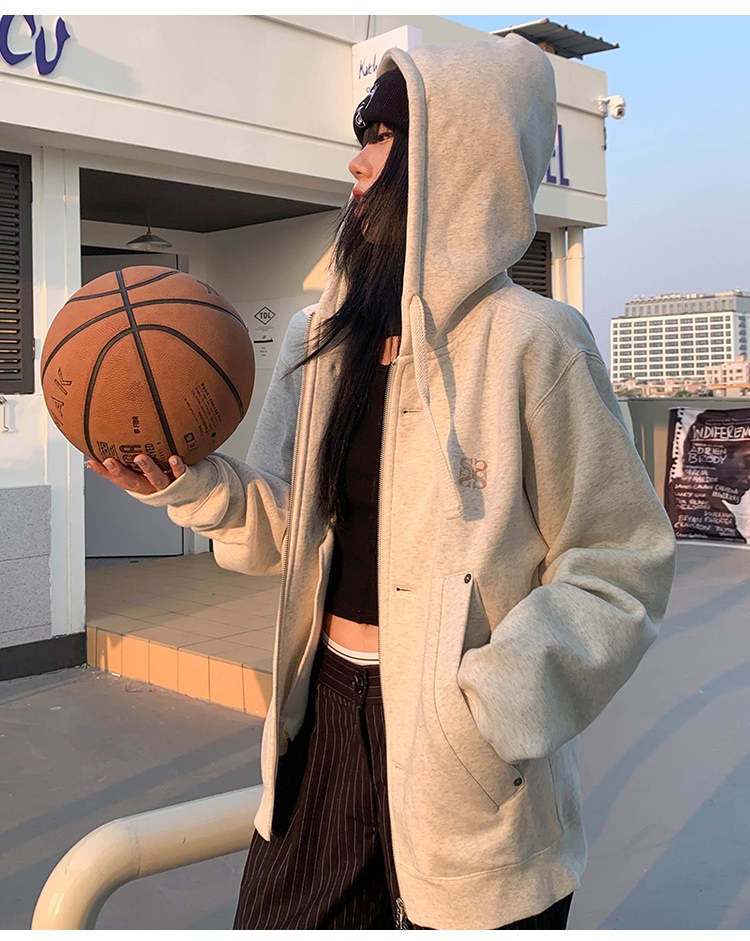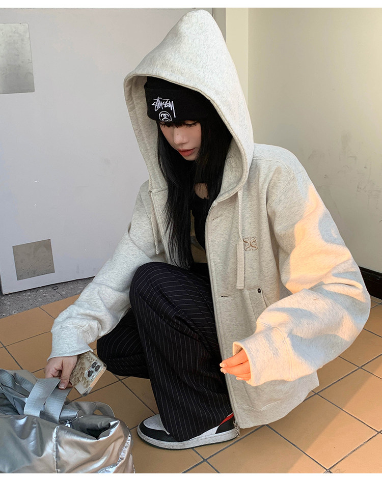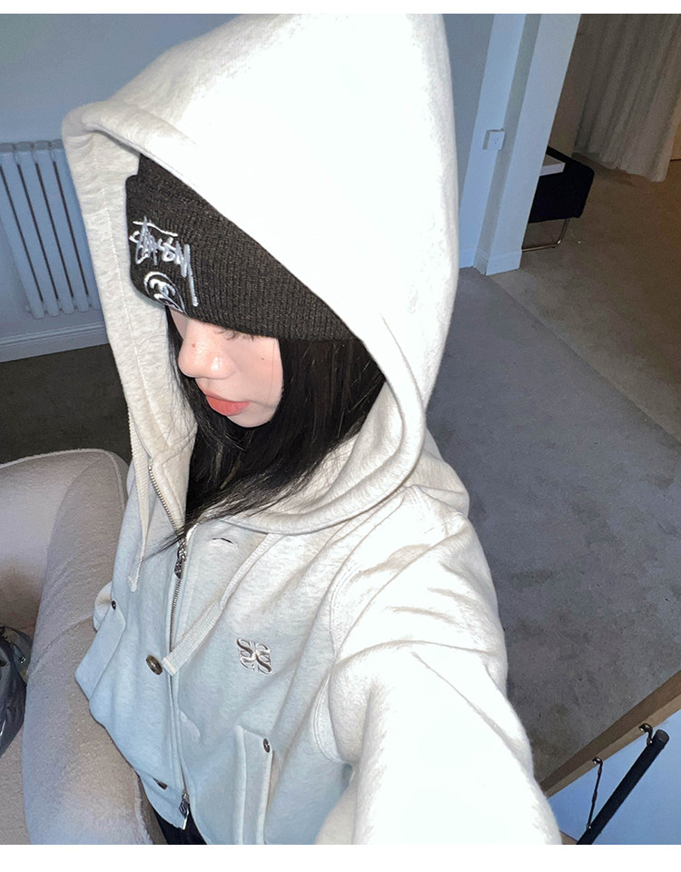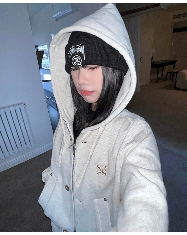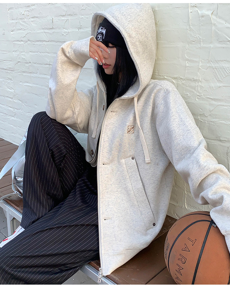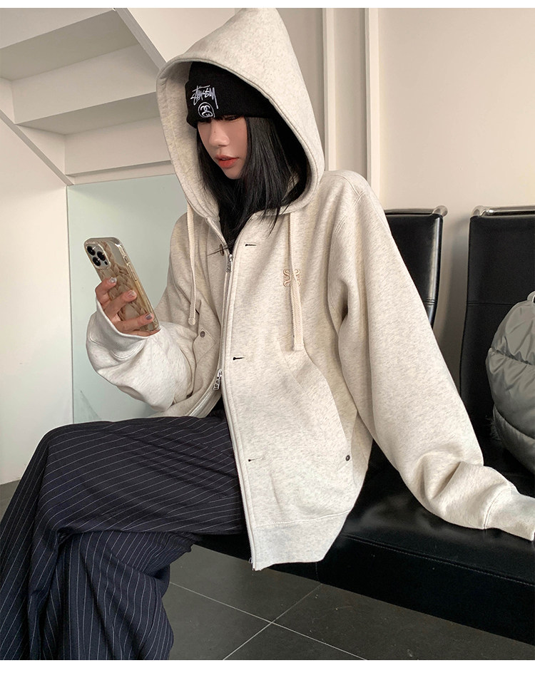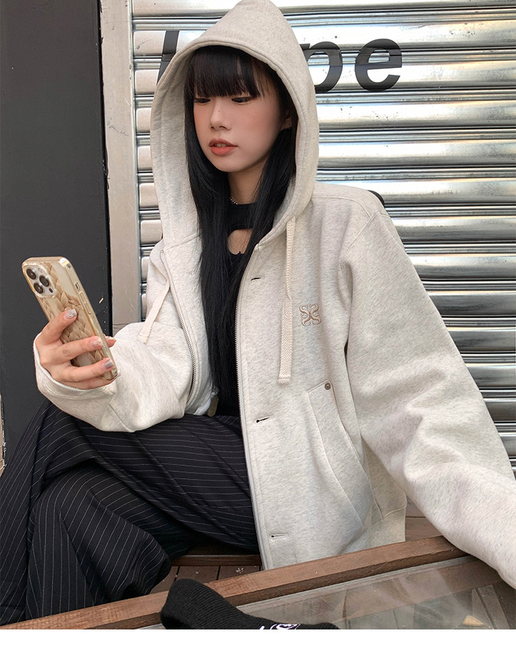 總裁家【重磅春裝】日系慵懶風衛衣女鈕釦拉鍊小眾設計感外套女