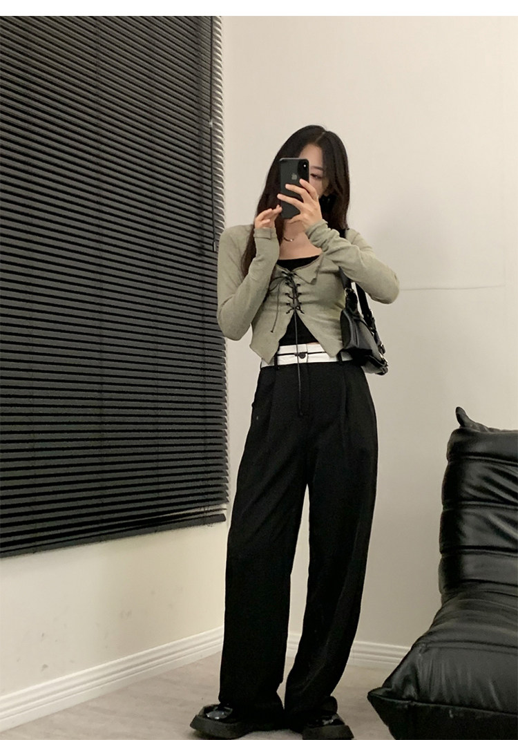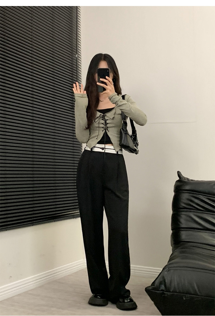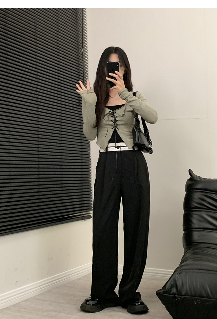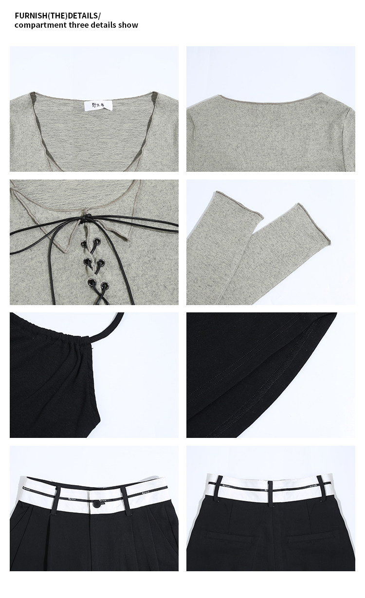 顏色分類 兩件套(小衫+背心),黑色(高腰休閒褲)