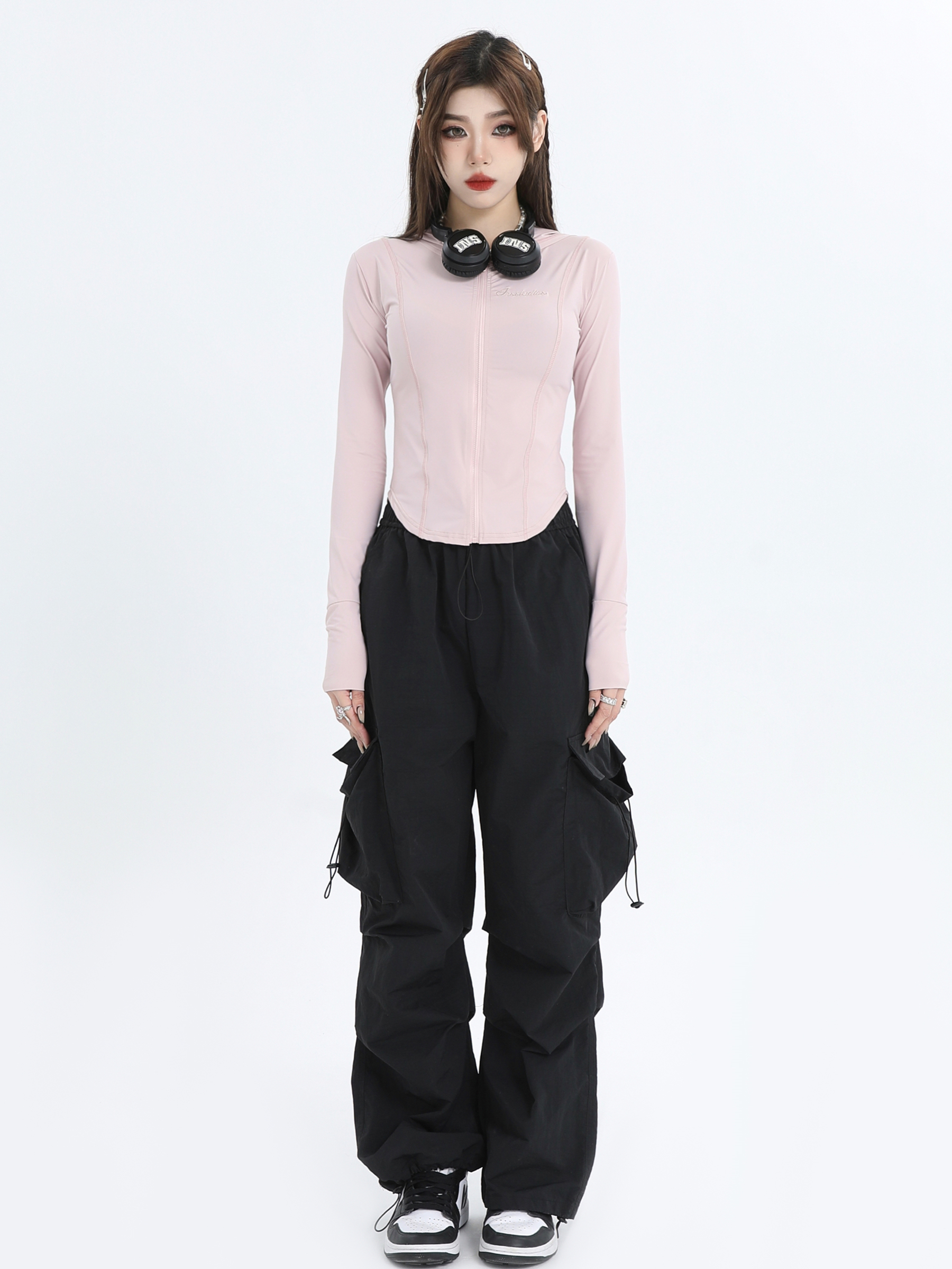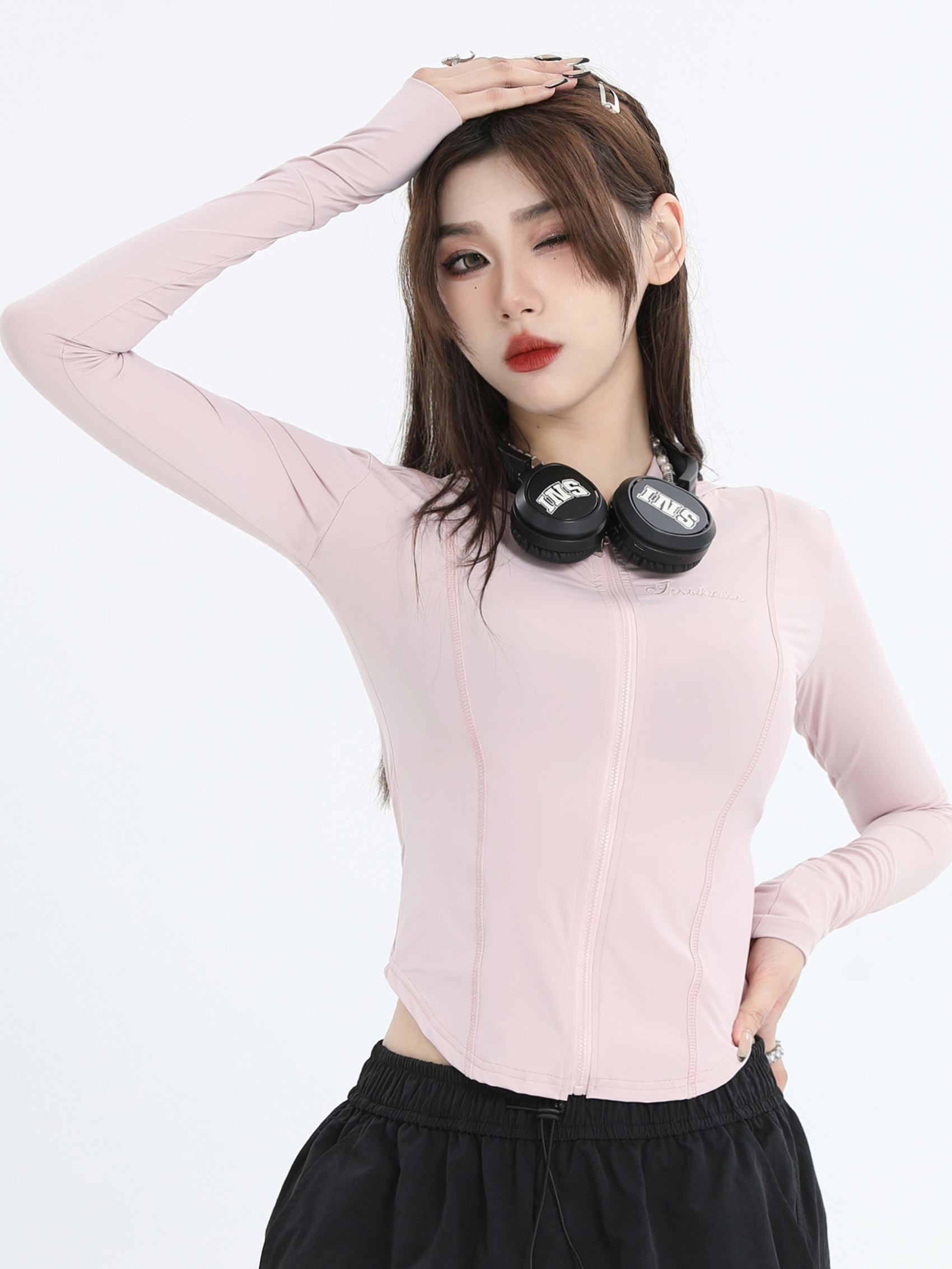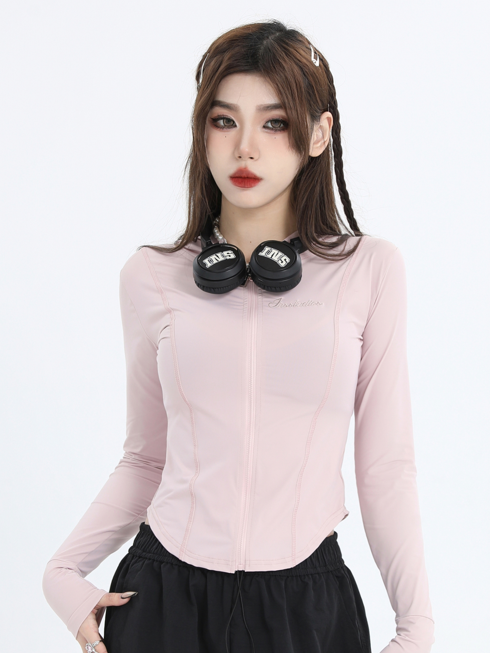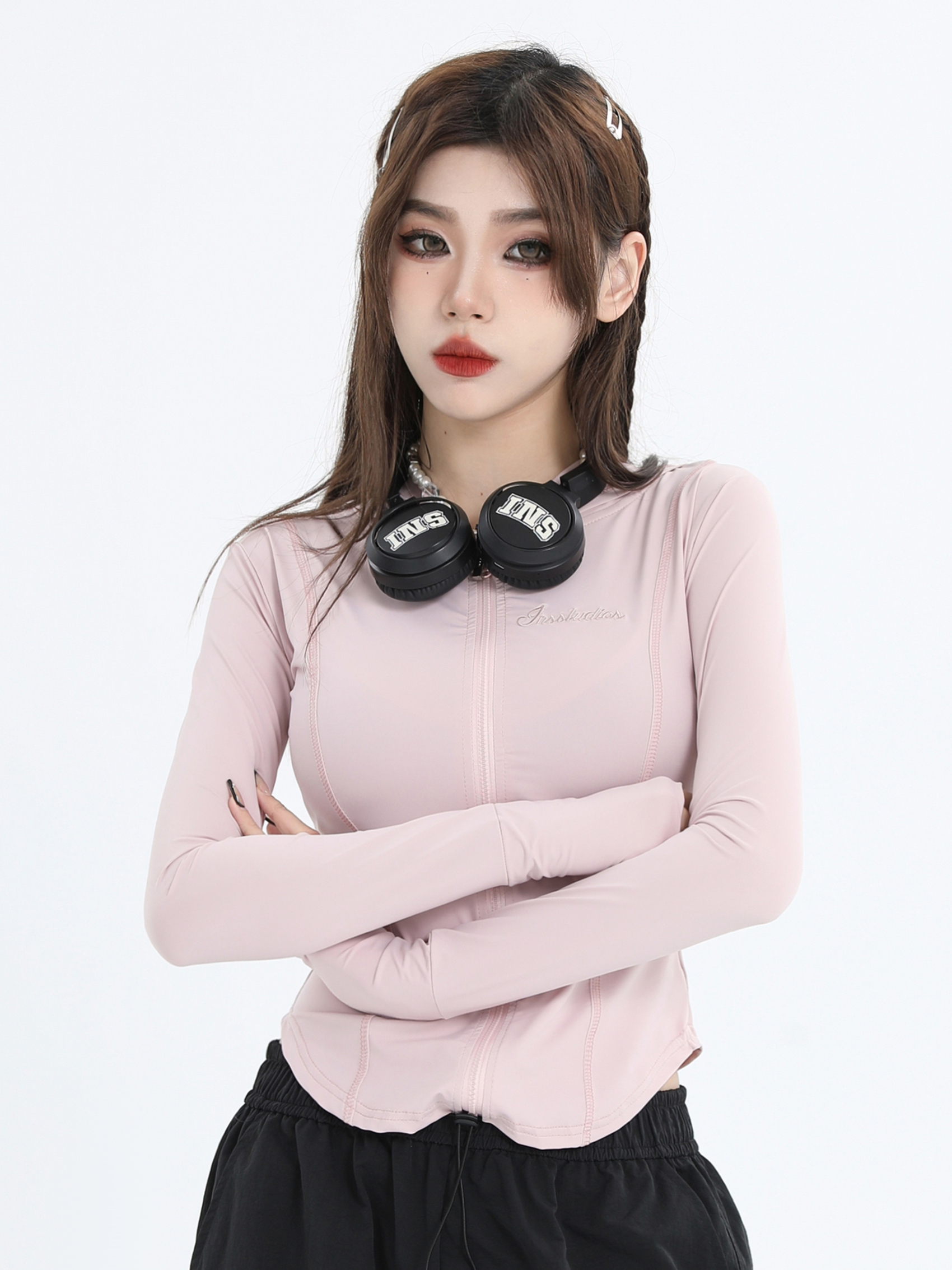 INSstudios 國潮牌情侶美式小LOGO粉色緊身防曬服戶外冰絲防曬衣
