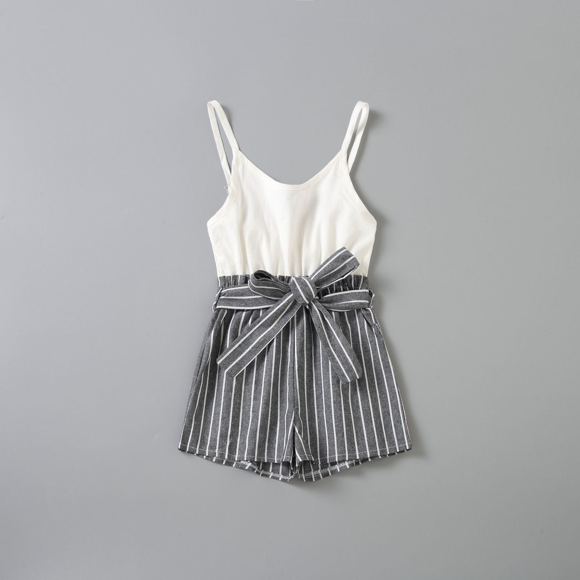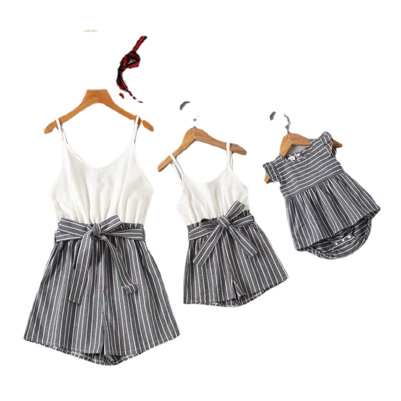 2022ebay新款亚马逊 wish欧美女装亲子装条纹吊带连体裤