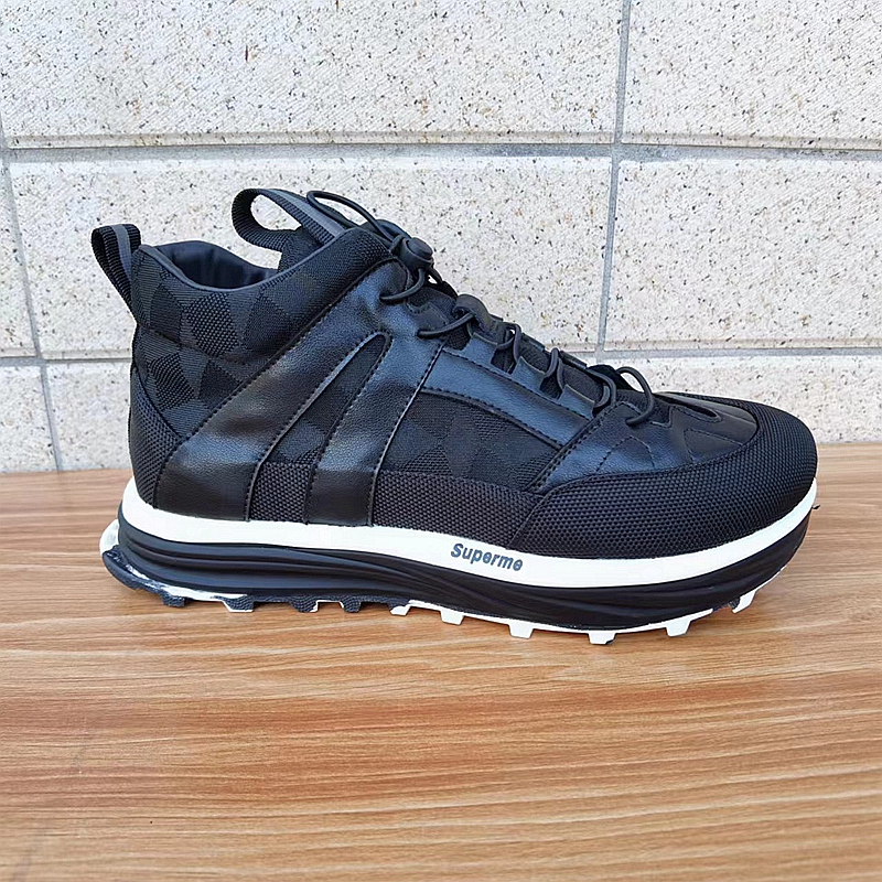 稀缺外貿休閒鞋男真皮厚底春季日常時尚百搭戶外運動中筒男鞋黑色