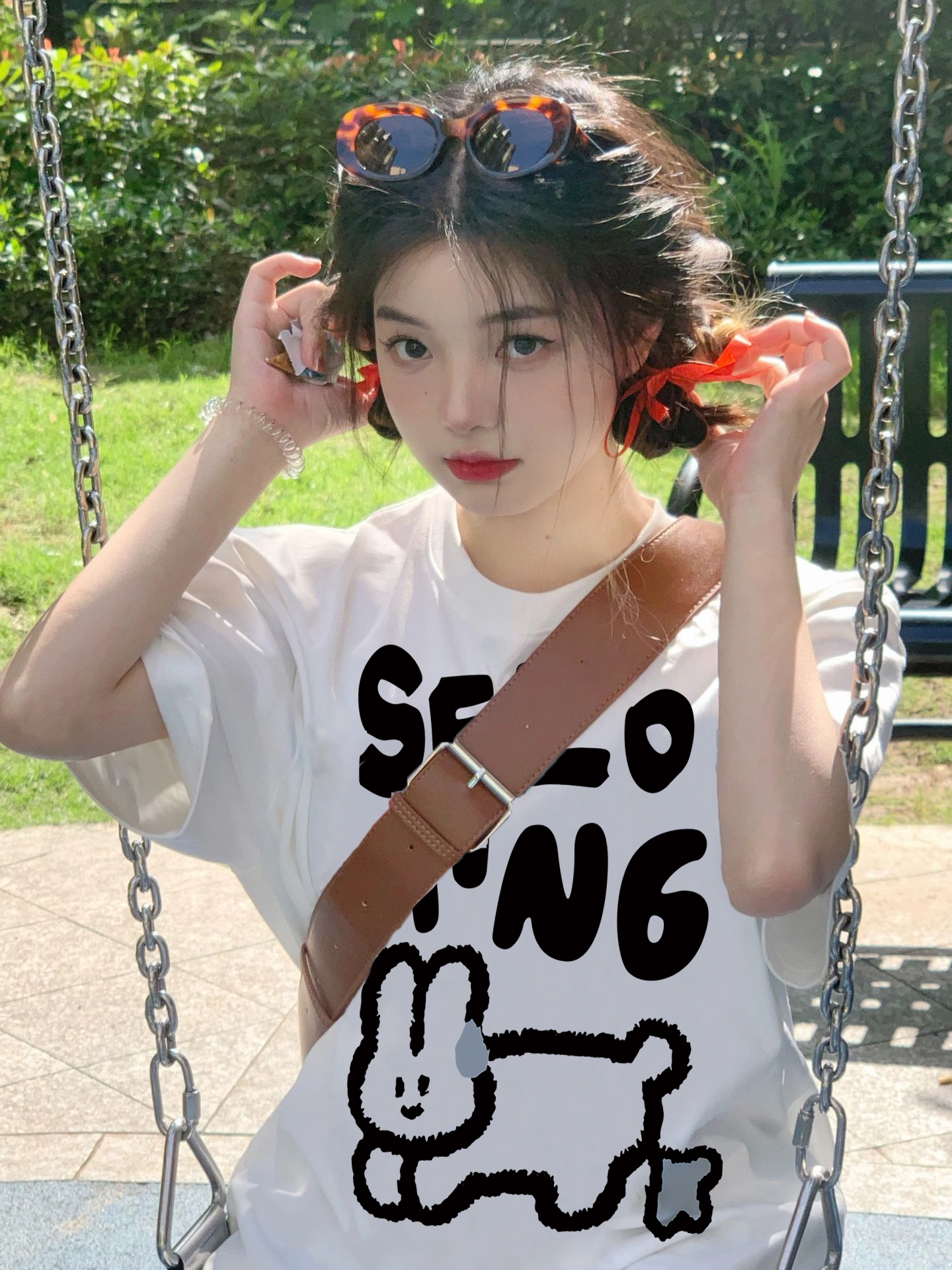 白色正肩T恤短袖女2023新款夏季設計感小眾寬鬆美式復古上衣半袖