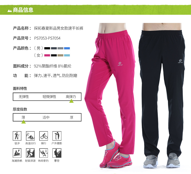 探拓戶外速乾褲男女夏季薄款運動褲徒步登山快乾長褲透氣彈力寬鬆