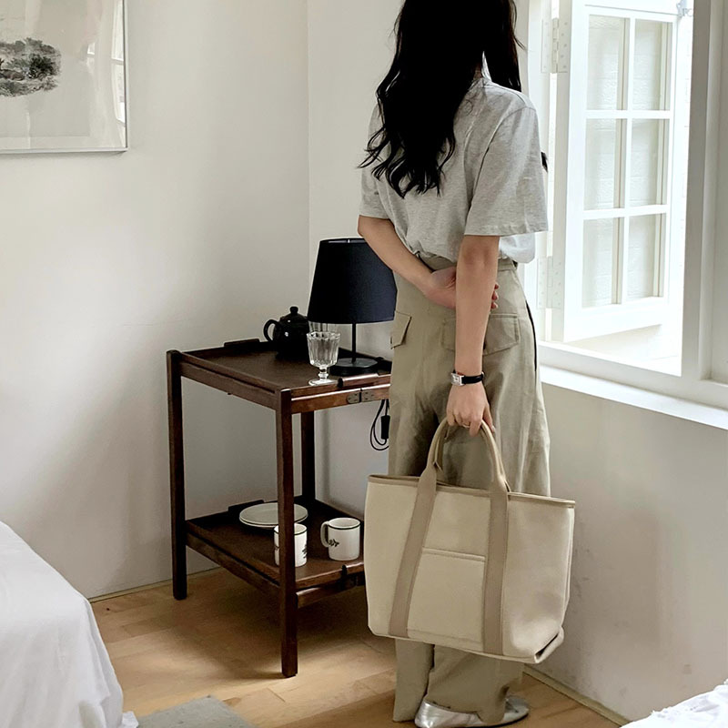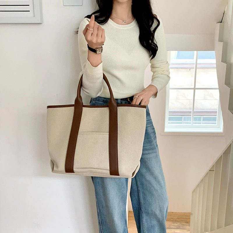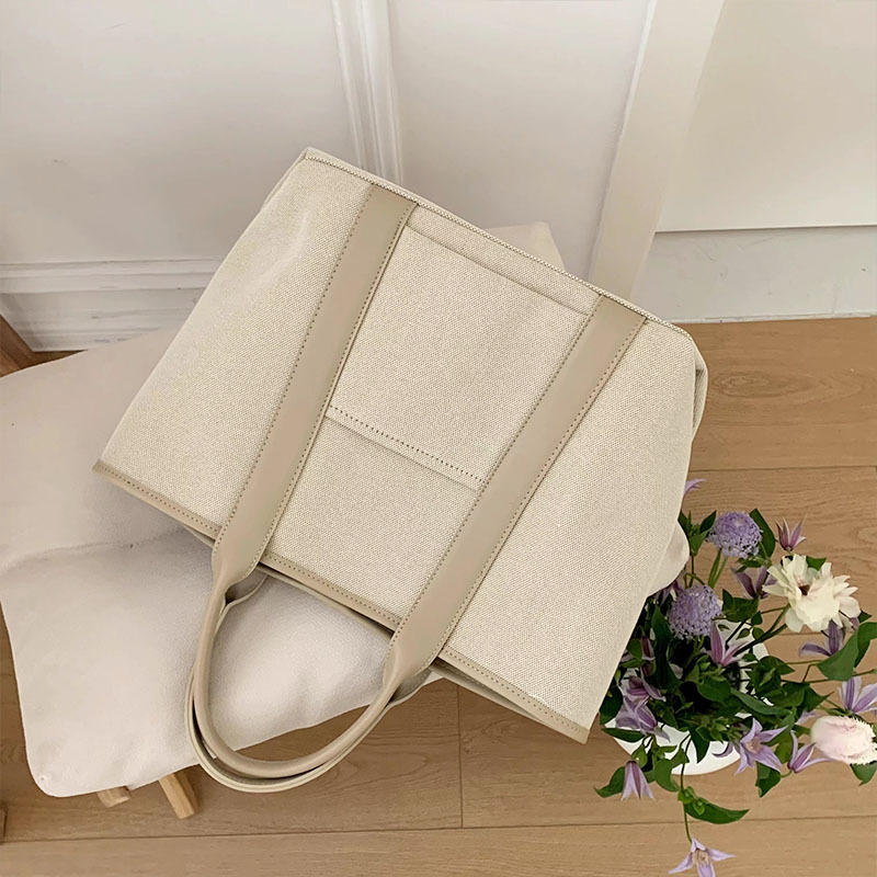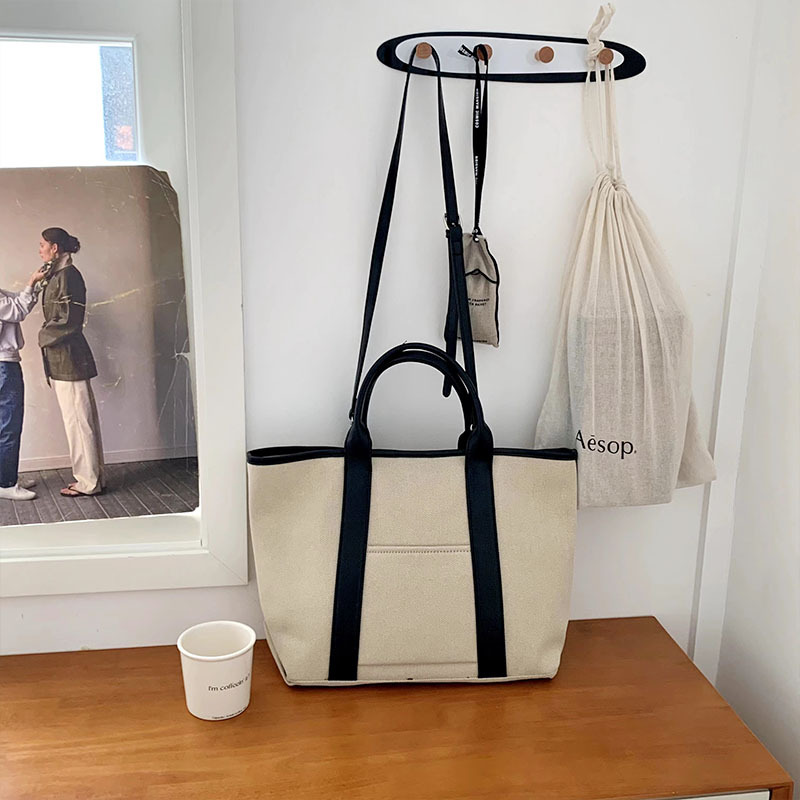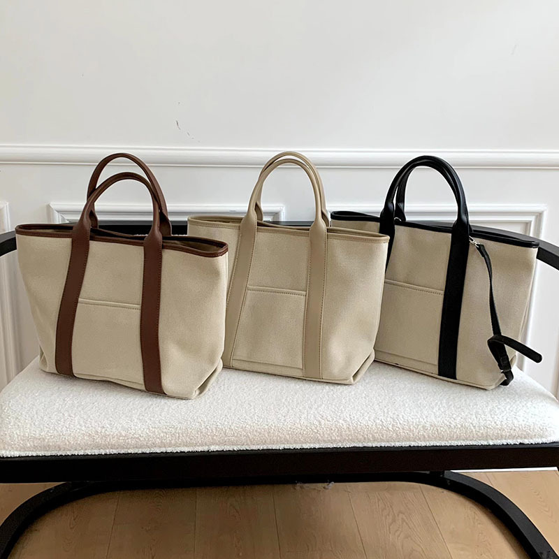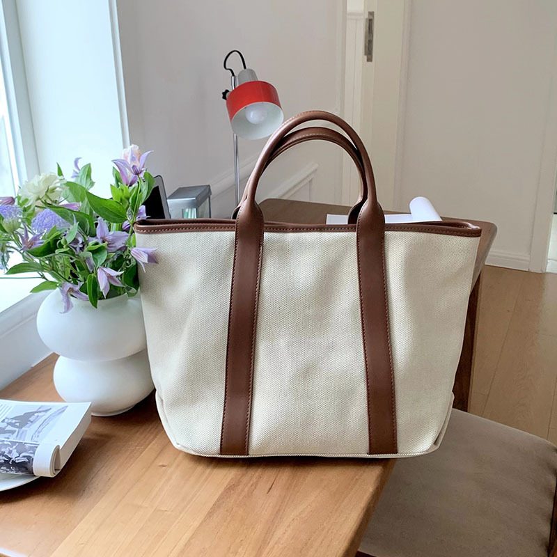百搭休闲帆布手提托特包包女2024新款韩版超大容量单肩斜挎水桶包