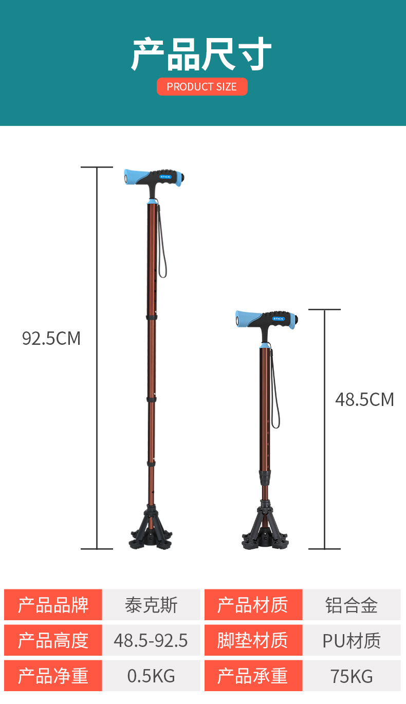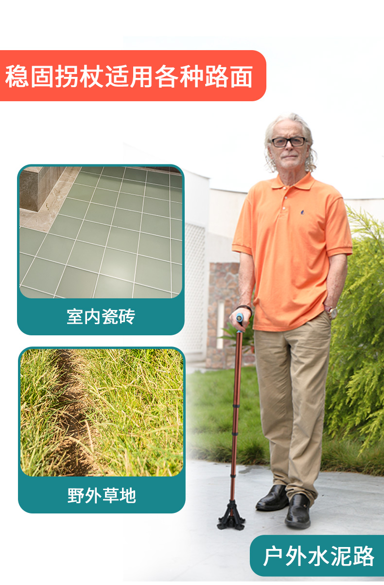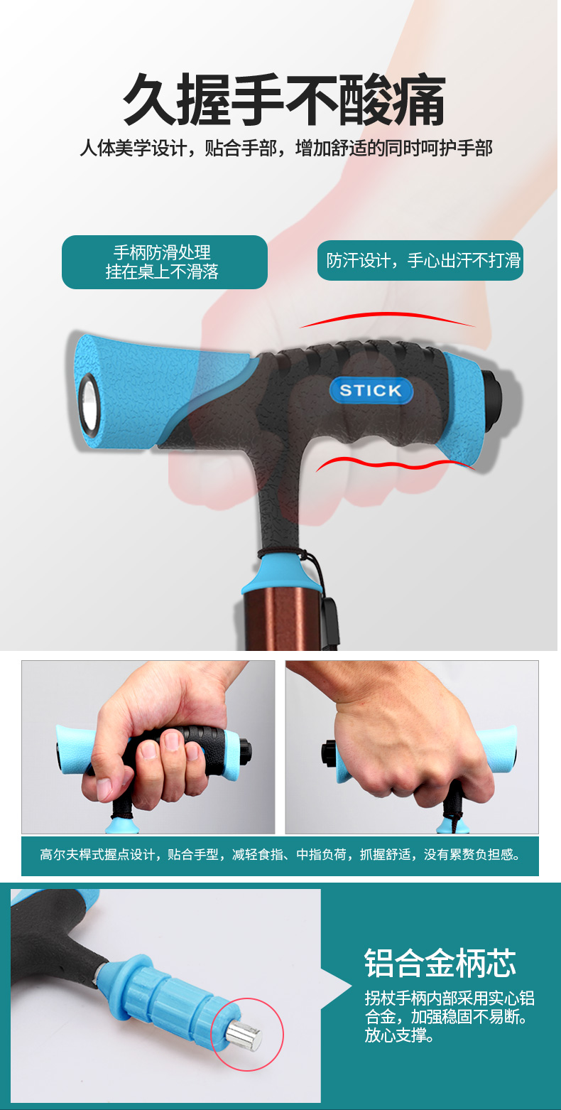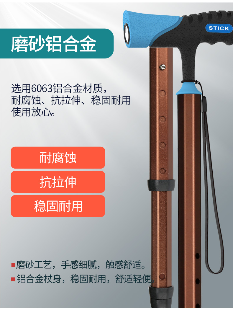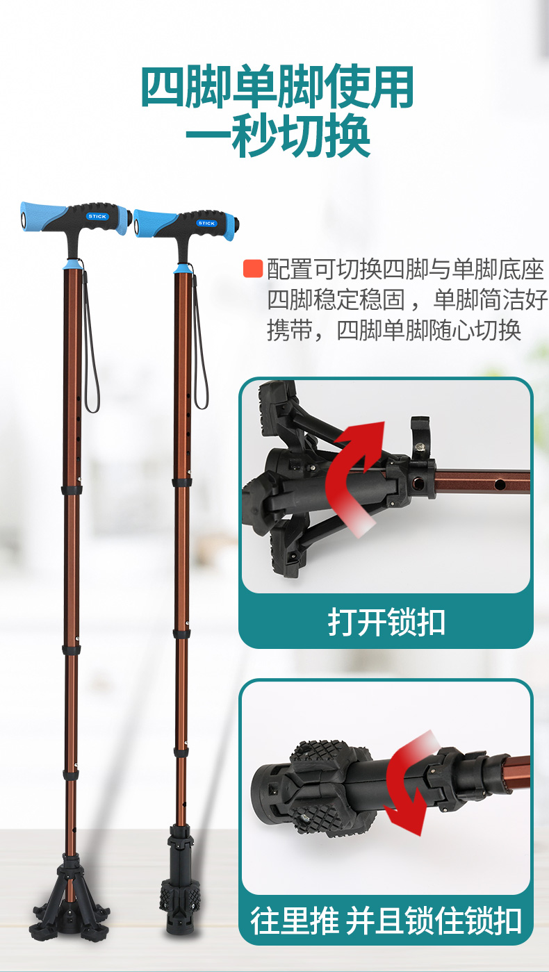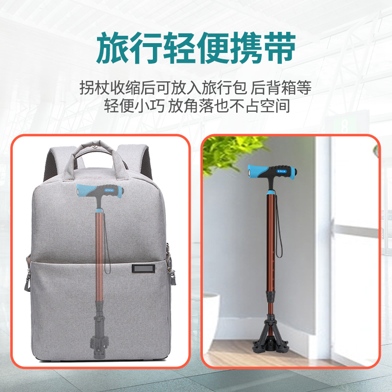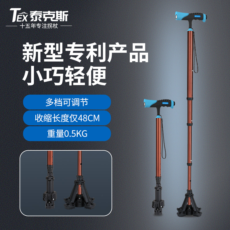 泰克斯柺杖老人防滑輕便伸縮手杖老年人多功能四腳拐扙柺棍助步器