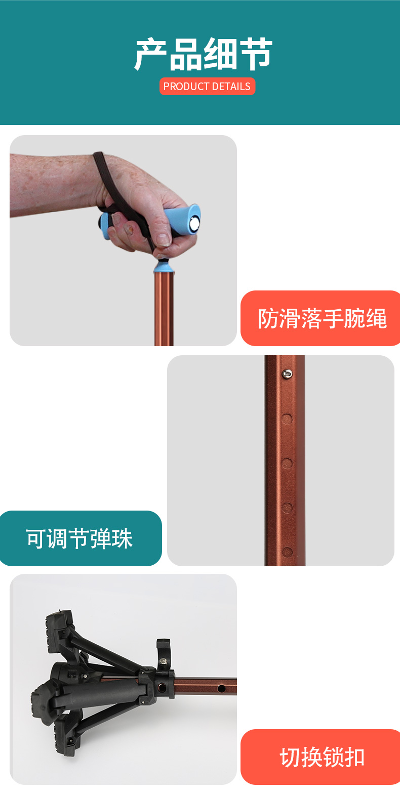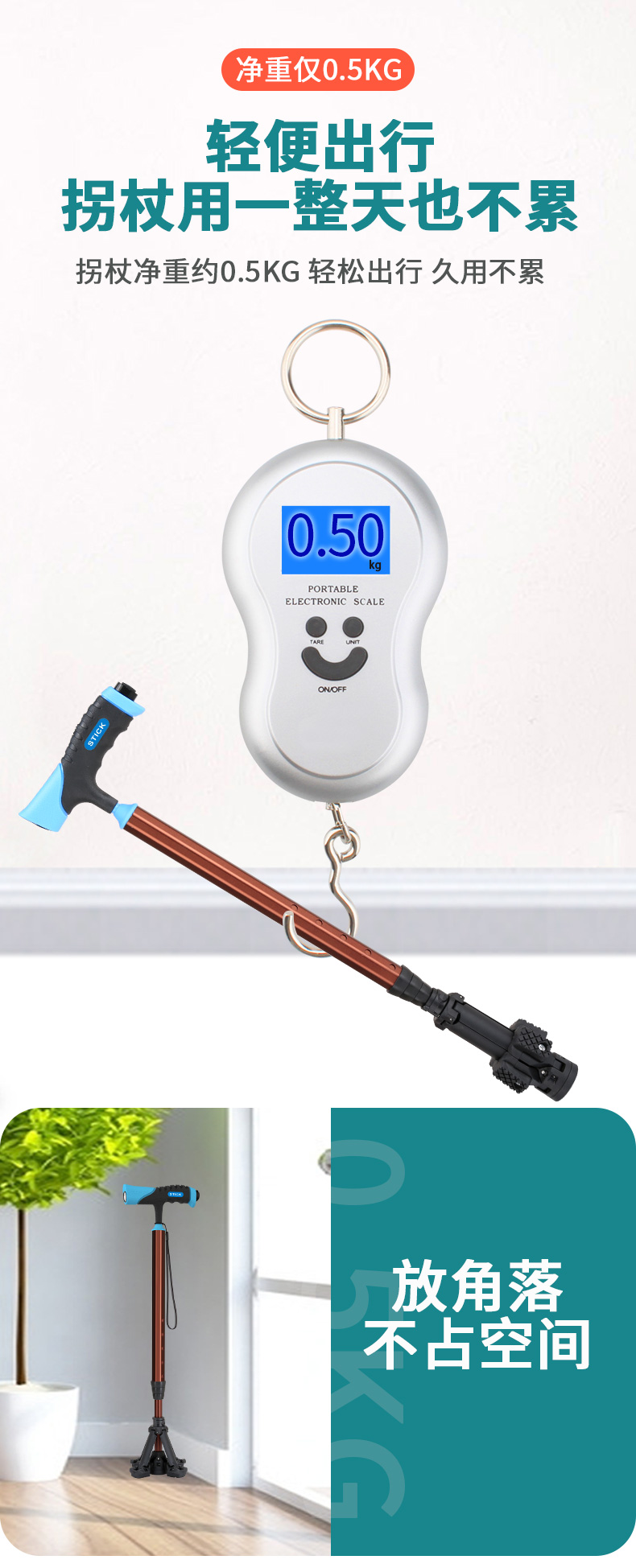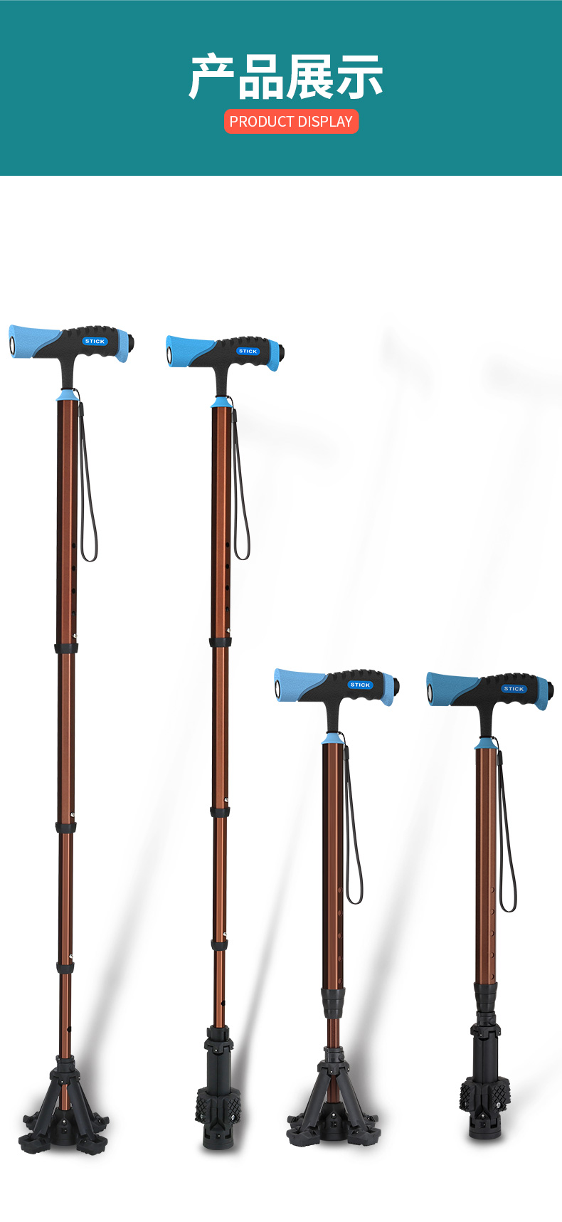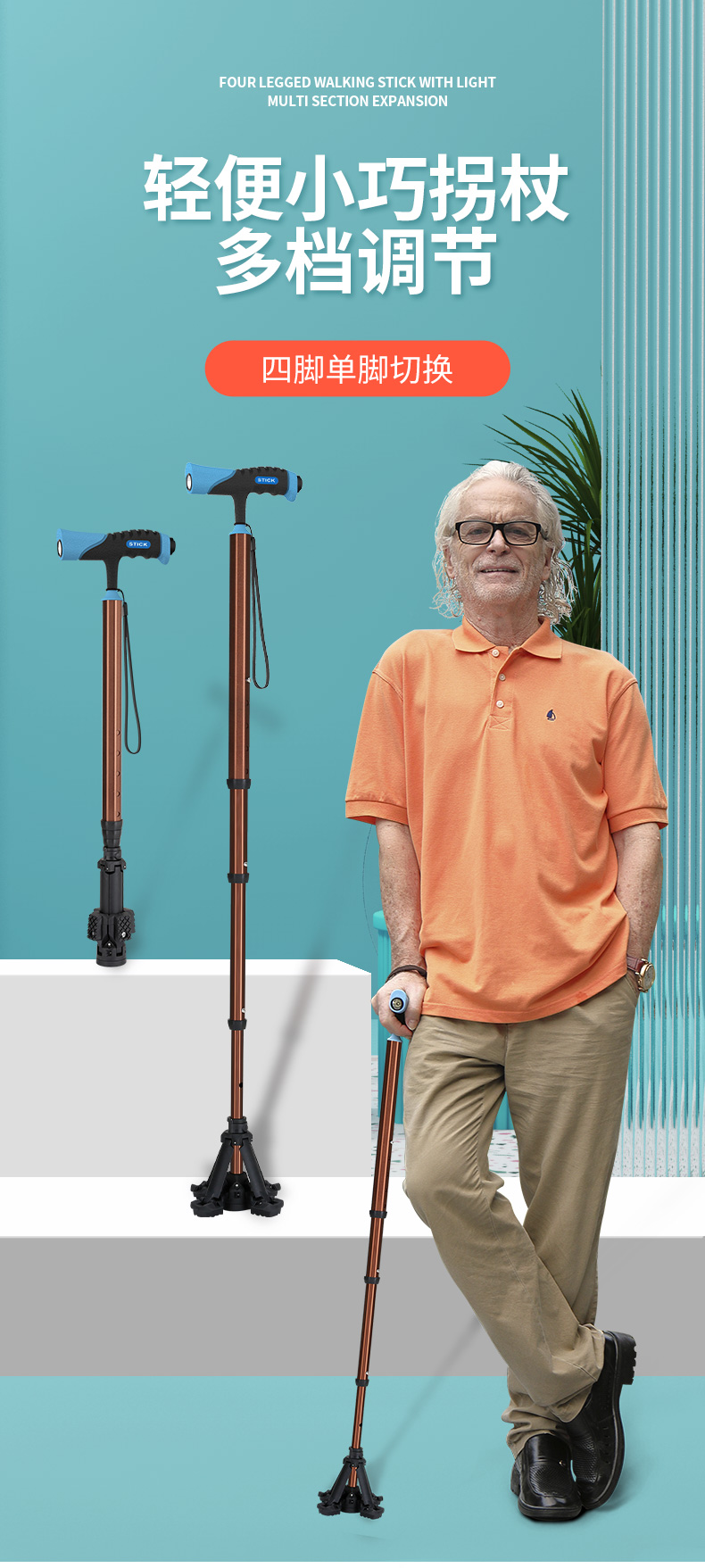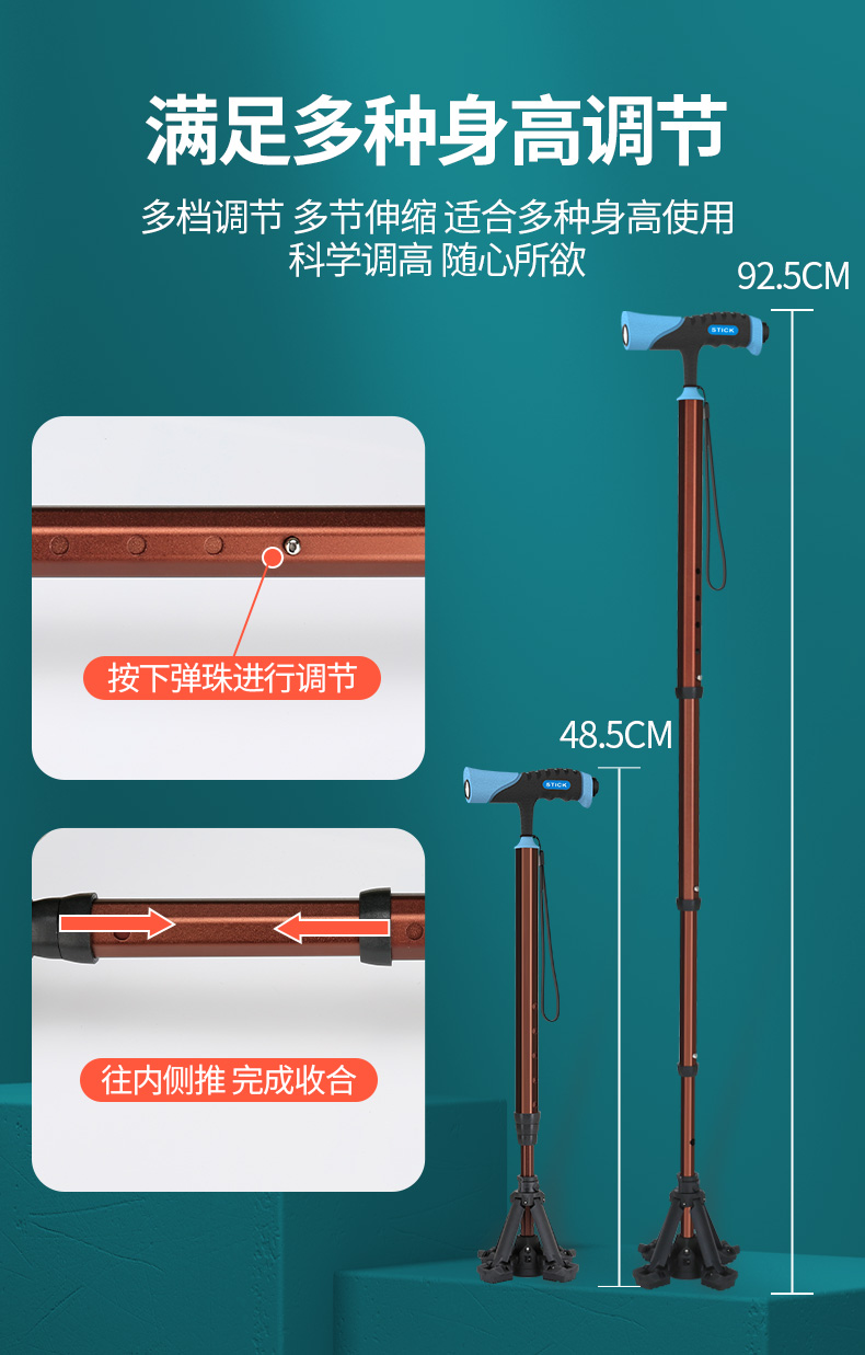 泰克斯柺杖老人防滑輕便伸縮手杖老年人多功能四腳拐扙柺棍助步器