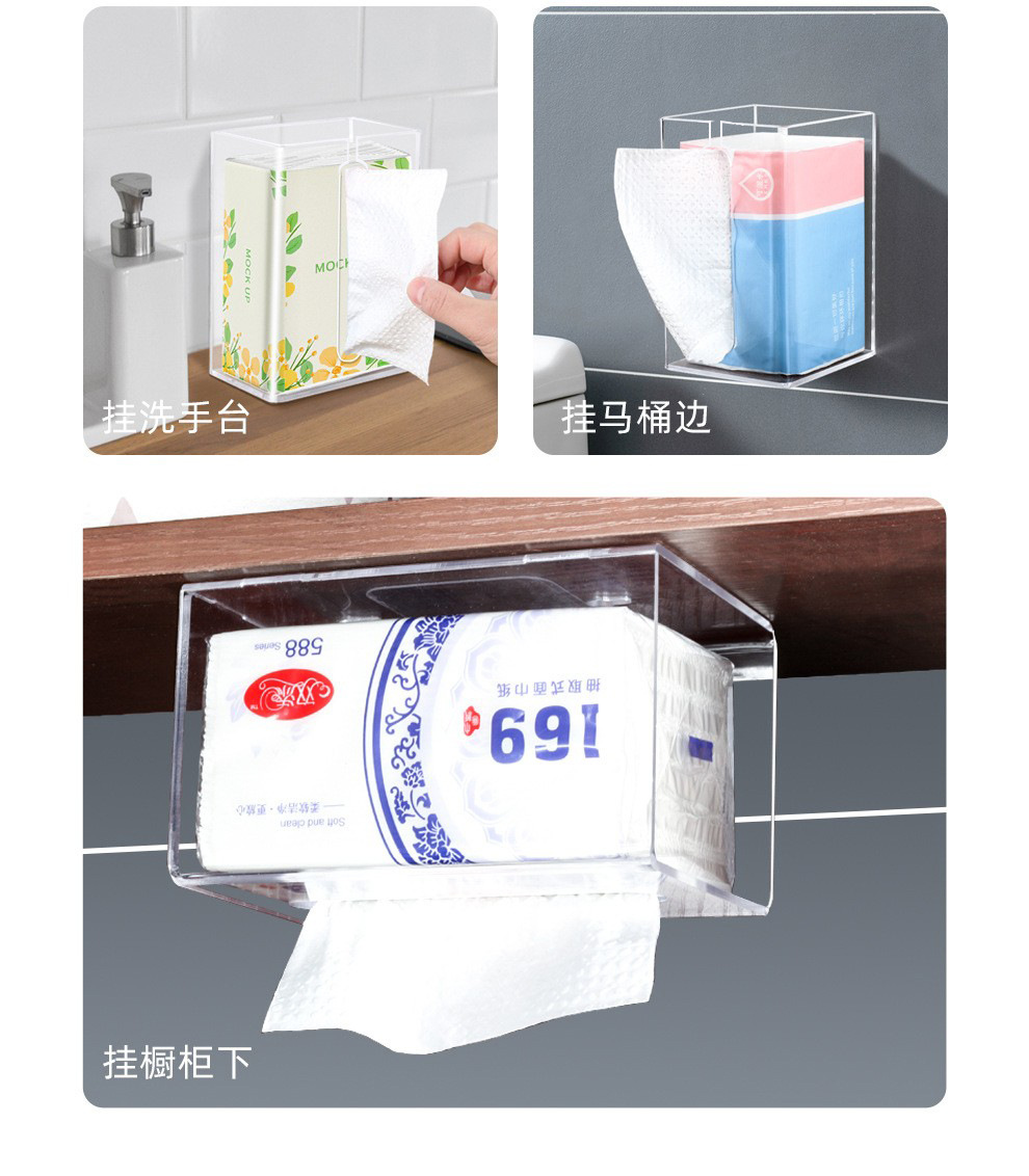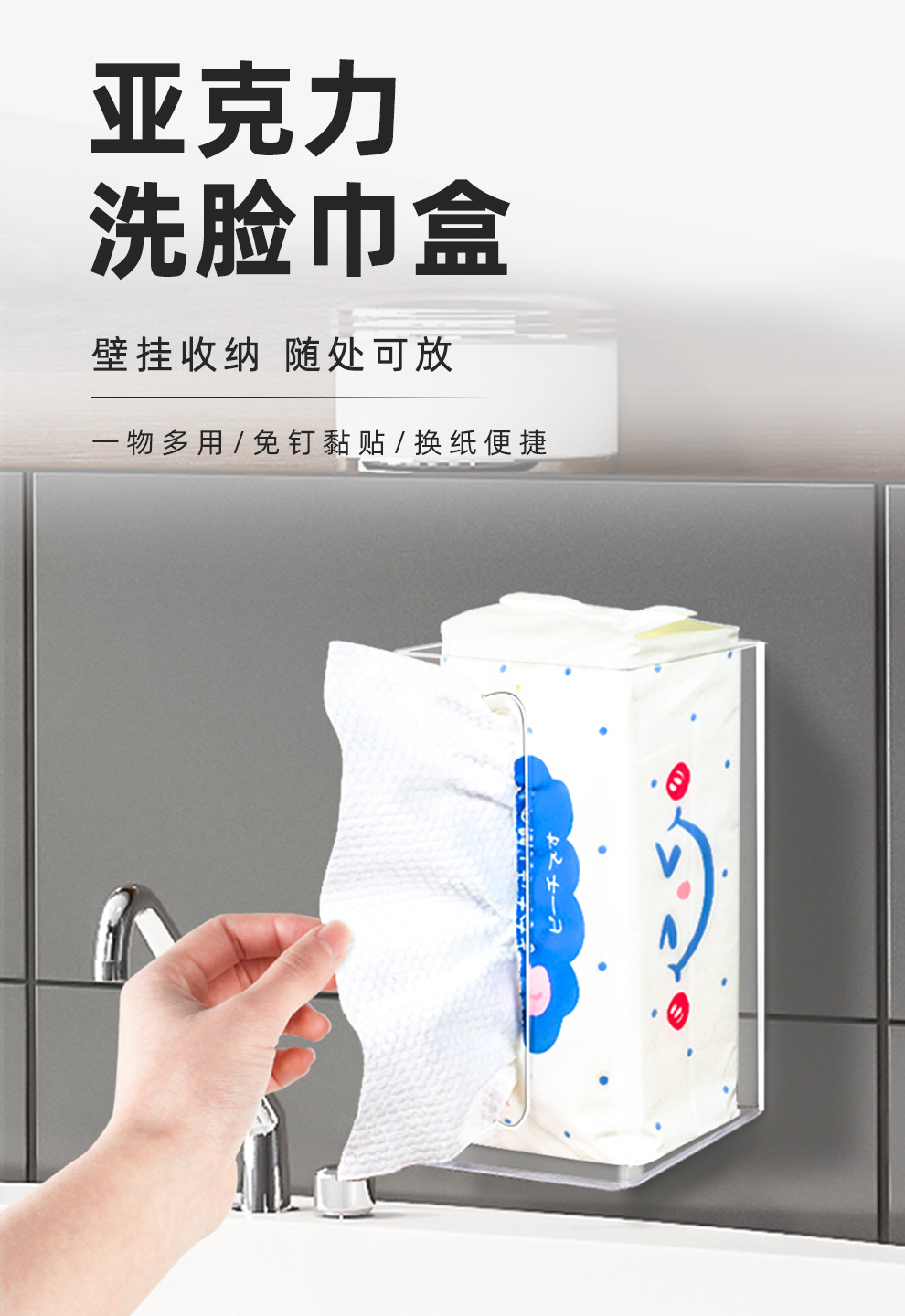 亚克力抽纸洗脸巾收纳盒卫生间免打孔置物架浴室透明壁挂纸巾盒