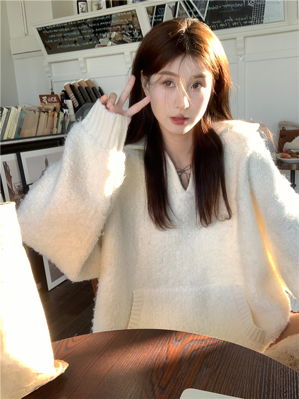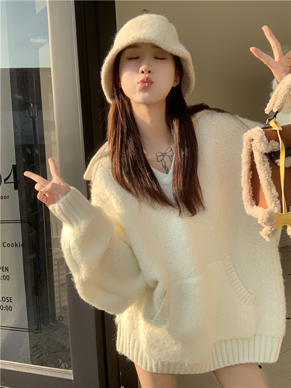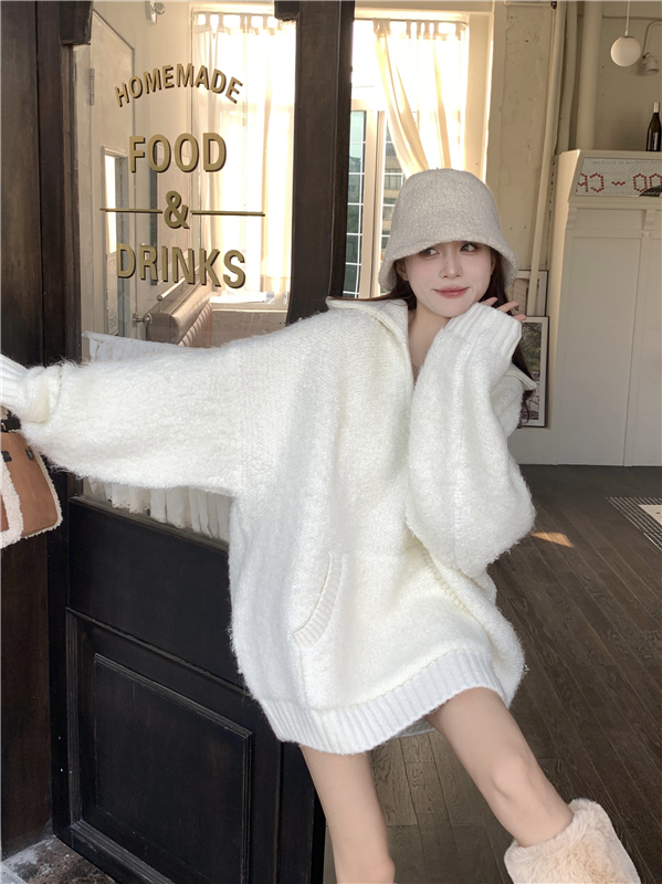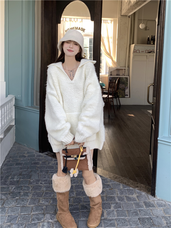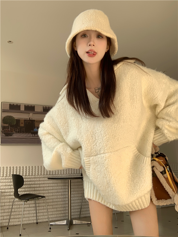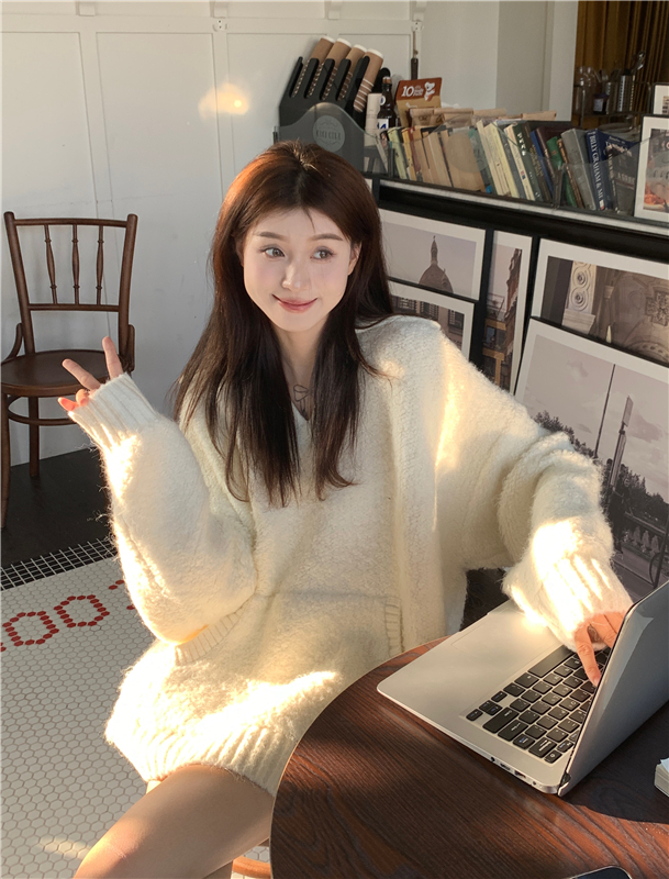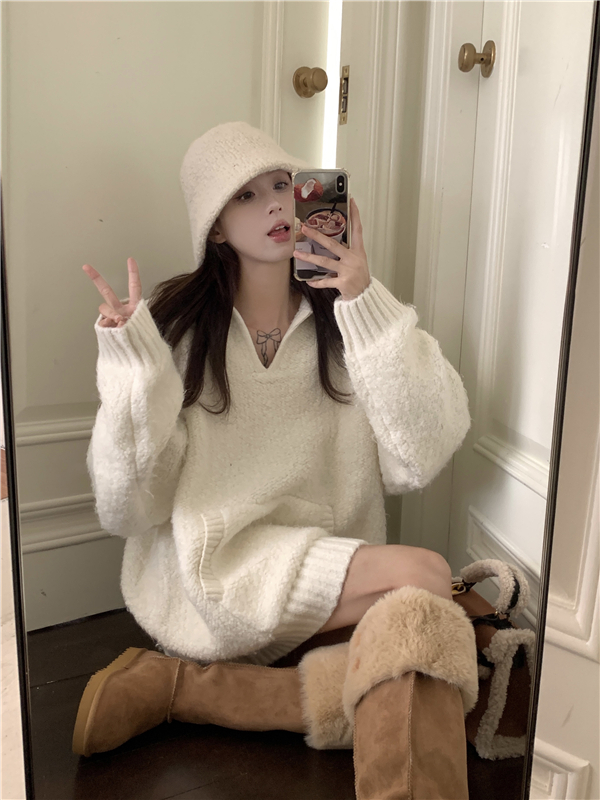 灰色套頭毛衣女秋冬加厚2023新款寬鬆韓系溫柔風軟糯中長版針織衫