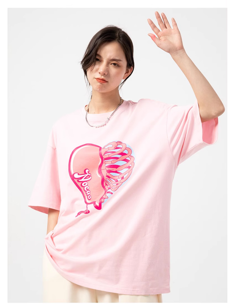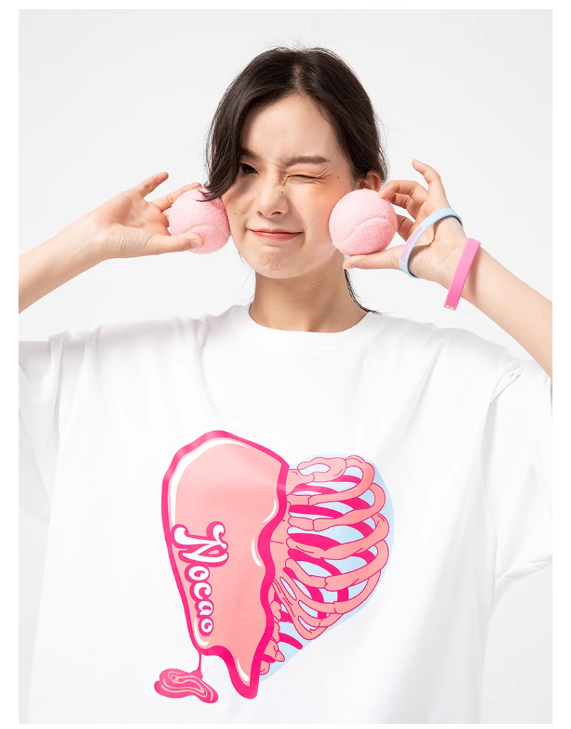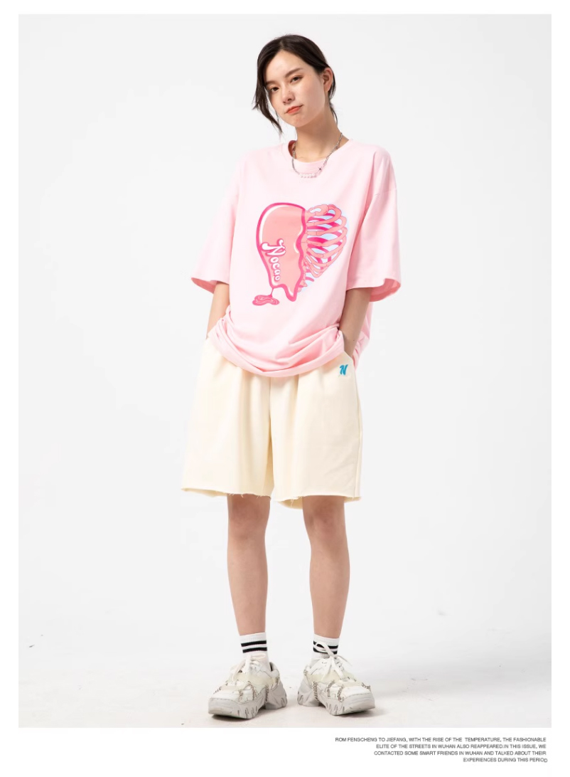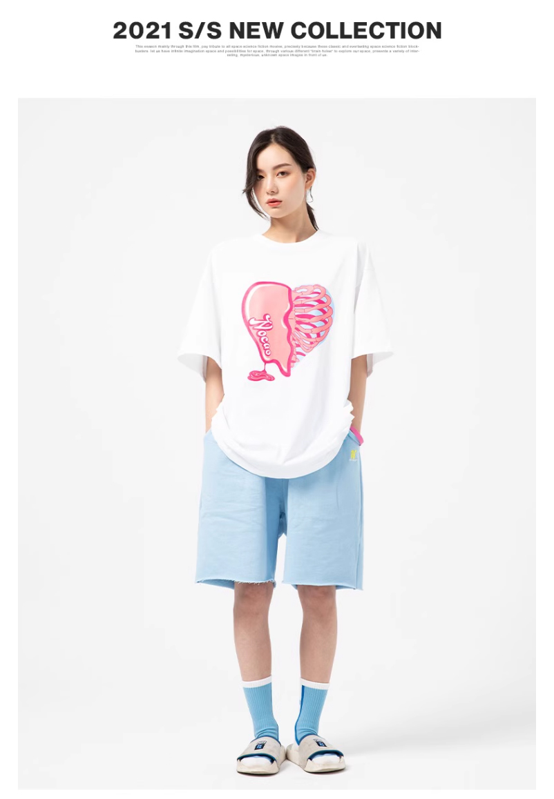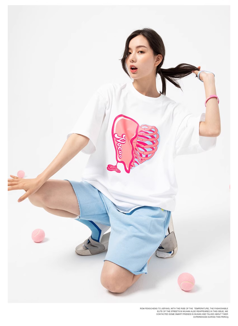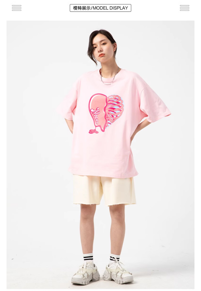 清倉價 趣味愛心手繪印花短袖T恤裝寬鬆T恤